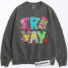 Friyay Teacher Sweatshirt, Happy Colorful Friday Crewneck for Women, Smiley Face Graphic Pullover, Fun School Spirit Comfort Colors Sweatshirt