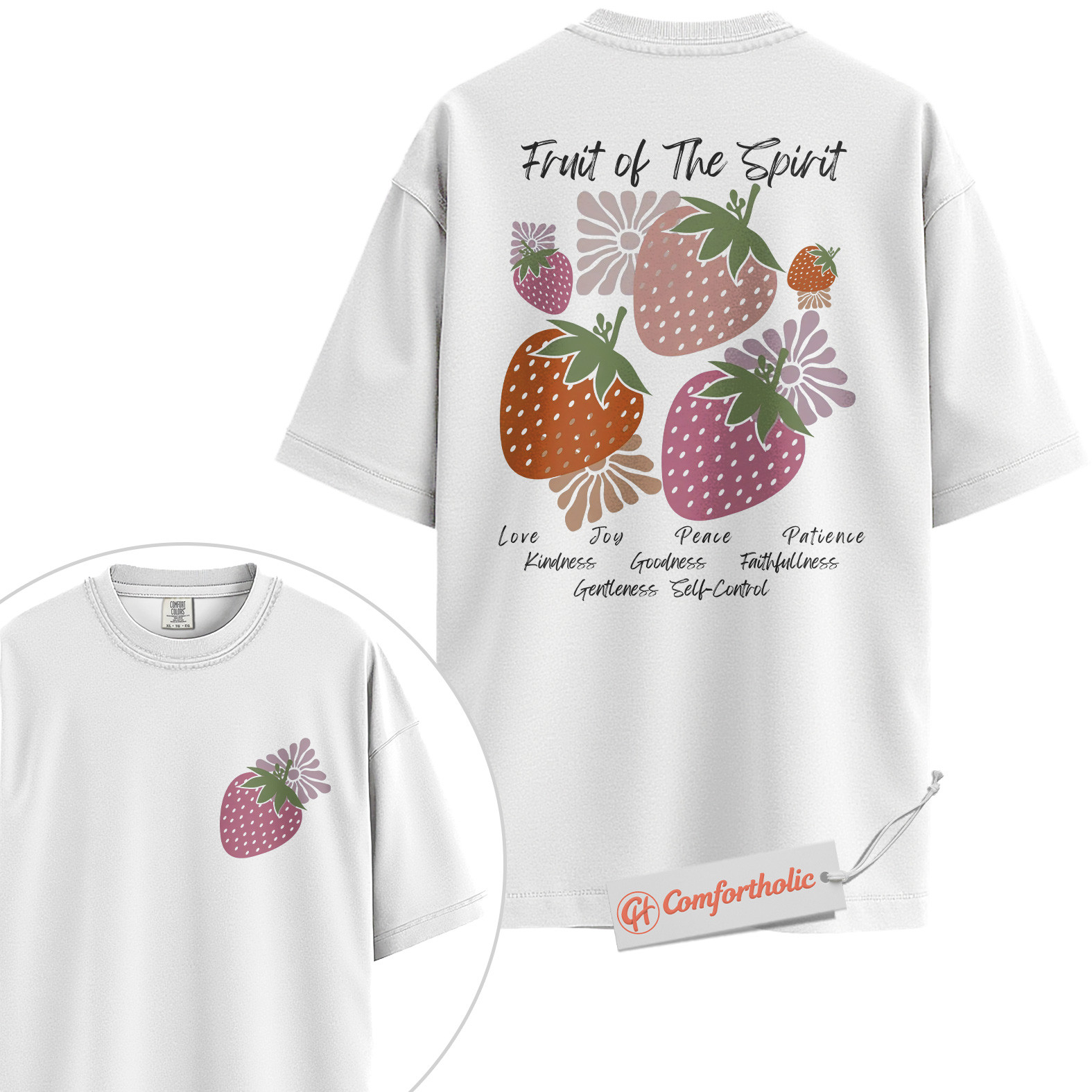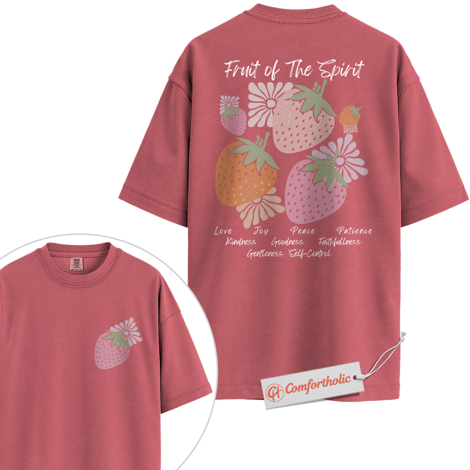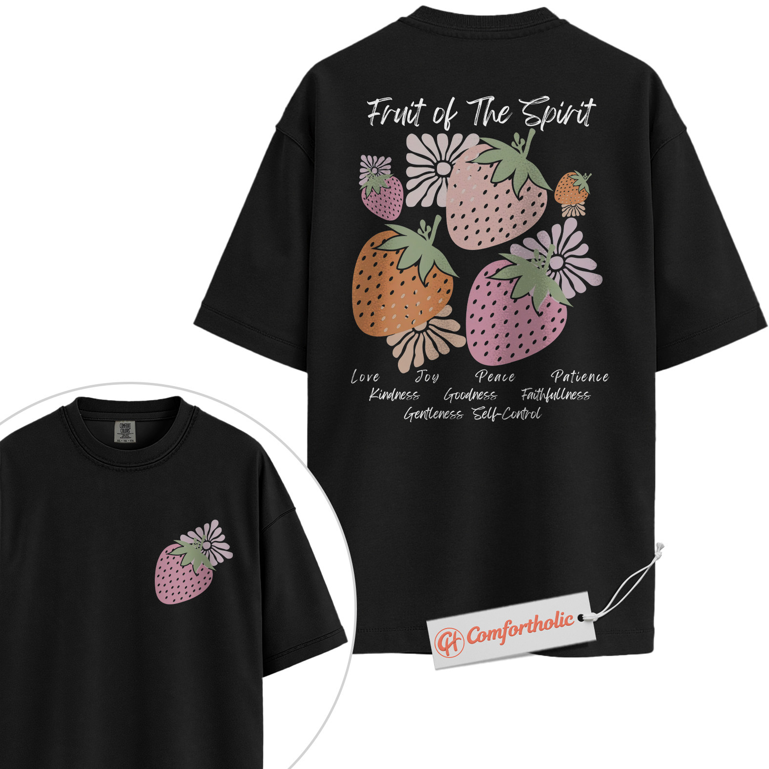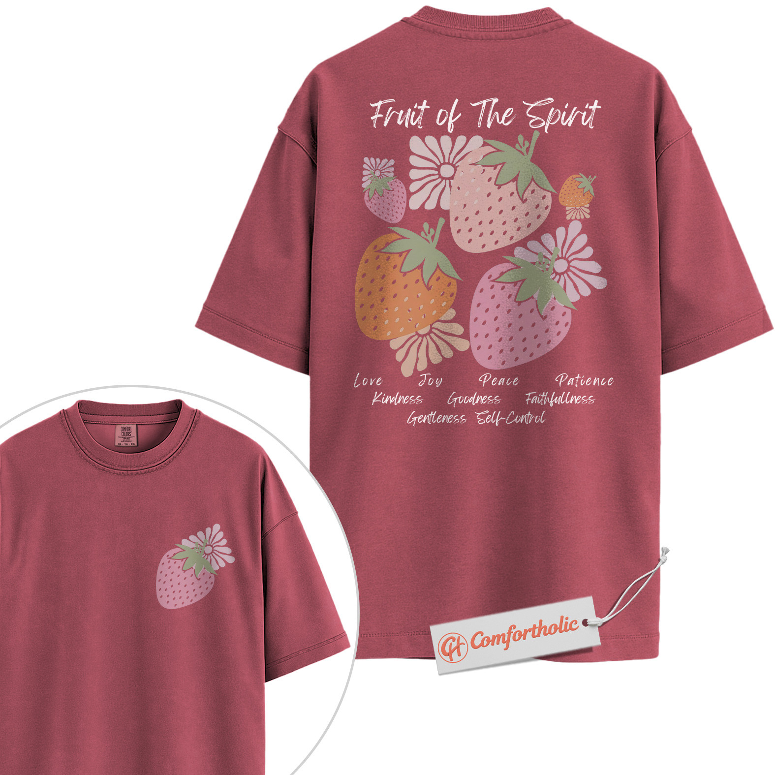 Fruit of the Spirit Shirt, Strawberry Christian Tee, Galatians 5:22-25 Bible Verse Graphic T-Shirt, Floral Faith Comfort Colors Shirt 2-Sided