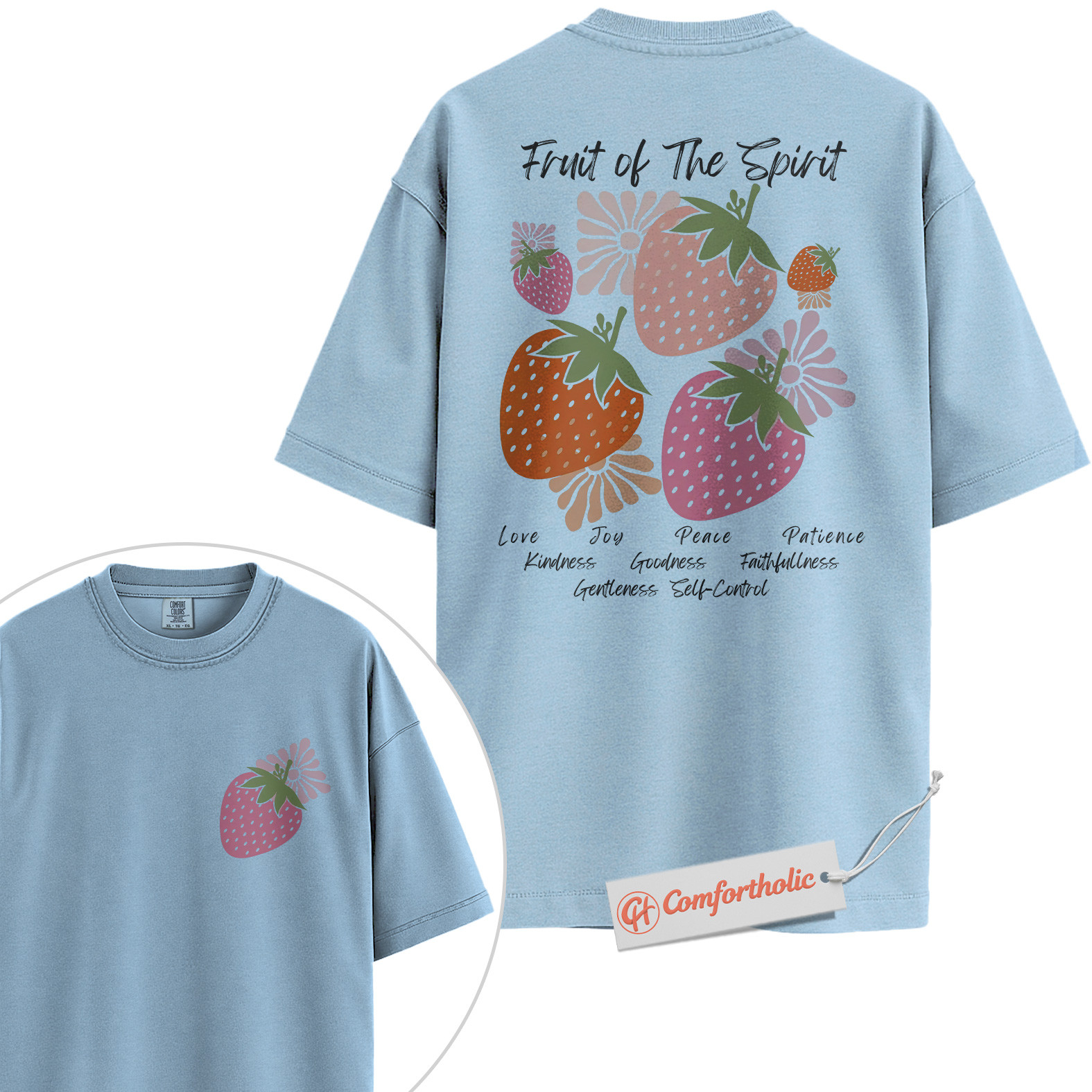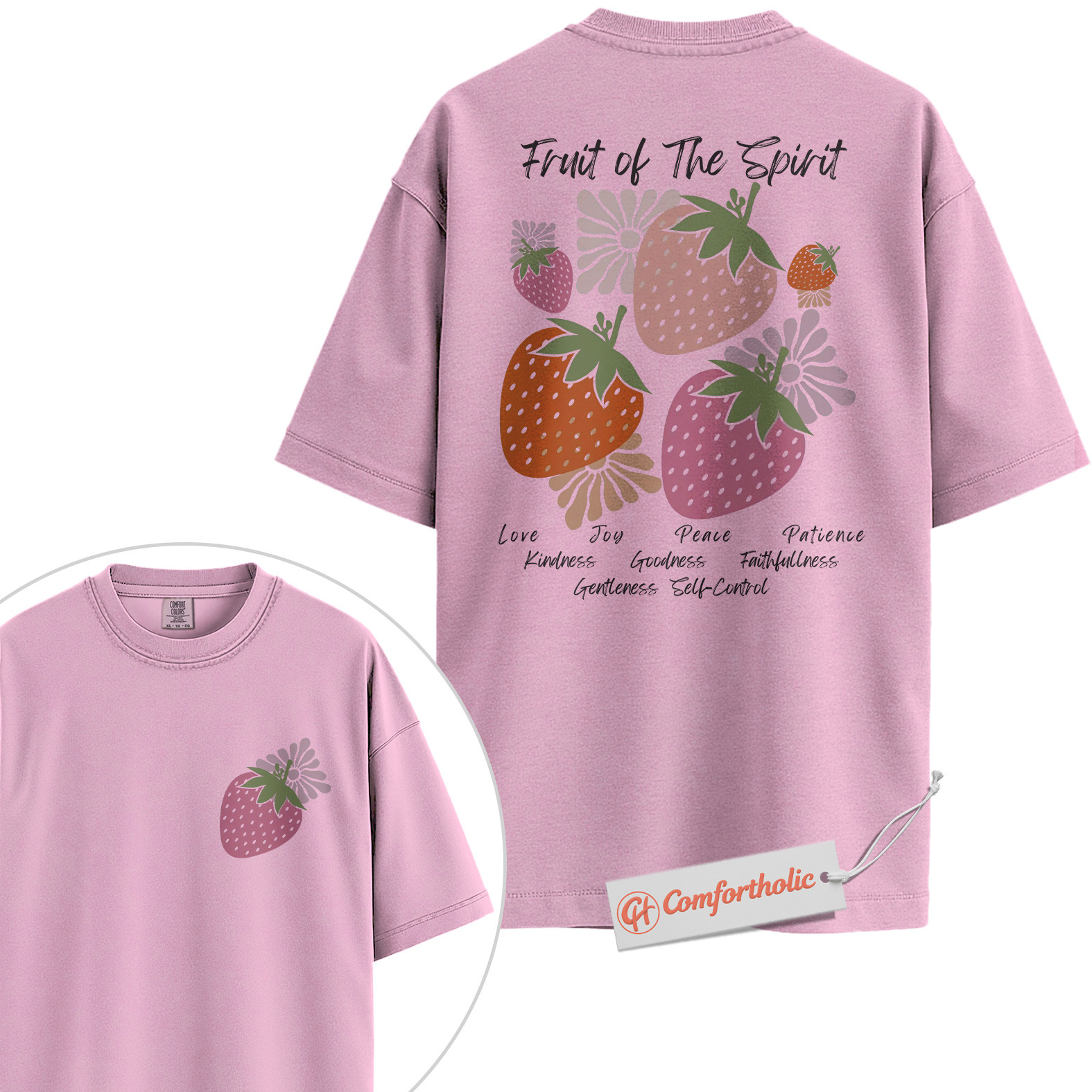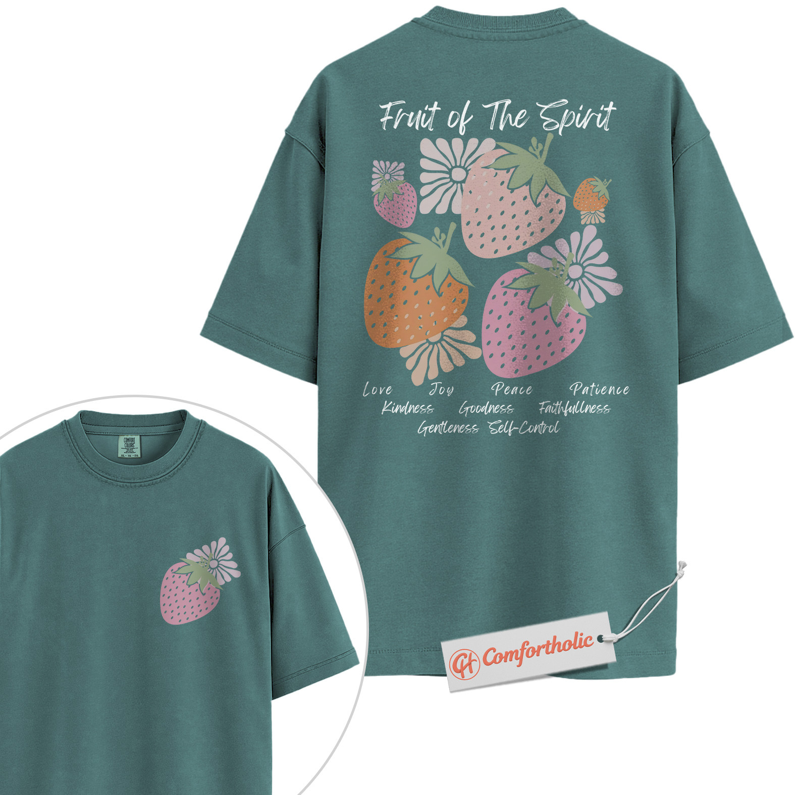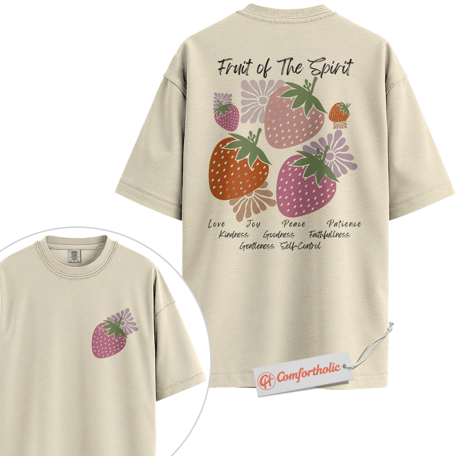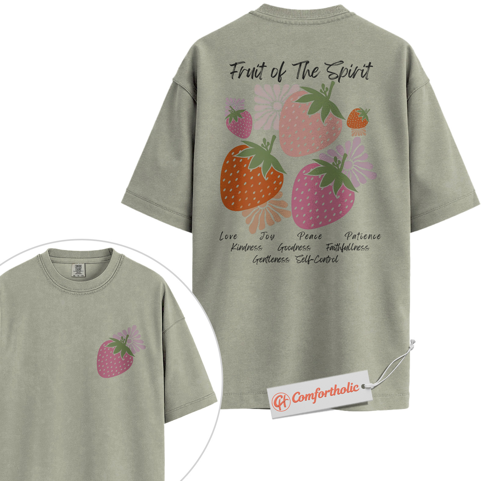 Fruit of the Spirit Shirt, Strawberry Christian Tee, Galatians 5:22-25 Bible Verse Graphic T-Shirt, Floral Faith Comfort Colors Shirt 2-Sided