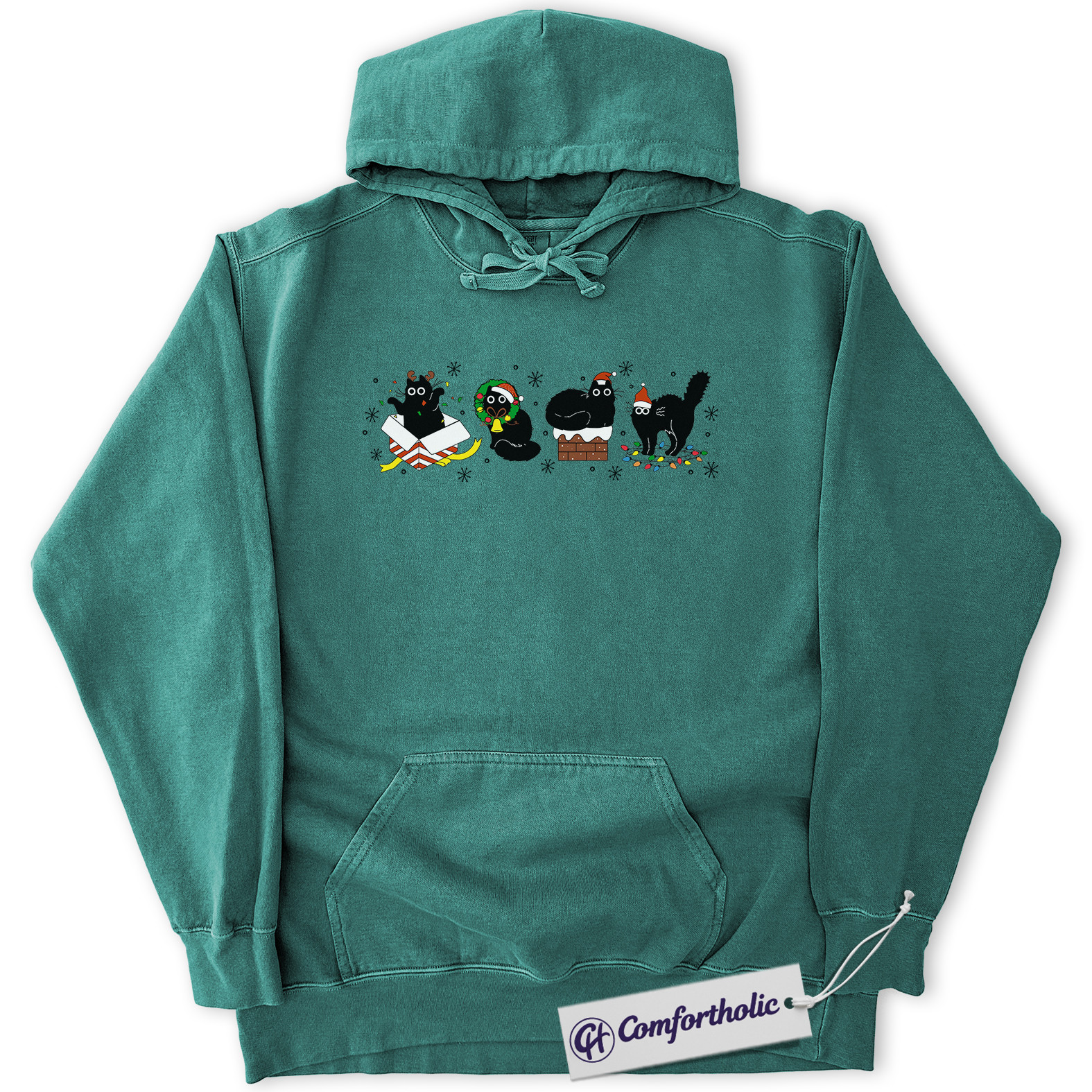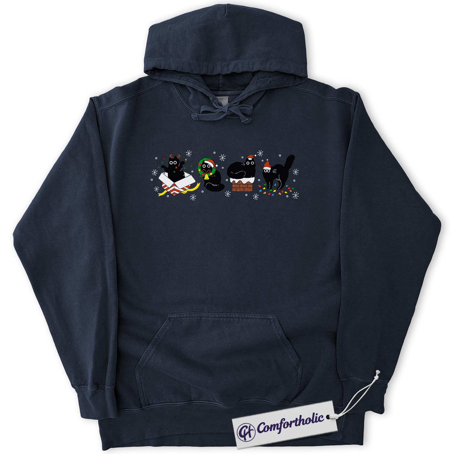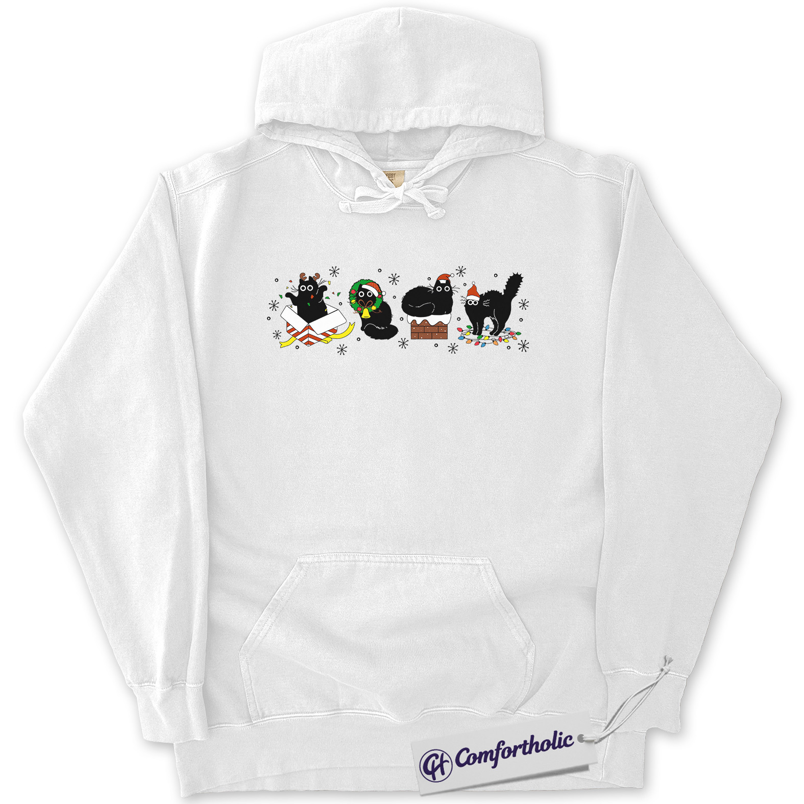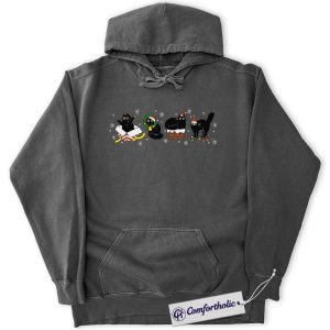 Funny Black Cat Christmas Hoodie, Cute Holiday Cat Hoodie, Festive Kitty Graphic Pullover, Cat Lover Christmas Gift, Christmas Comfort Colors Hoodie