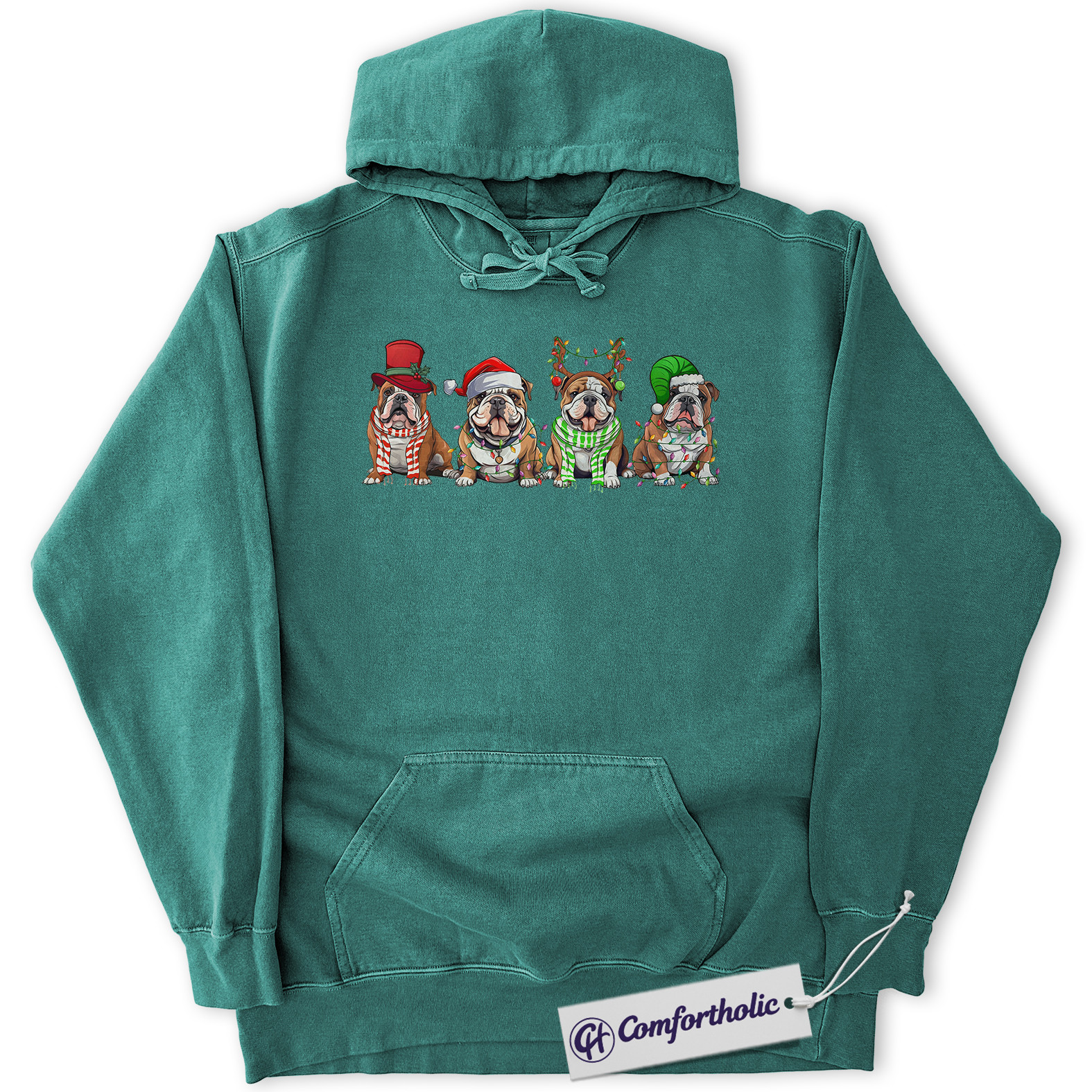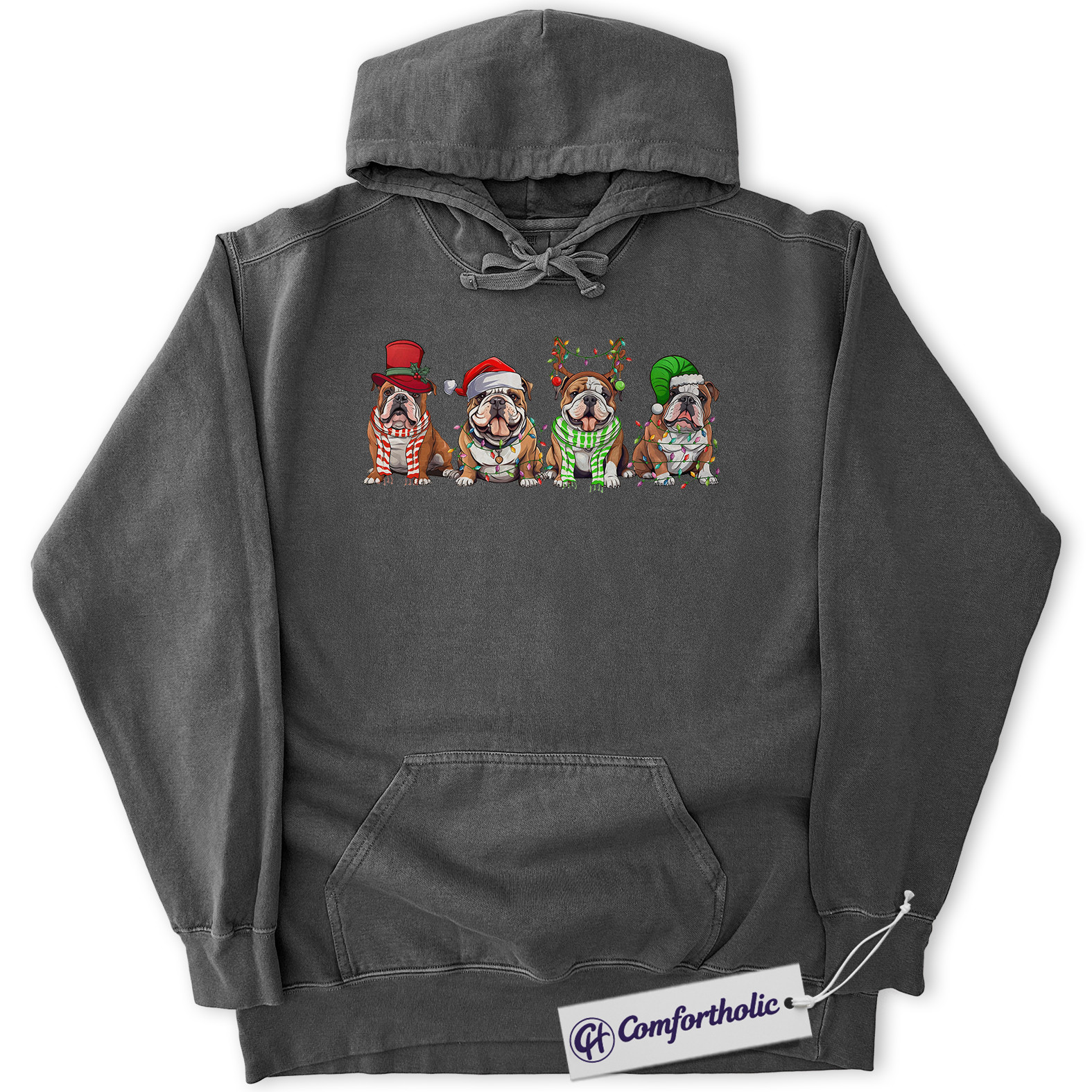 Funny Bulldog Christmas Hoodie, Dog Lover Holiday Hoodie, Cute English Bulldog Graphic Pullover, Christmas Gift for Pet Owners, Christmas Comfort Colors Hoodie