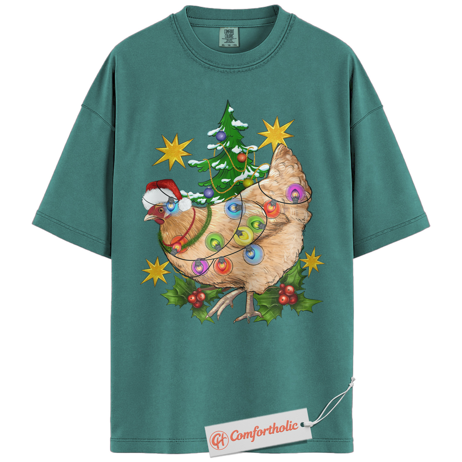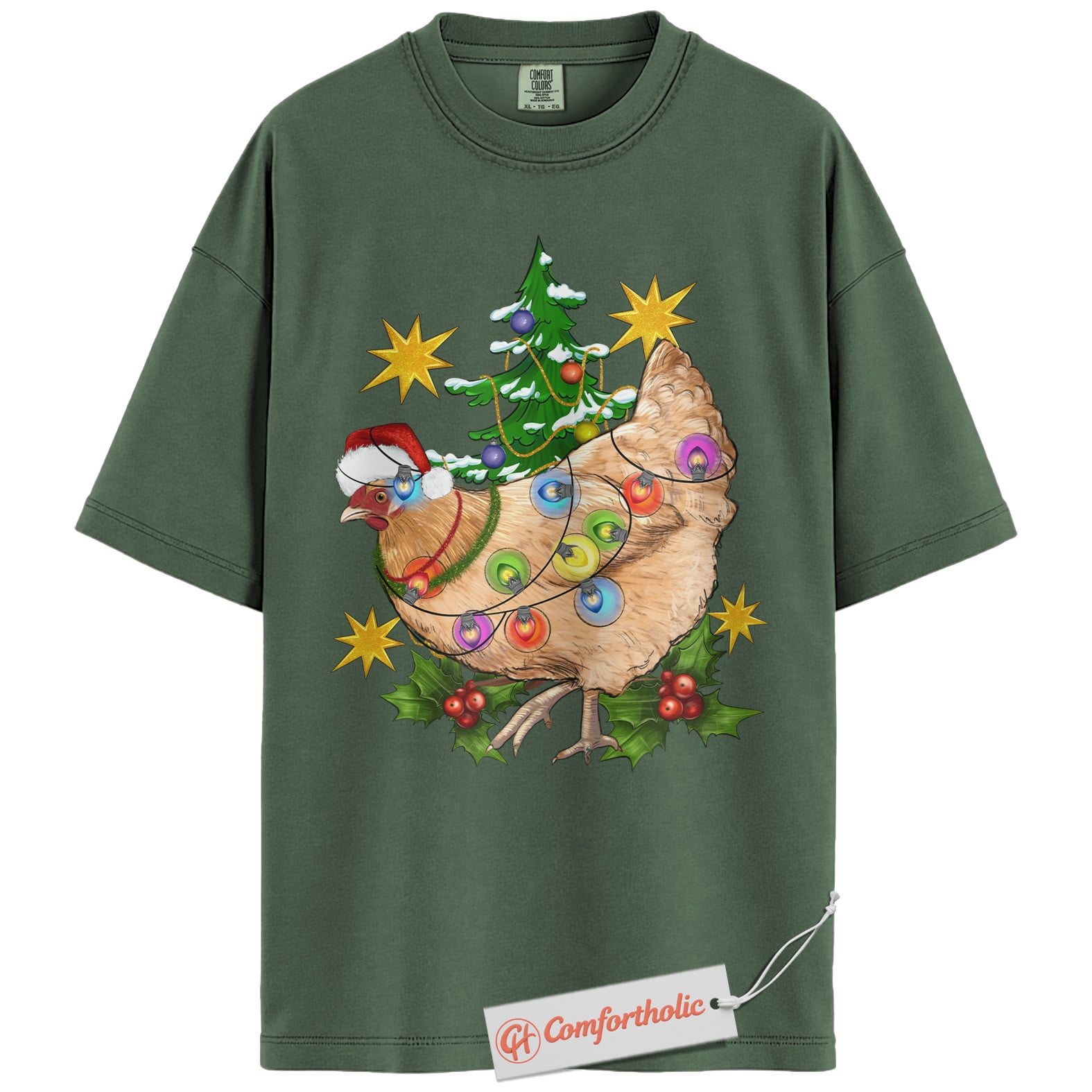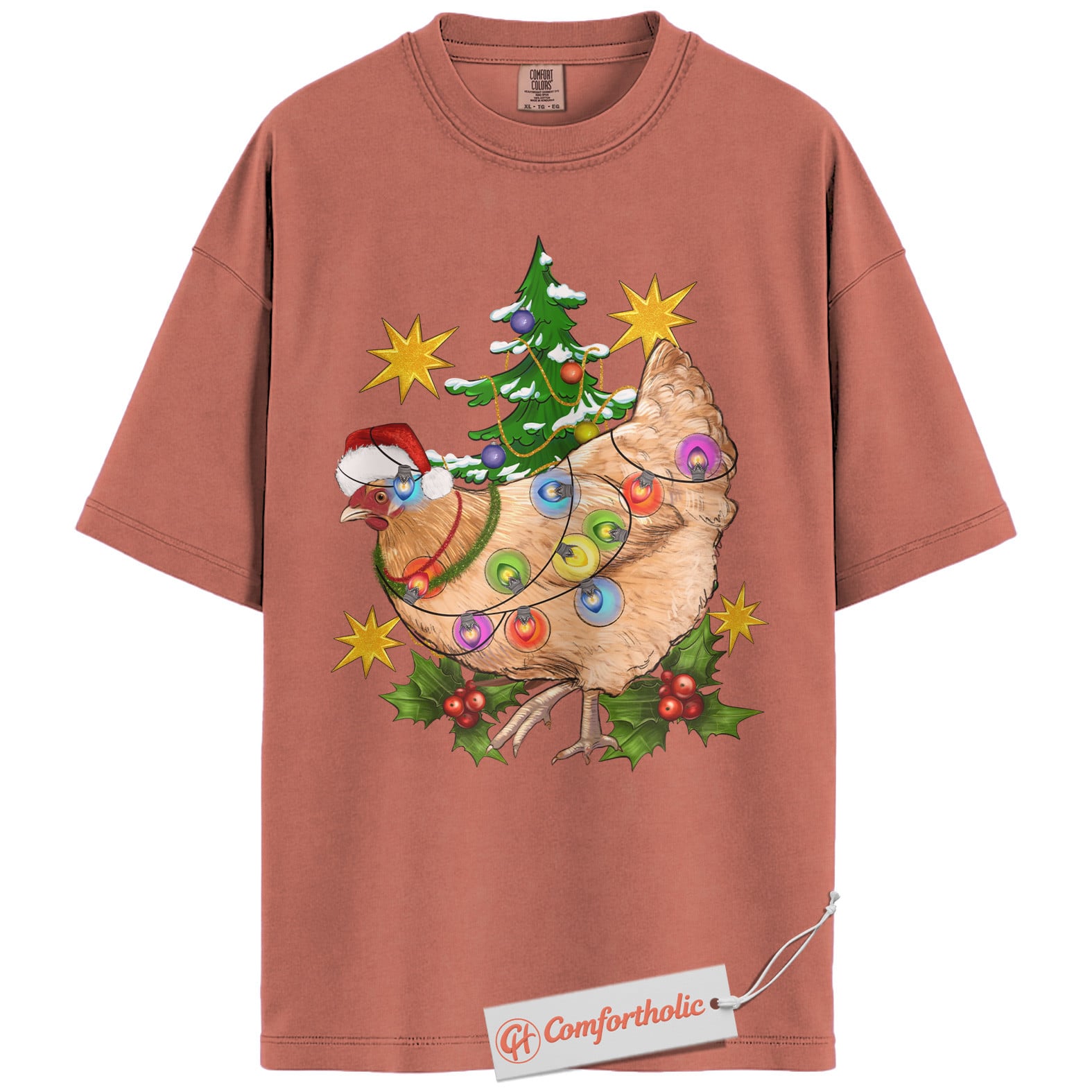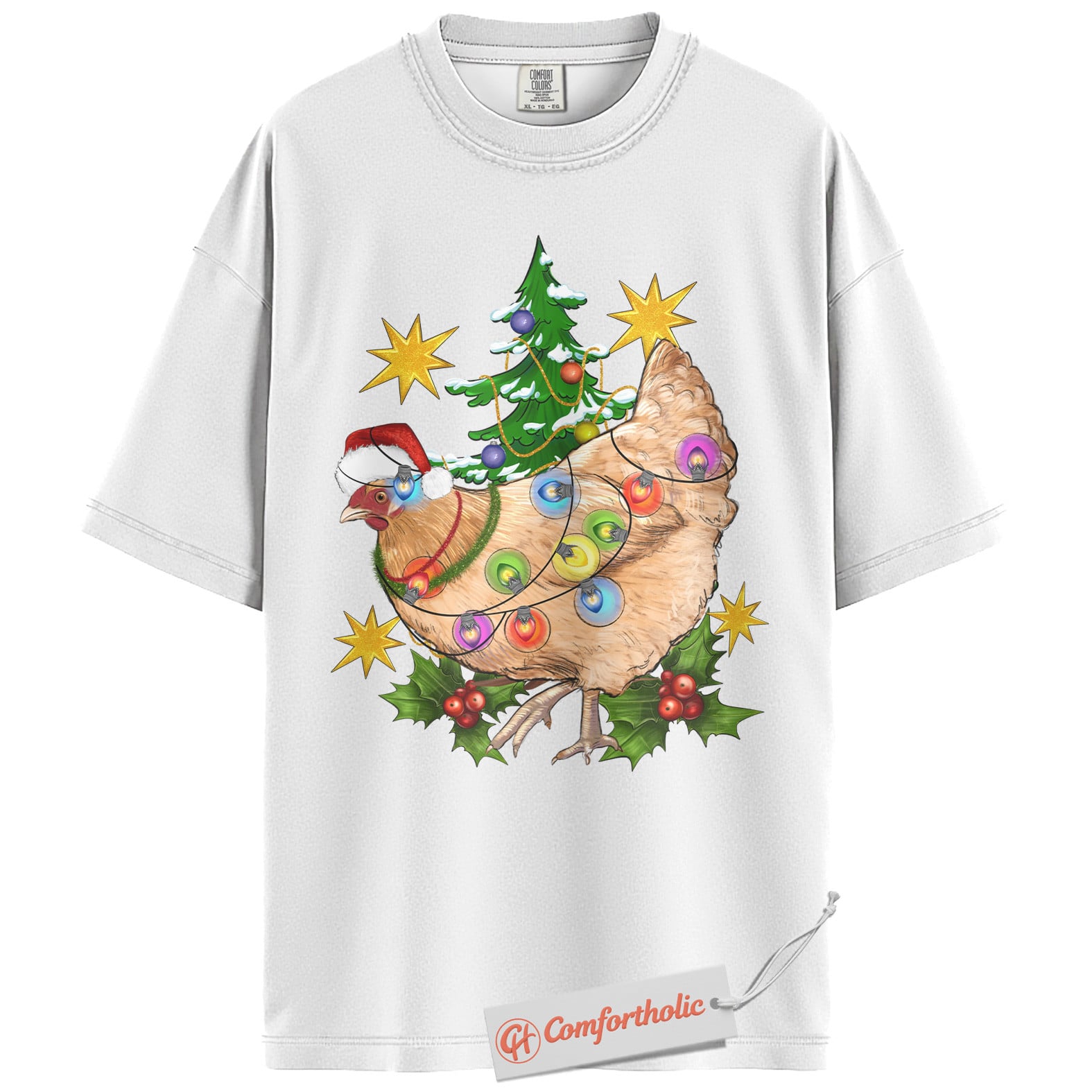 Funny Chicken Christmas Shirt, Farm Animal Holiday T-Shirt, Cute Country Hen Graphic Tee, Christmas Gift for Chicken Lovers, Christmas Comfort Colors Shirt