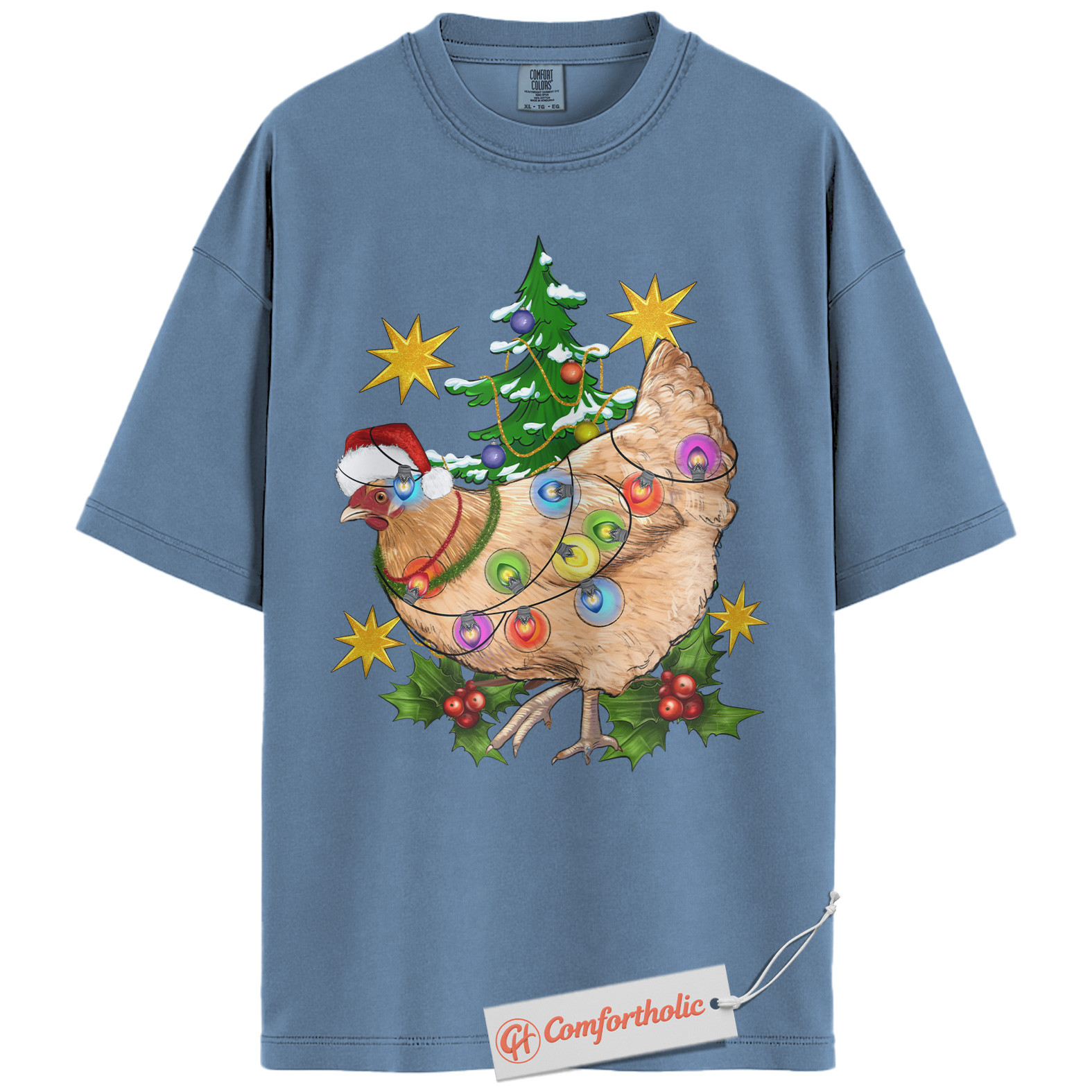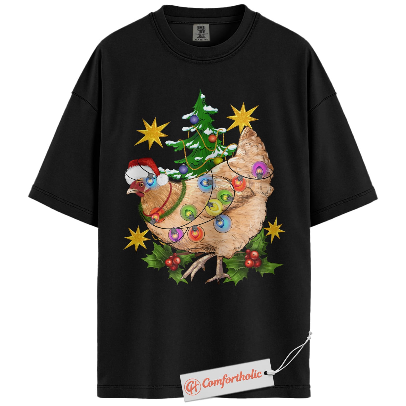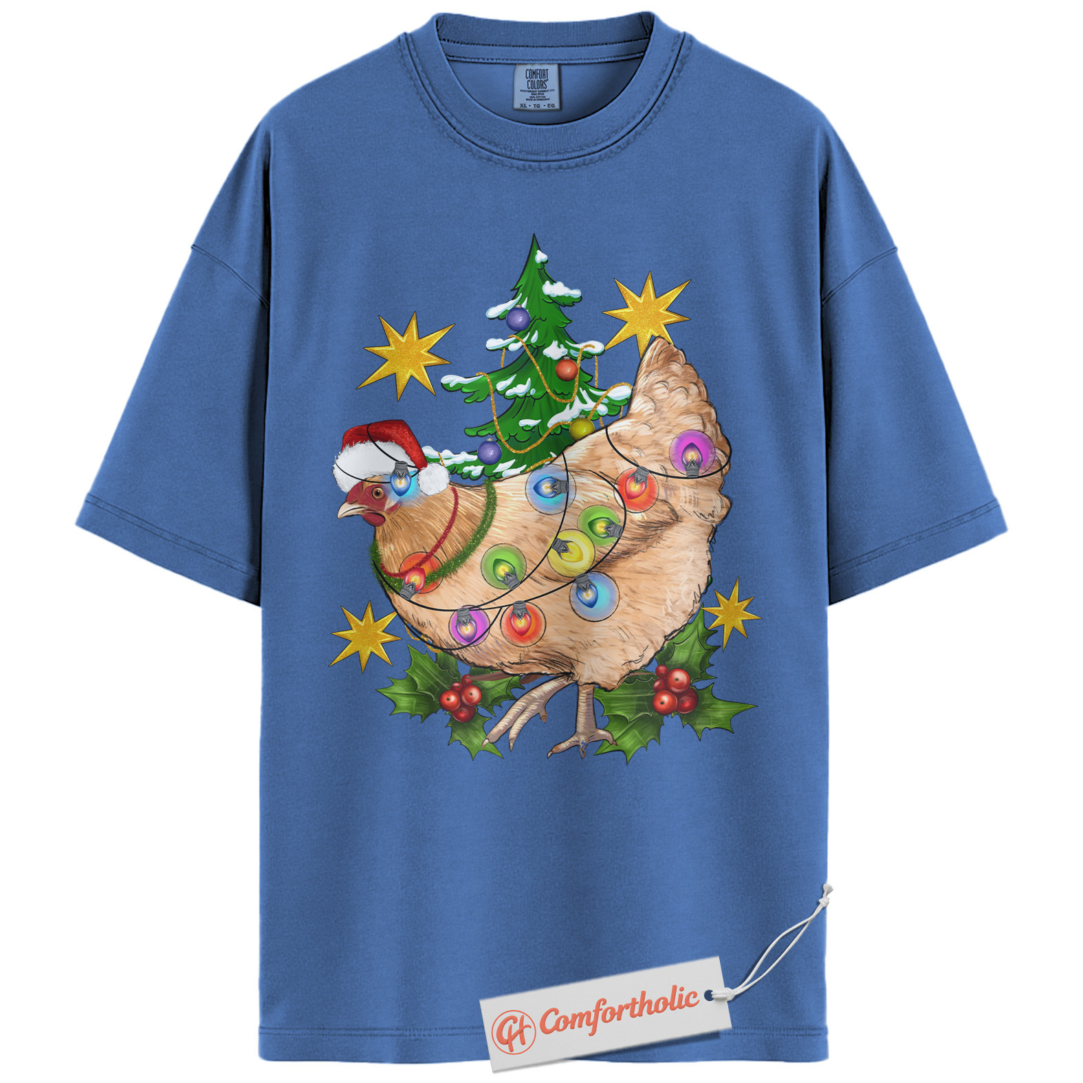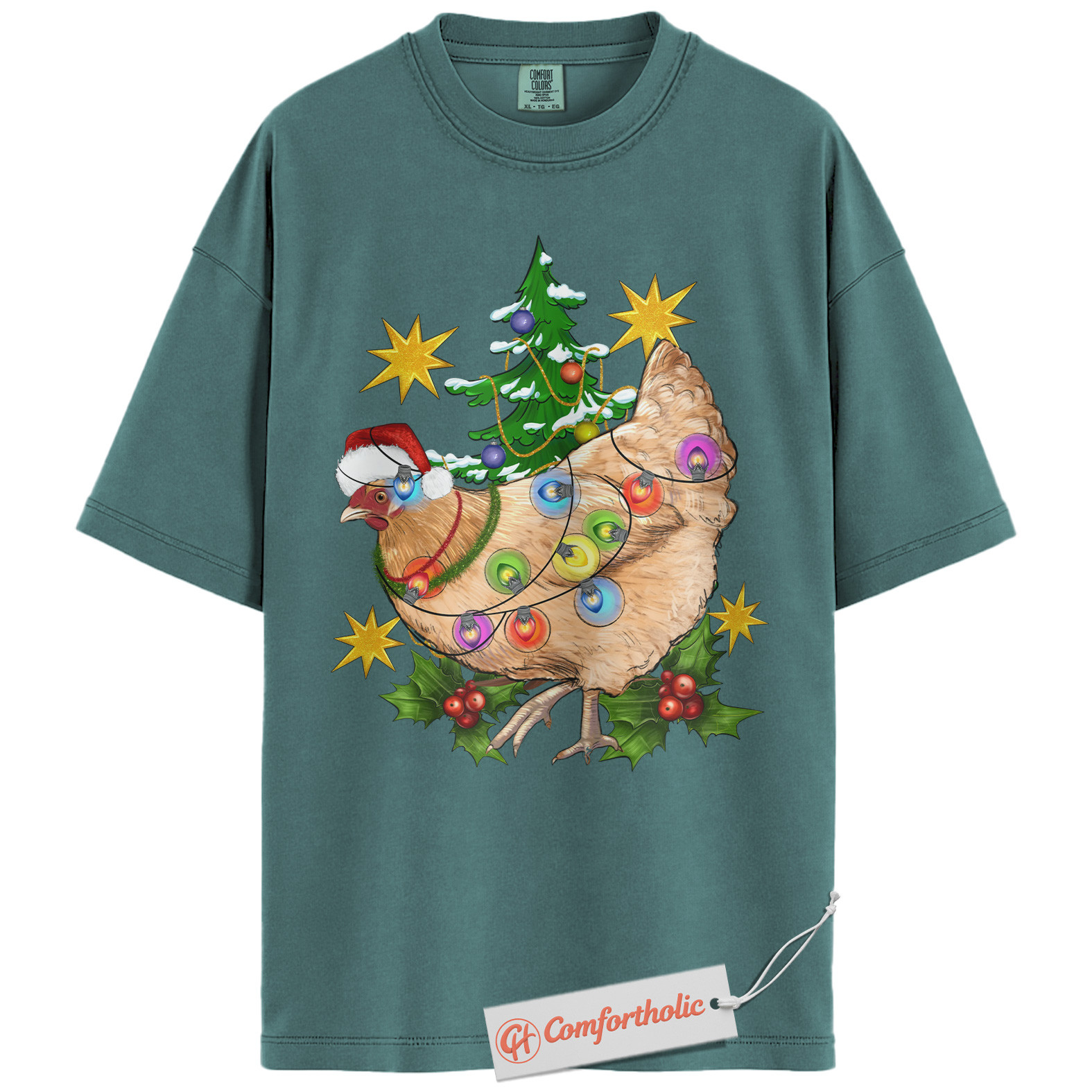 Funny Chicken Christmas Shirt, Farm Animal Holiday T-Shirt, Cute Country Hen Graphic Tee, Christmas Gift for Chicken Lovers, Christmas Comfort Colors Shirt