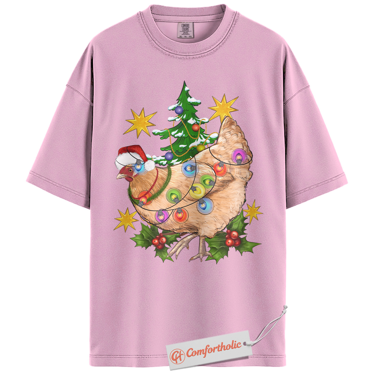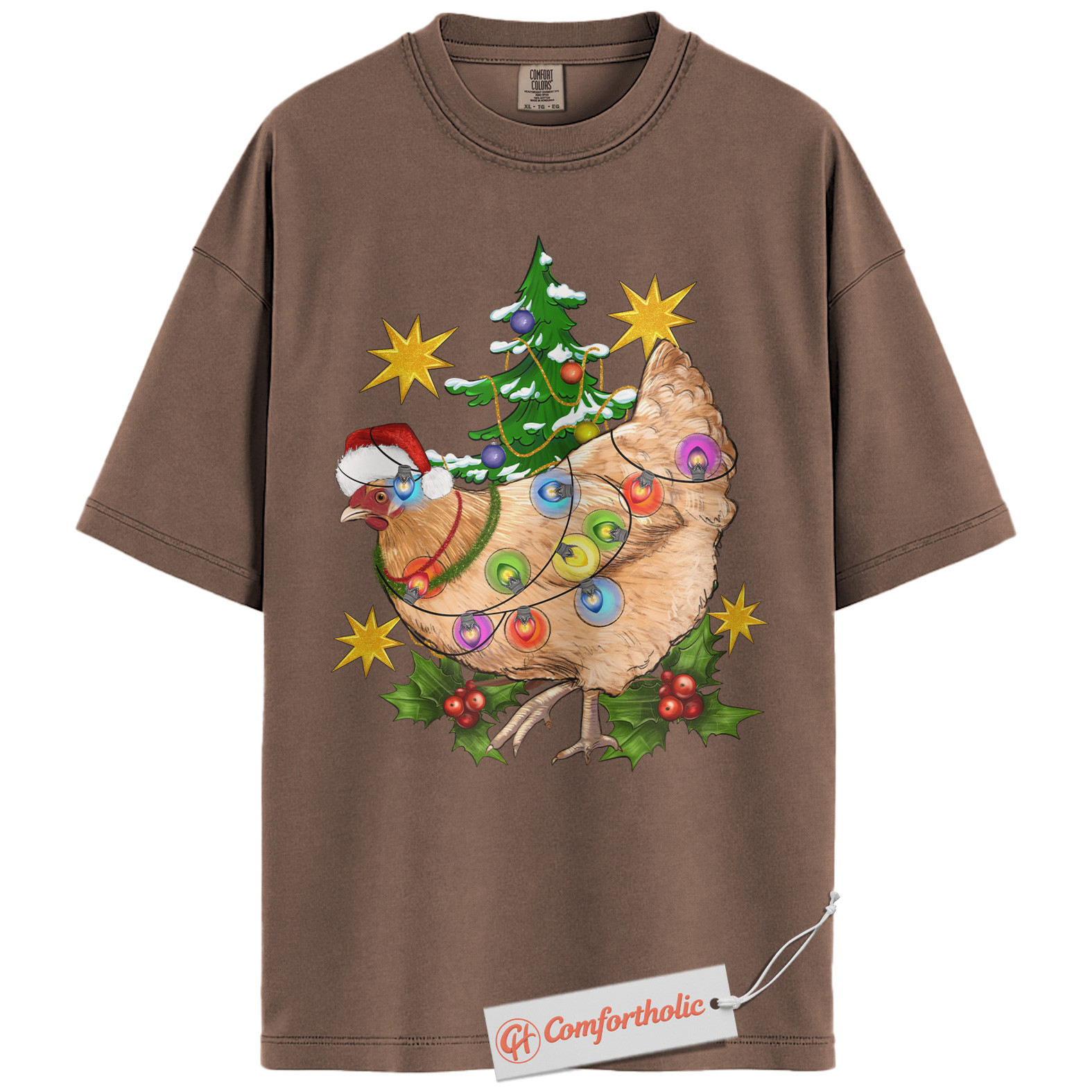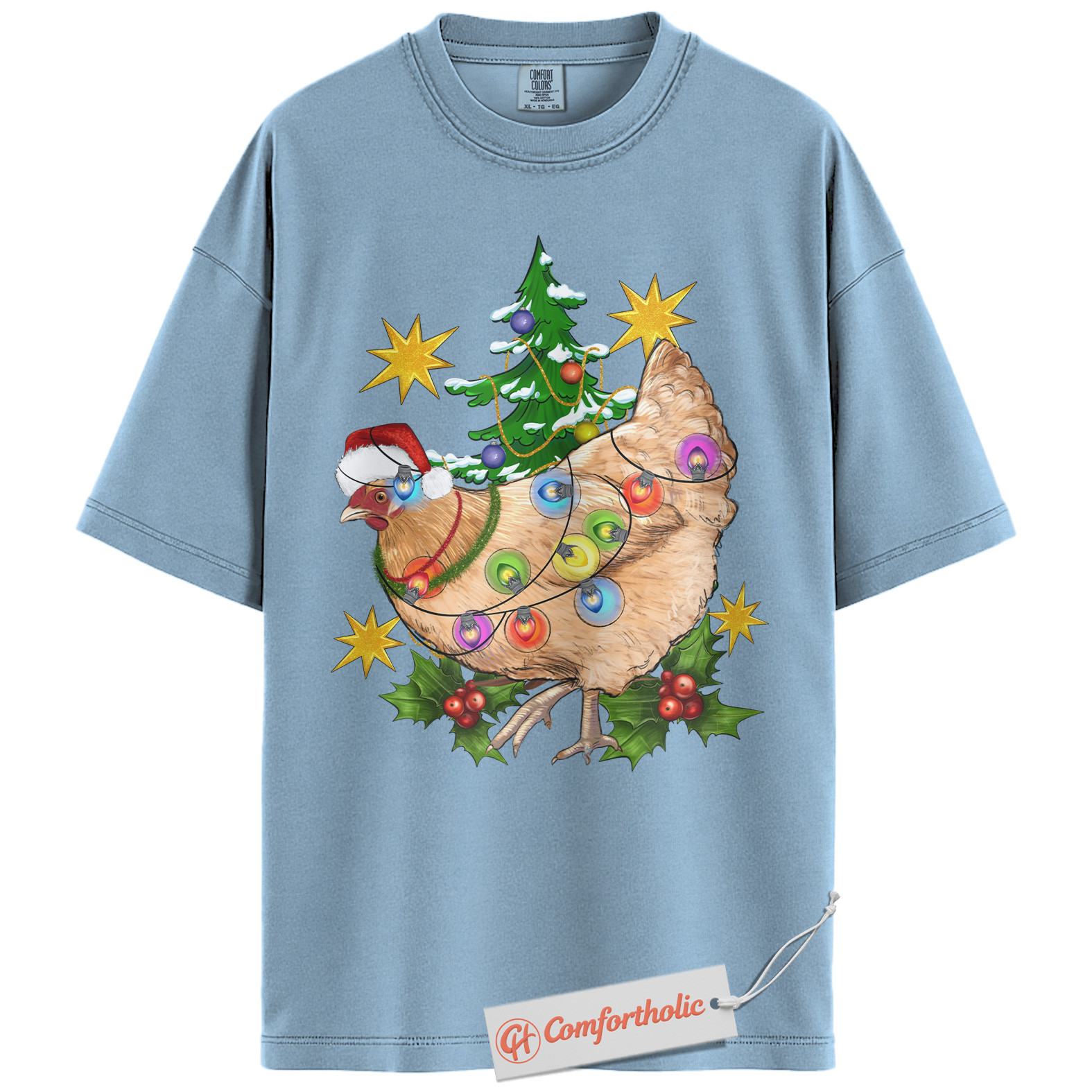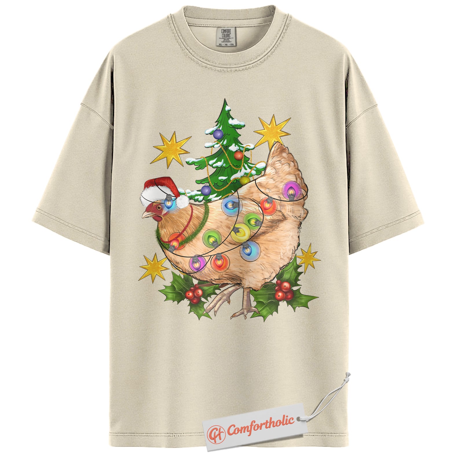 Funny Chicken Christmas Shirt, Farm Animal Holiday T-Shirt, Cute Country Hen Graphic Tee, Christmas Gift for Chicken Lovers, Christmas Comfort Colors Shirt