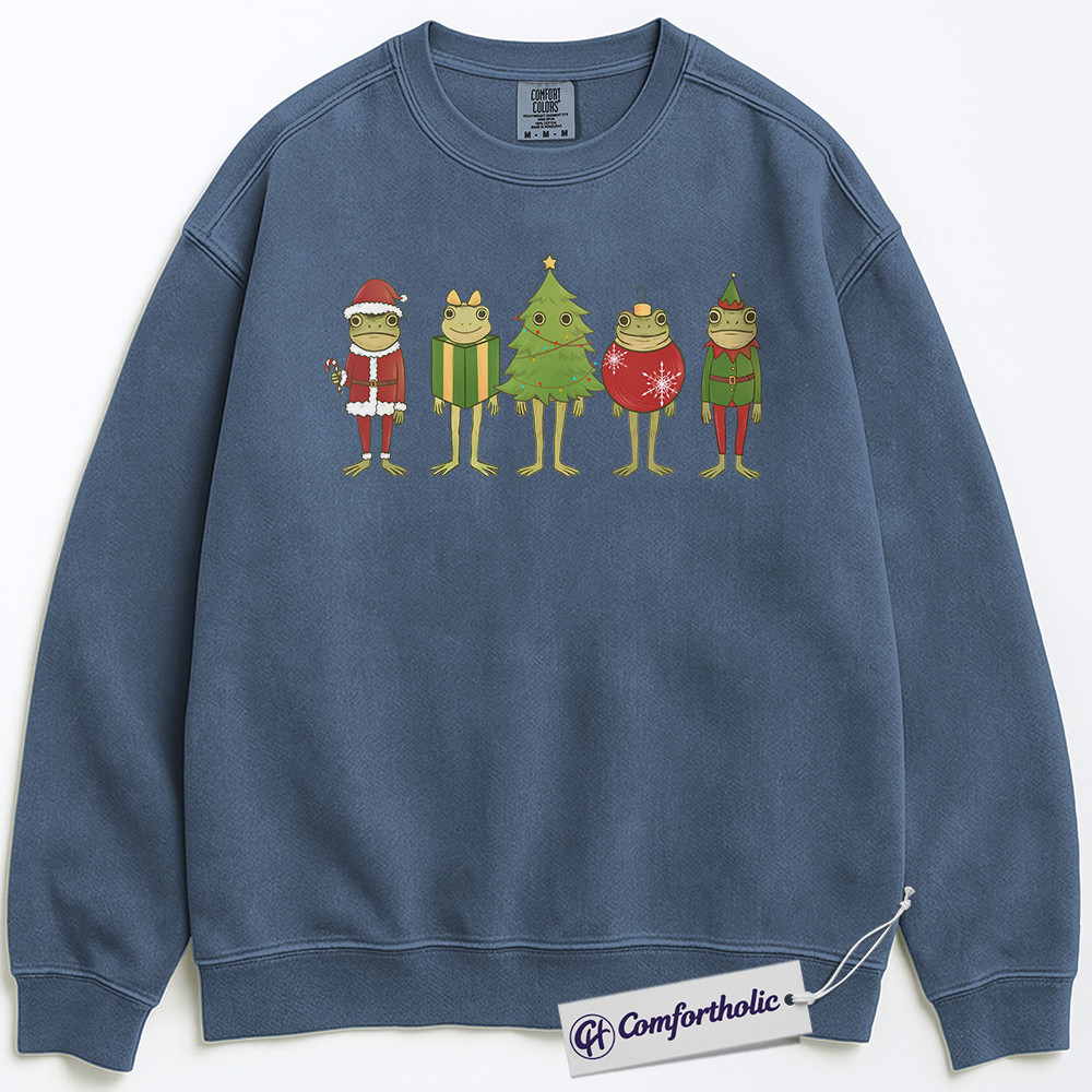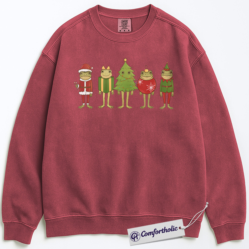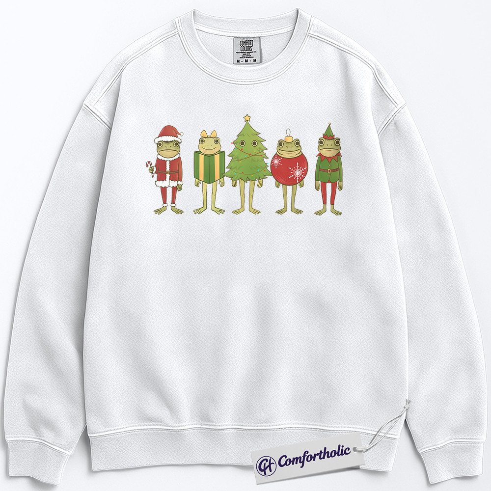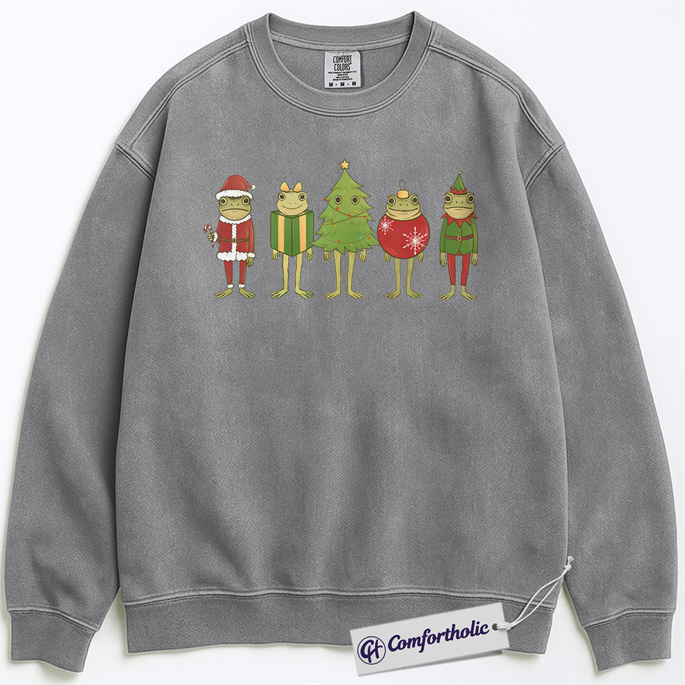 Funny Christmas Frog Sweatshirt, Cute Holiday Amphibian Pullover, Festive Animal Lovers Graphic Crewneck, Unique Gift for Frog Collectors, Christmas Comfort Colors Sweatshirt