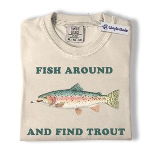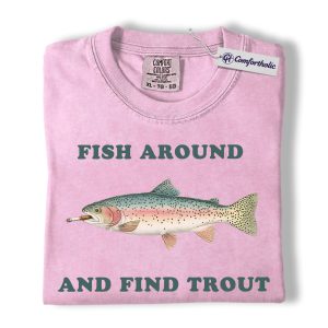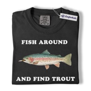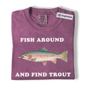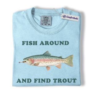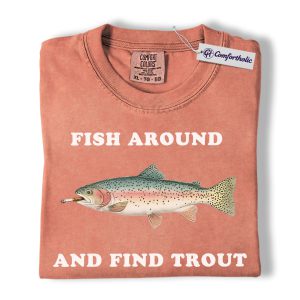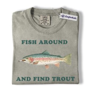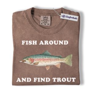 Funny Fishing Shirt, Fish Around and Find Trout Graphic Tee, Trout Fisherman Dad T-Shirt, Gift for Anglers, Comfort Colors Shirt