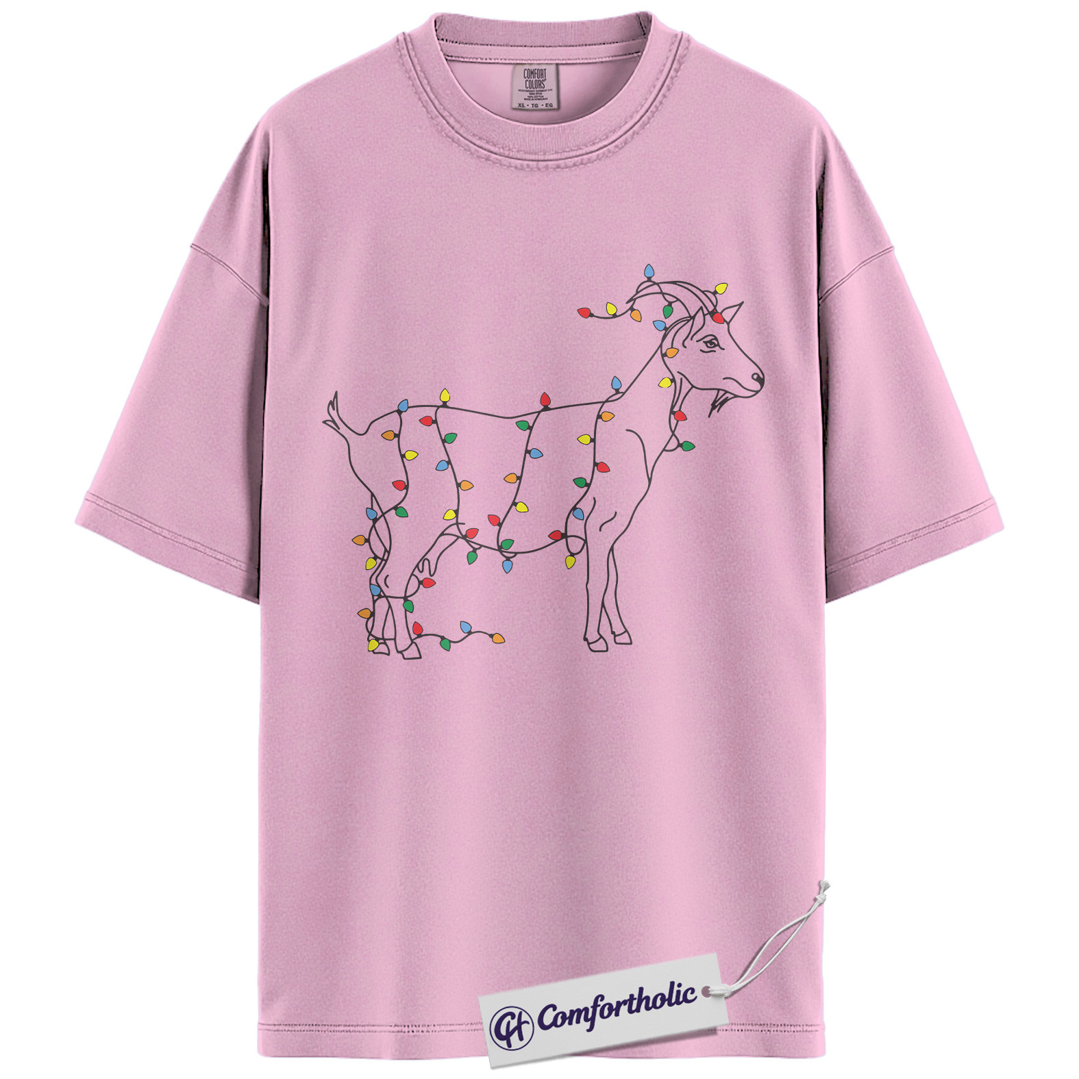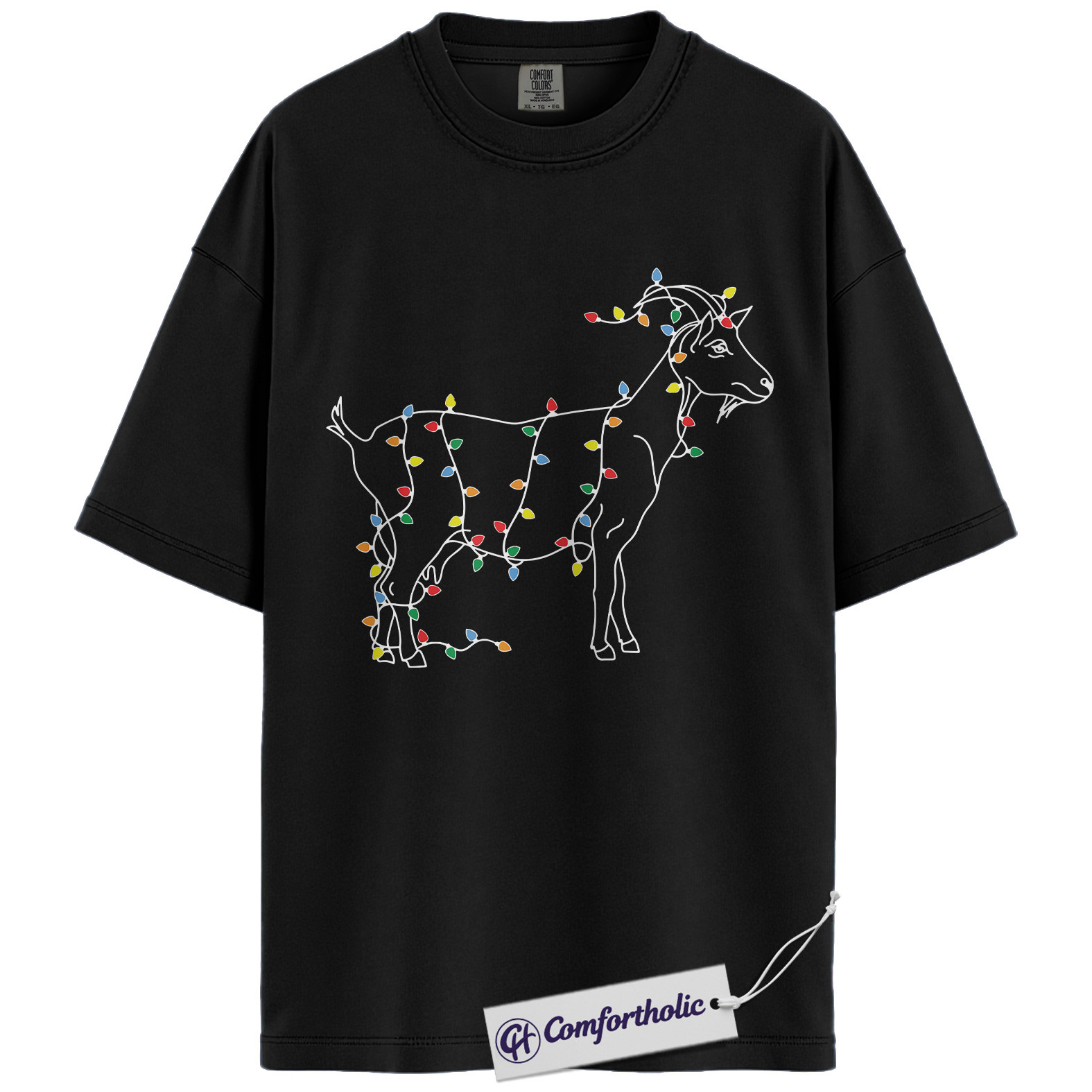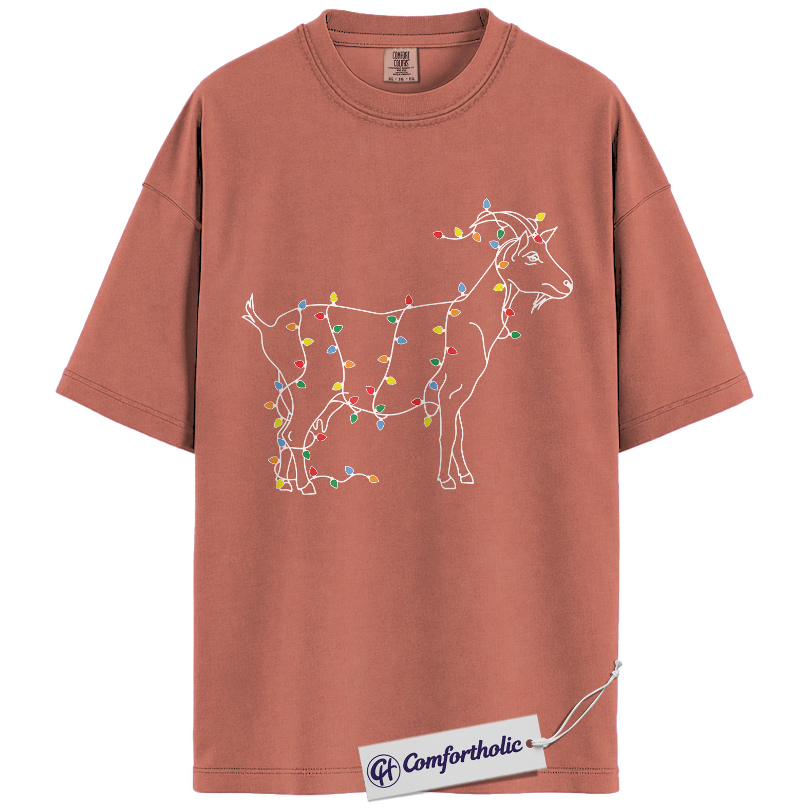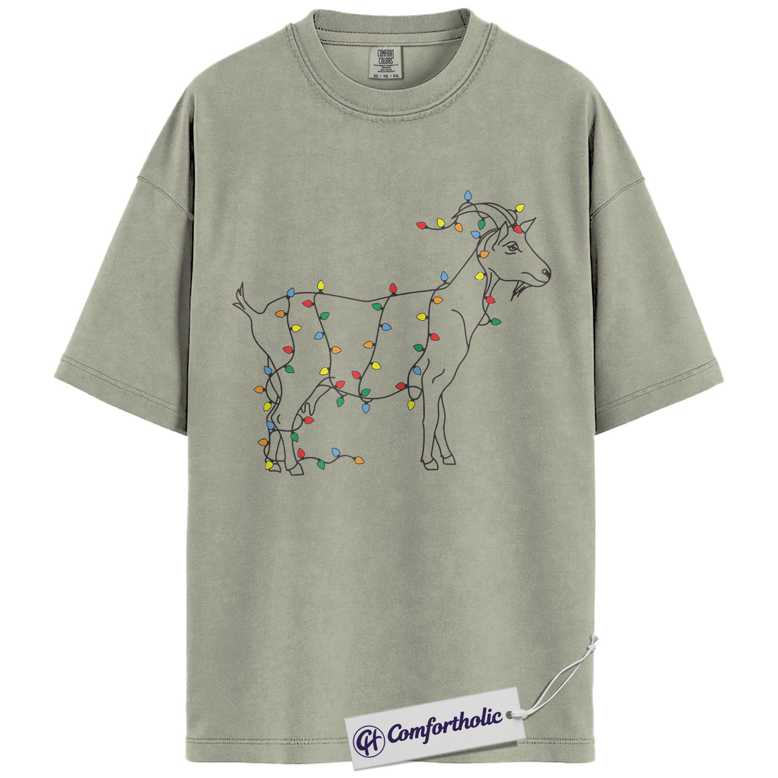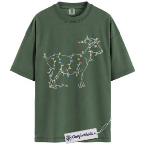 Funny Goat Christmas Shirt, Farm Animal Holiday T-Shirt, Minimal Line Art Graphic Tee, Country Gift for Goat Lovers, Christmas Comfort Colors Shirt