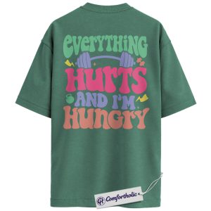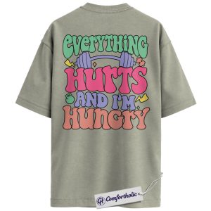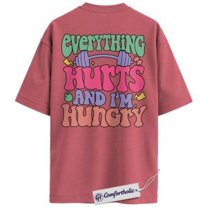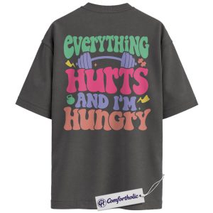 Funny Gym Shirt, Retro Weightlifting Graphic Tee, Everything Hurts And I’m Hungry T-Shirt, Gift for Gym Lovers Lifters, Comfort Colors Shirt