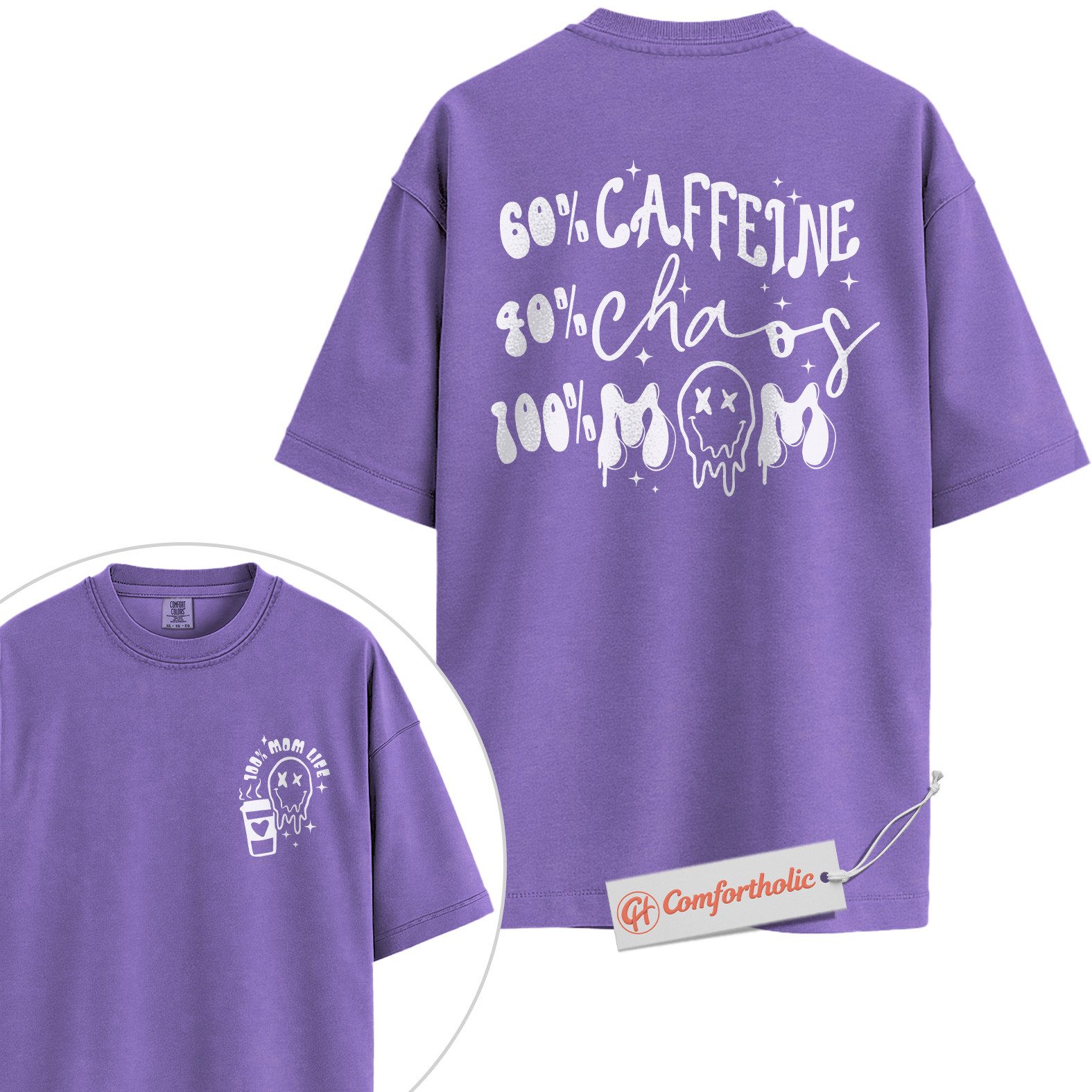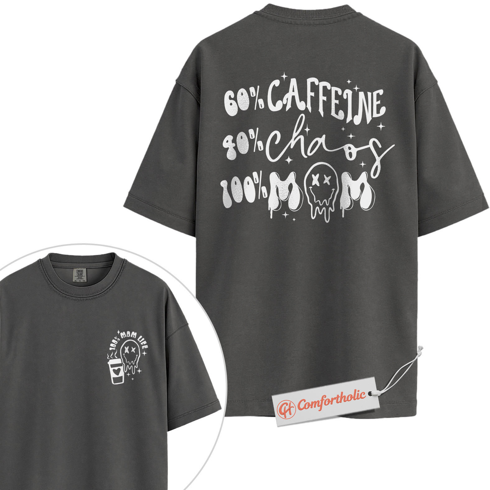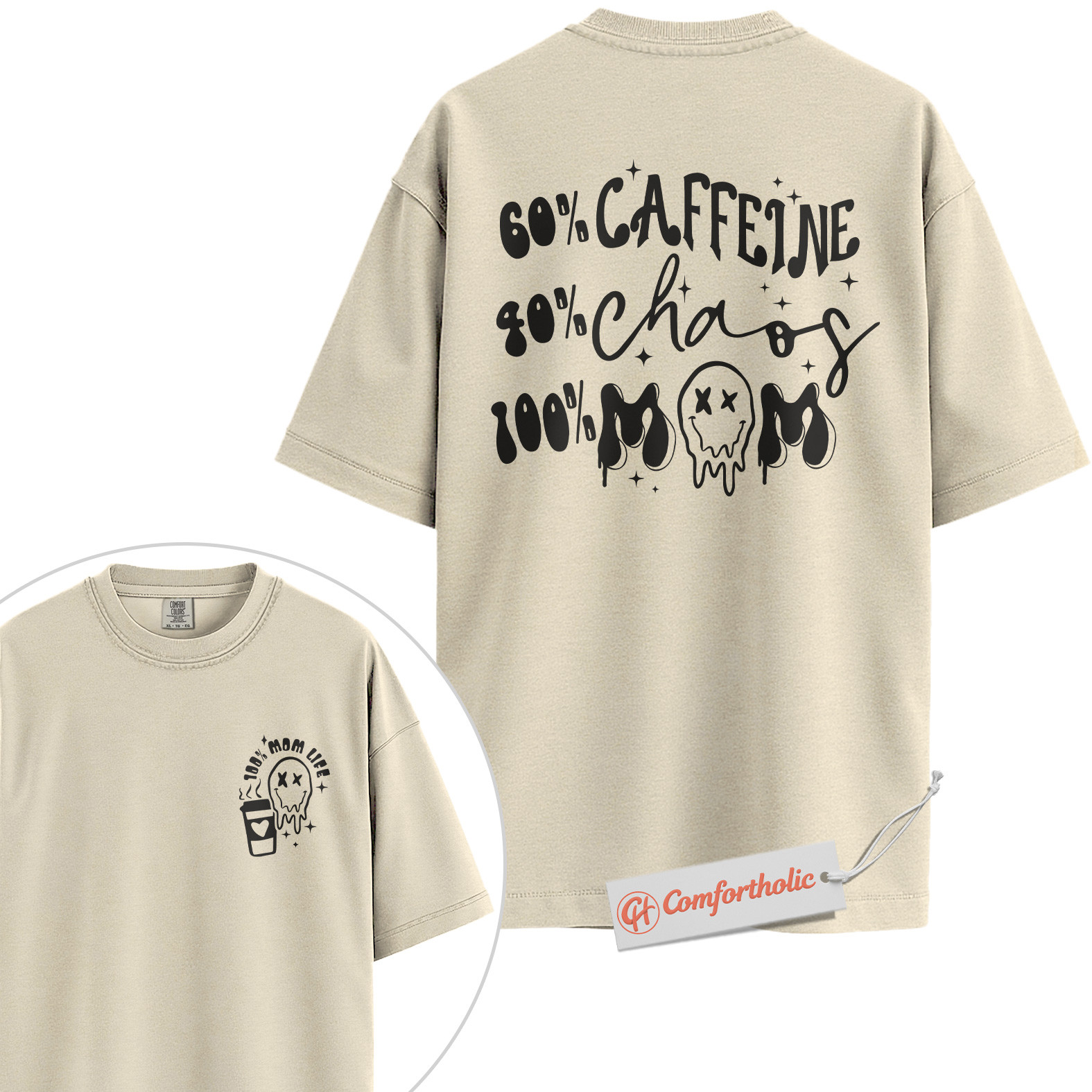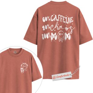 Funny Mom Life Shirt, 60% Caffeine 40% Chaos 100% Mom T-Shirt, Tired Mother Graphic Tee, Humorous Coffee Lover Comfort Colors Shirt 2-Sided
