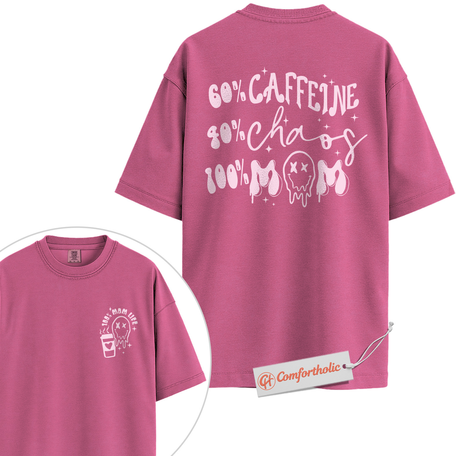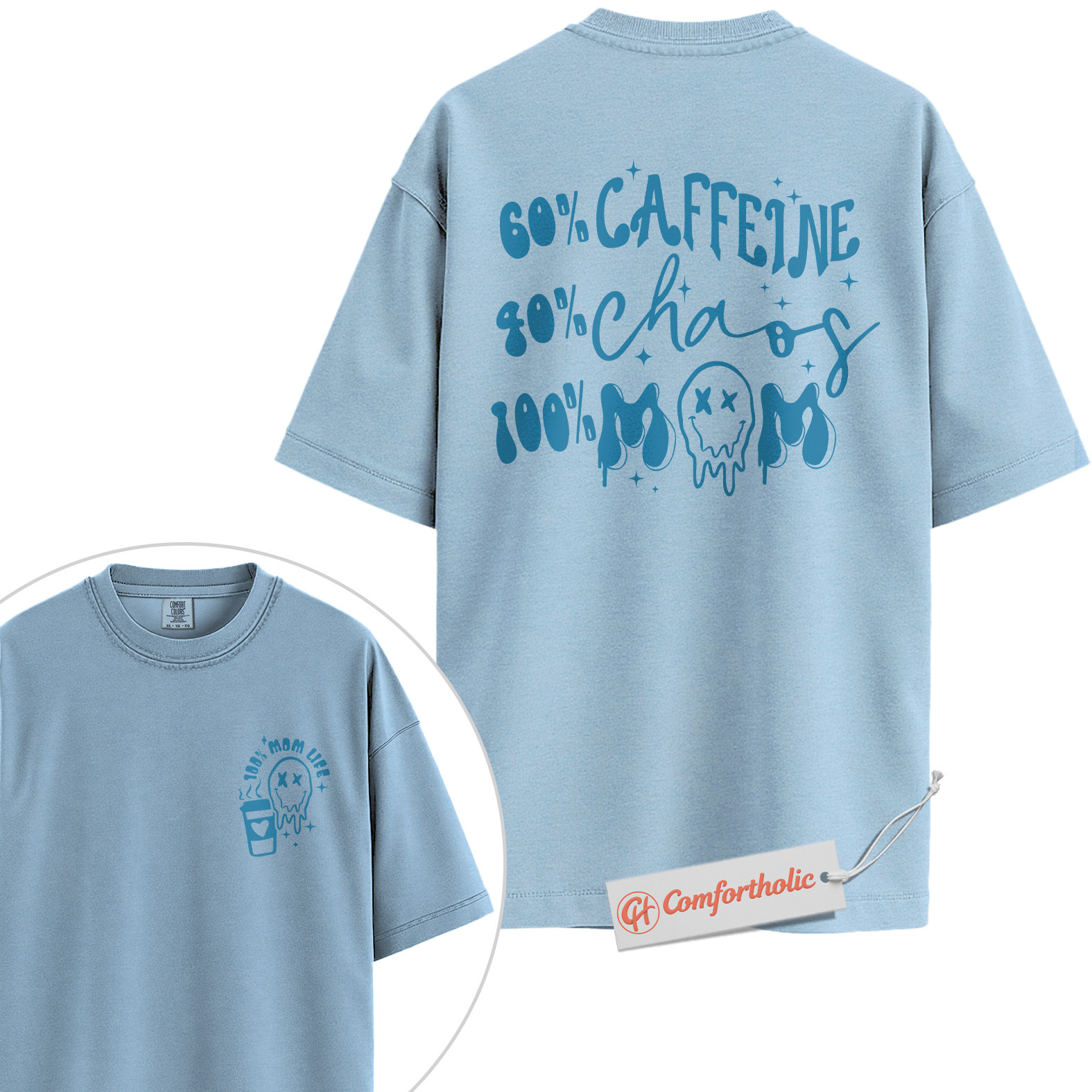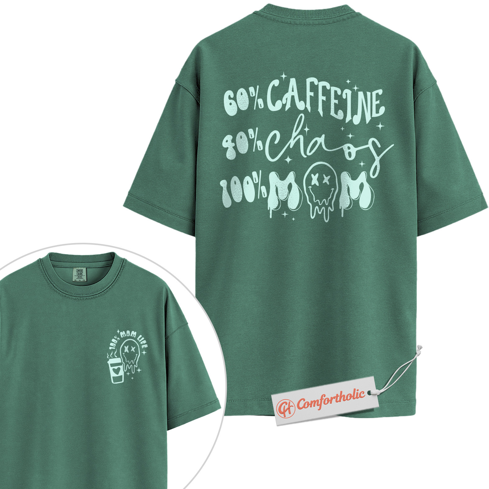 Funny Mom Life Shirt, 60% Caffeine 40% Chaos 100% Mom T-Shirt, Tired Mother Graphic Tee, Humorous Coffee Lover Comfort Colors Shirt 2-Sided