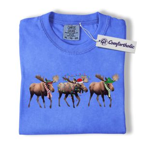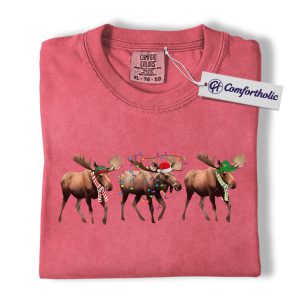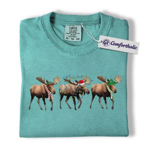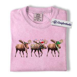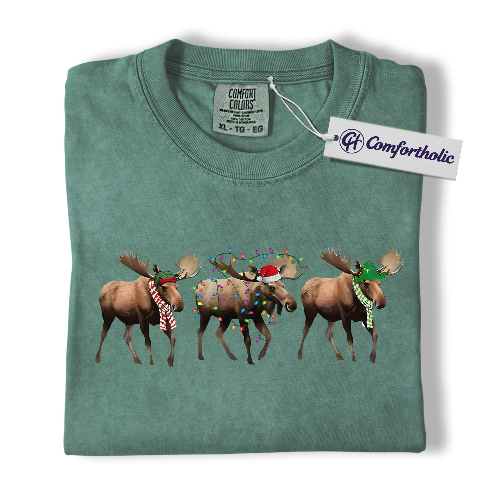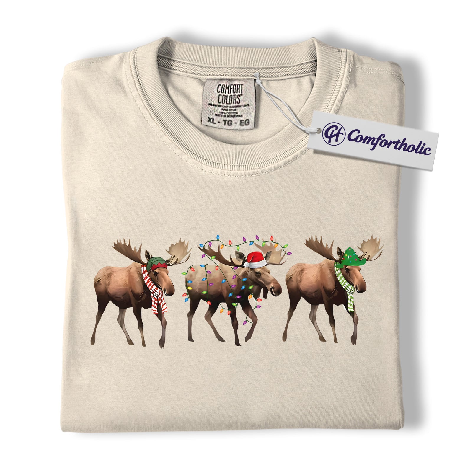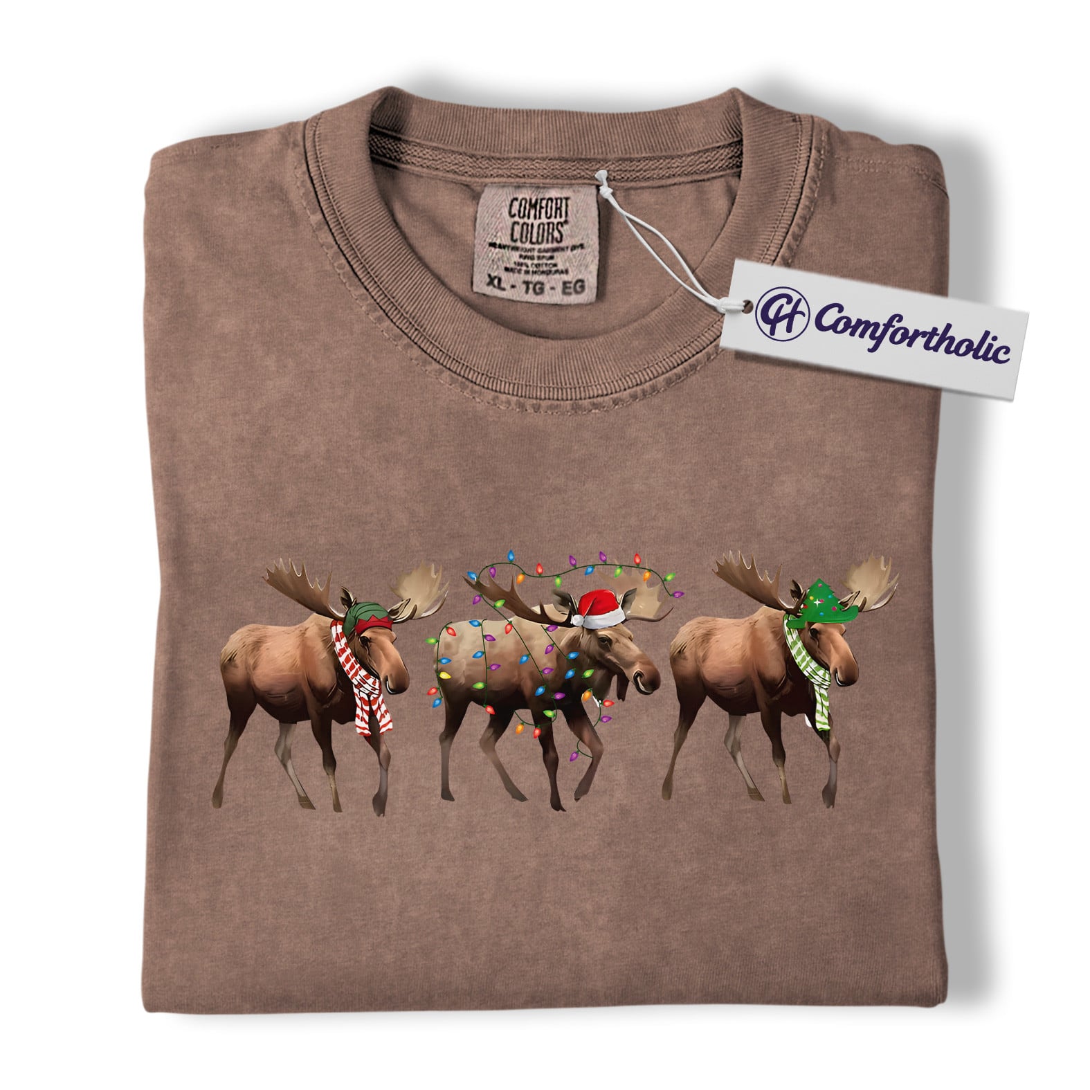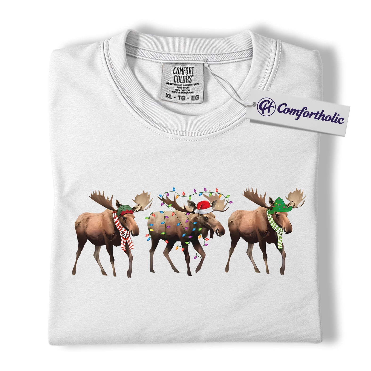 Funny Moose Christmas Shirt, Cute Holiday Animal T-Shirt, Festive Lights and Santa Hat Graphic Tee, Christmas Gift for Animal Lovers, Christmas Comfort Colors Shirt