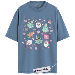 Funny Nurse Christmas Shirt, Cute Medical Worker Holiday T-Shirt, Pastel Santa and Tree Graphic Tee, Festive Gift for Nurses, Christmas Comfort Colors Shirt