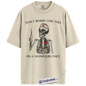 Funny Nurse Skeleton Shirt, Don’t Worry I Did This on a Mannequin Once T-Shirt, Medical Student Humor Graphic Tee, Healthcare Worker Gift, Nurse Comfort Colors Shirt