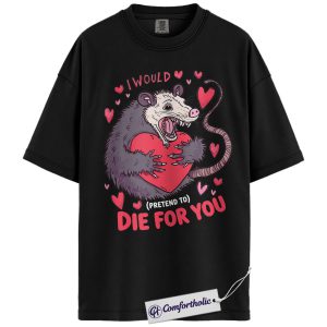 Funny Opossum Valentine Shirt, Cute Possum Heart Graphic Tee, Animal Lover Couples T-Shirt, Valentine’s Day Gift for Girlfriend Boyfriend, Comfort Colors Shirt