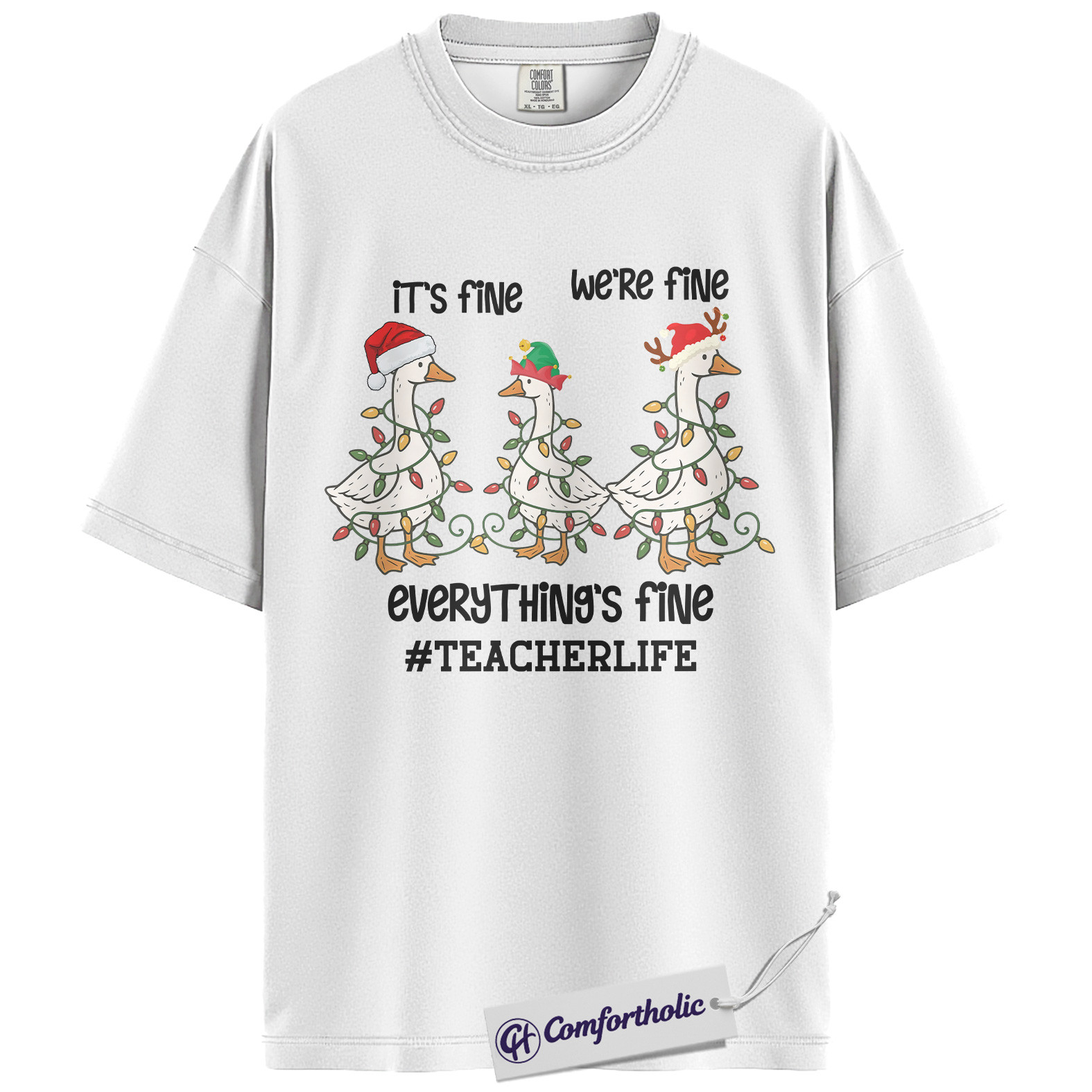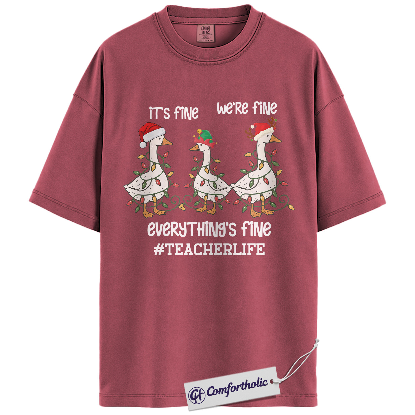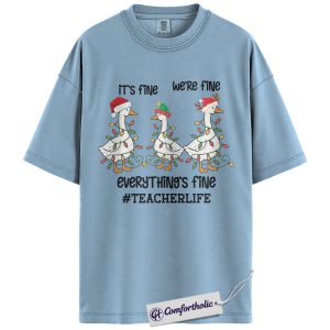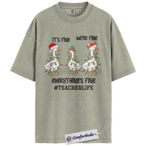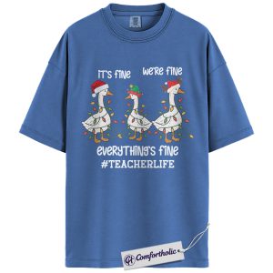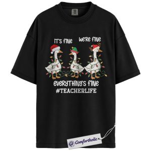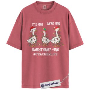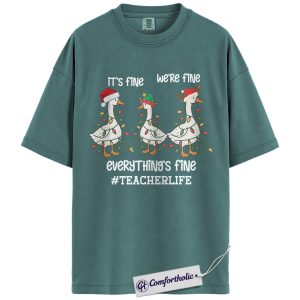 Funny Teacher Christmas Shirt, It’s Fine We’re Fine Everything’s Fine T-Shirt, Cute Goose Holiday Graphic Tee , Holiday Gift for Teachers, Christmas Comfort Colors Shirt