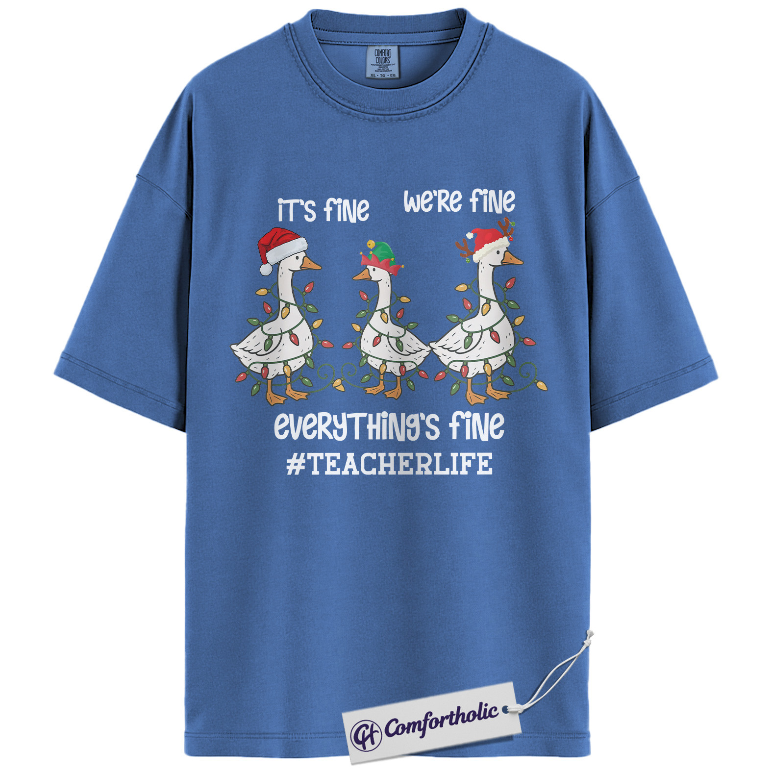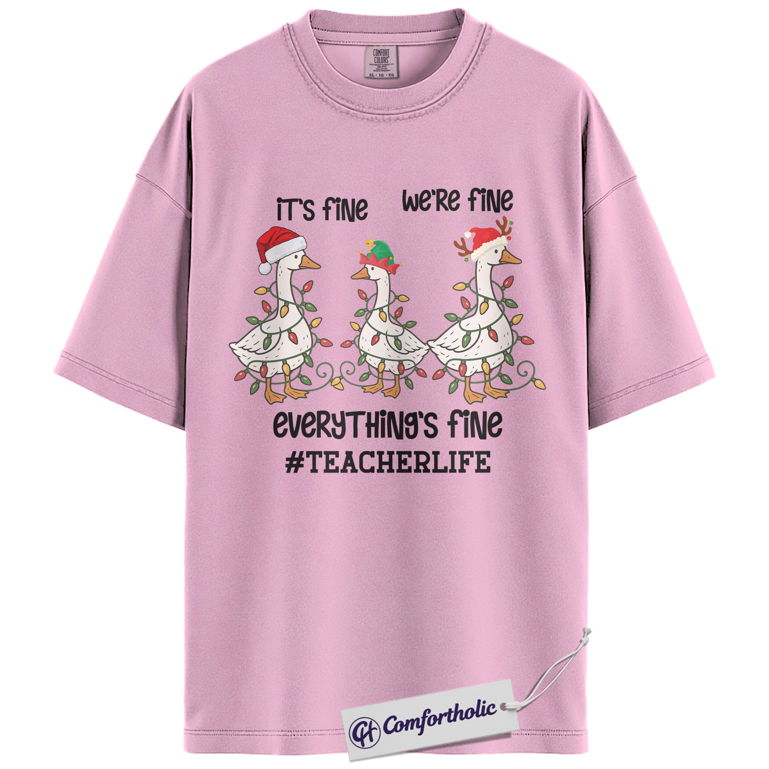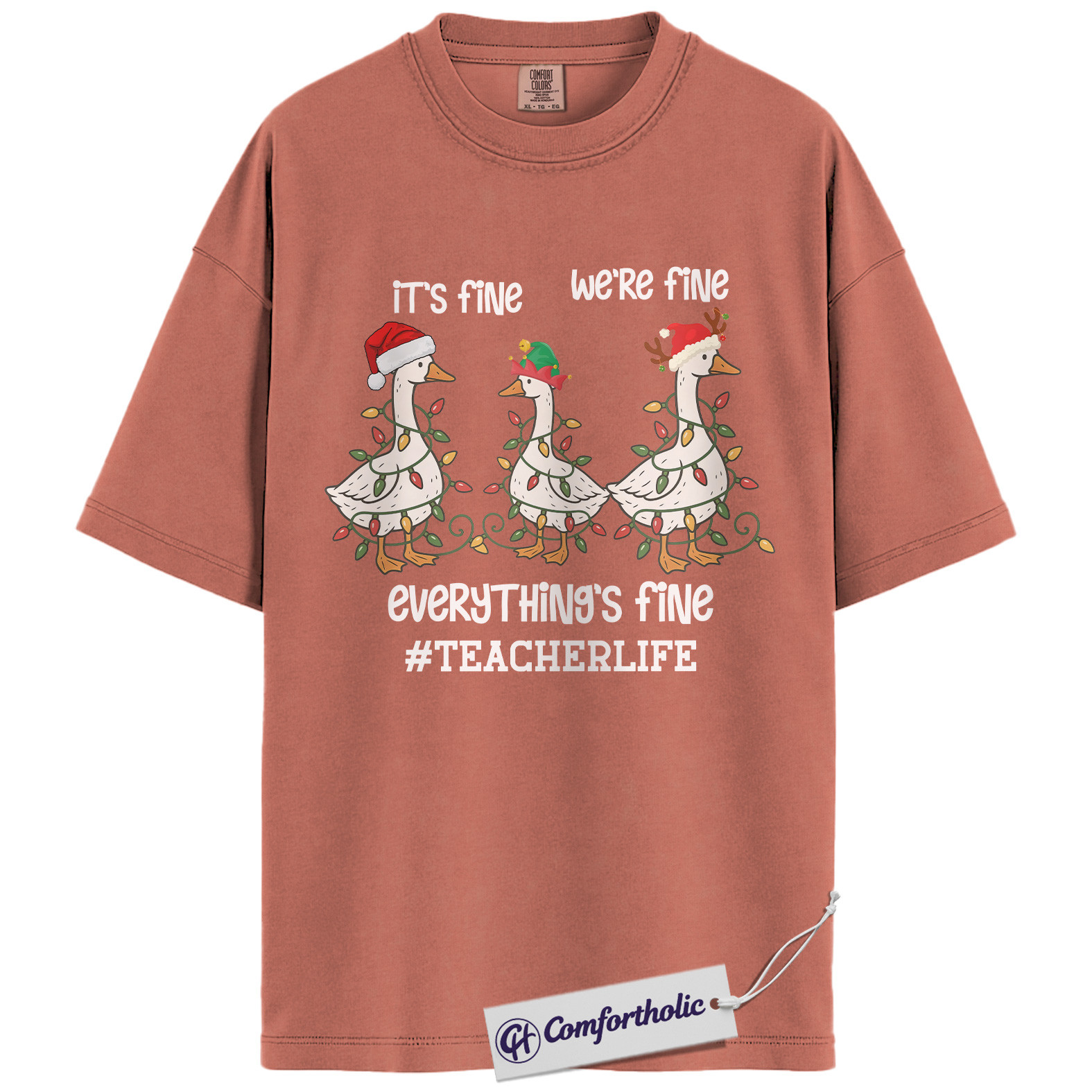 Funny Teacher Christmas Shirt, It’s Fine We’re Fine Everything’s Fine T-Shirt, Cute Goose Holiday Graphic Tee , Holiday Gift for Teachers, Christmas Comfort Colors Shirt