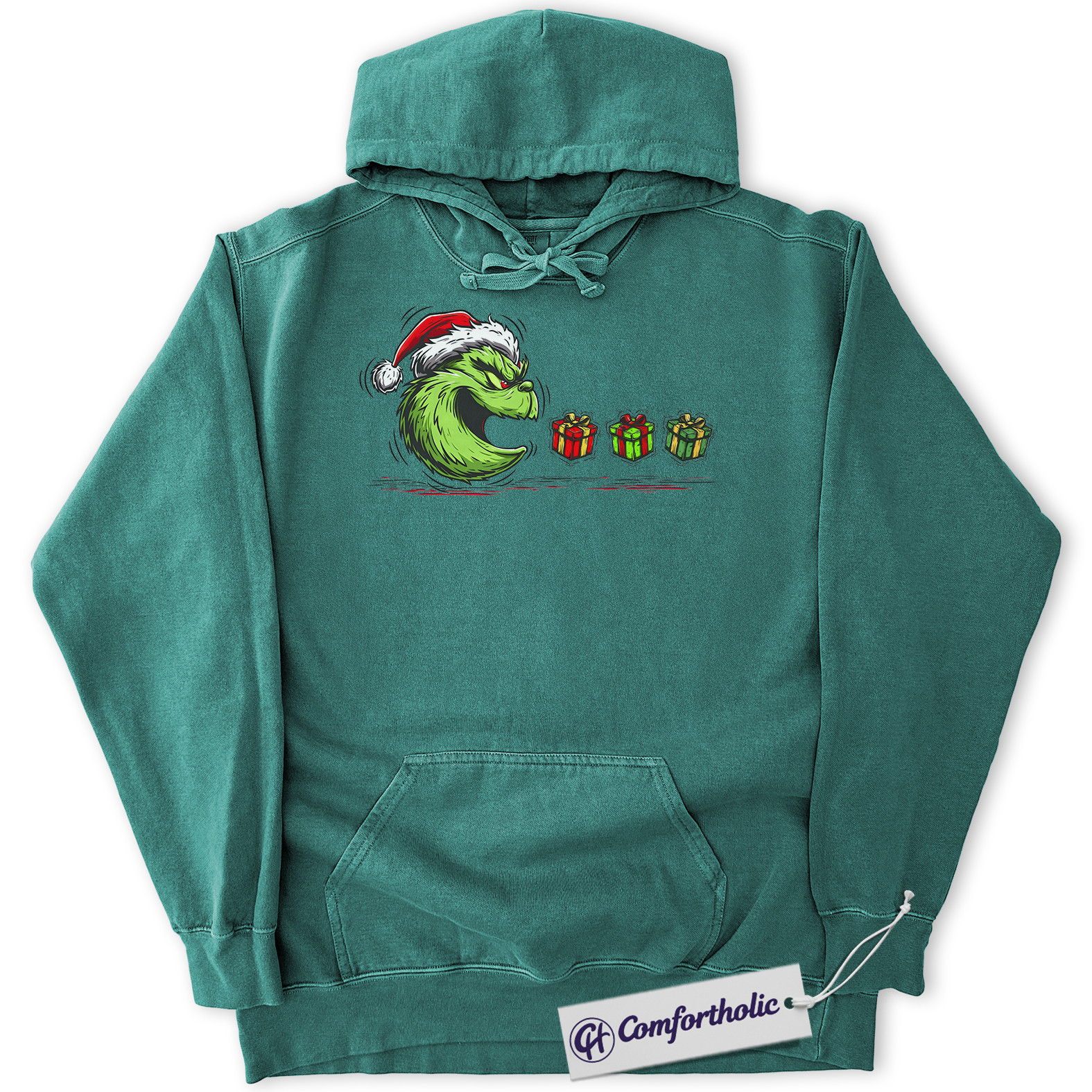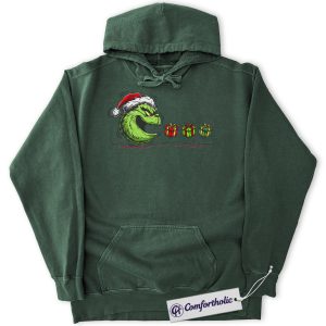Funny The Grinch Christmas Hoodie, Cute Santa Hat Hoodie, Green Monster Holiday Graphic Pullover, Humorous Xmas Gift, Christmas Comfort Colors Hoodie