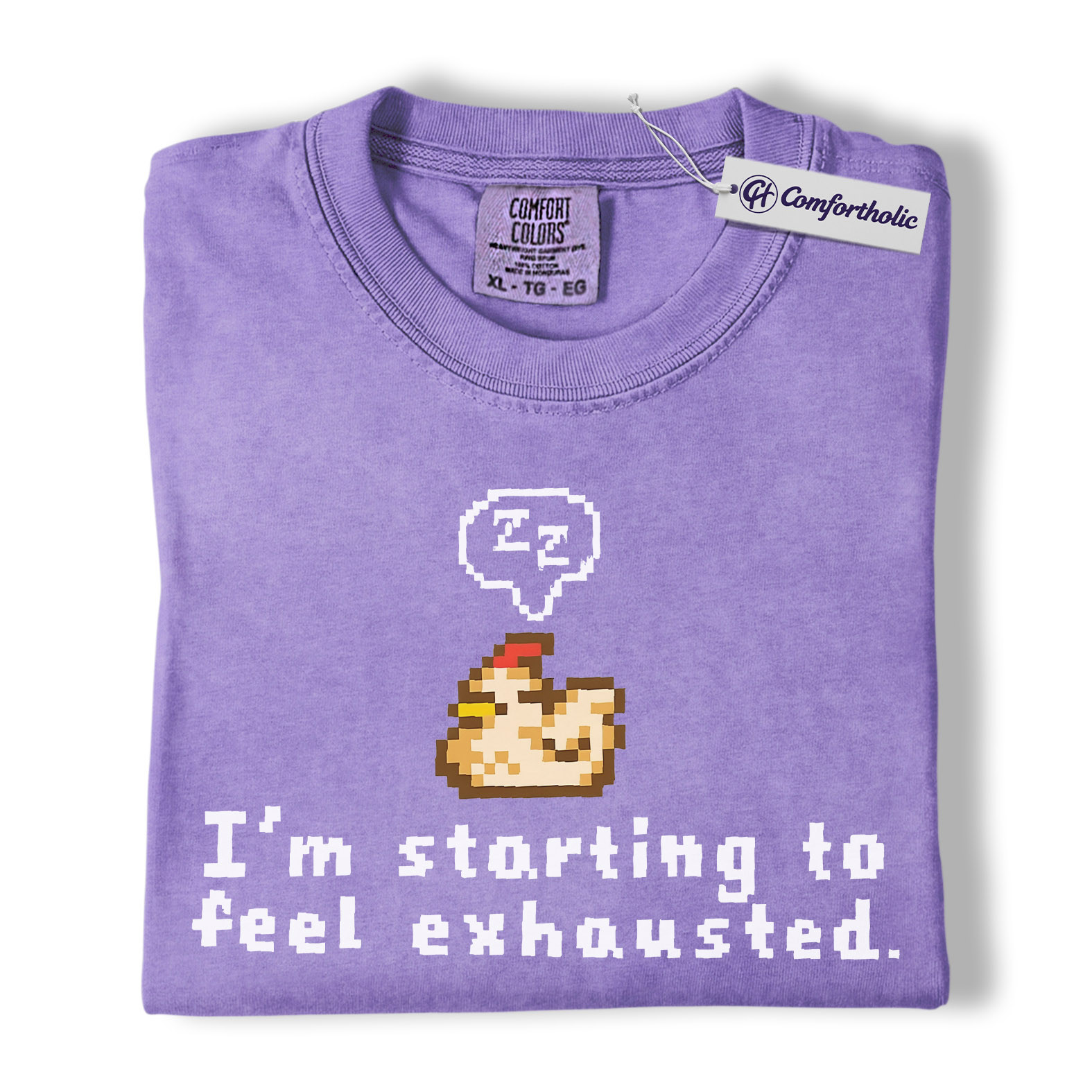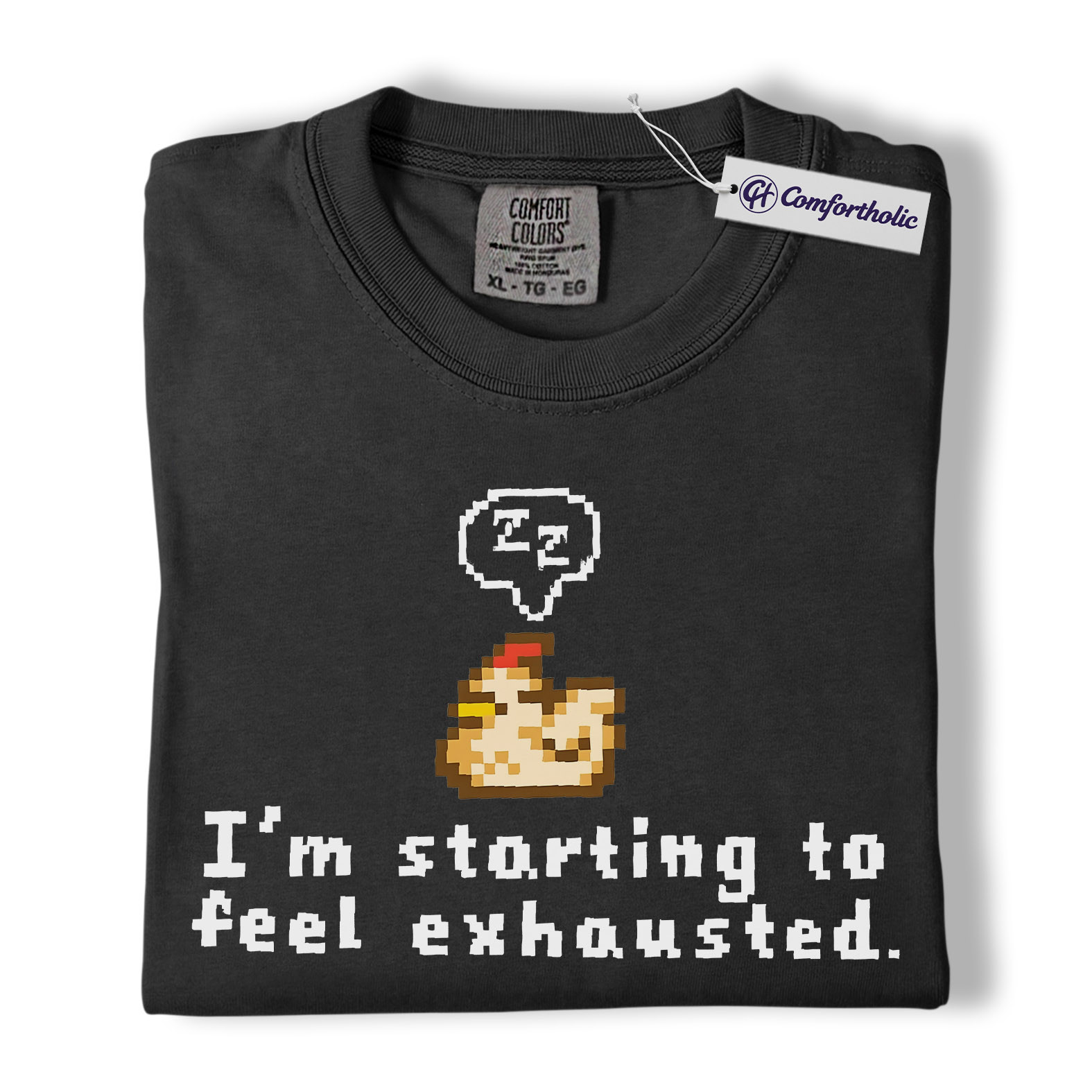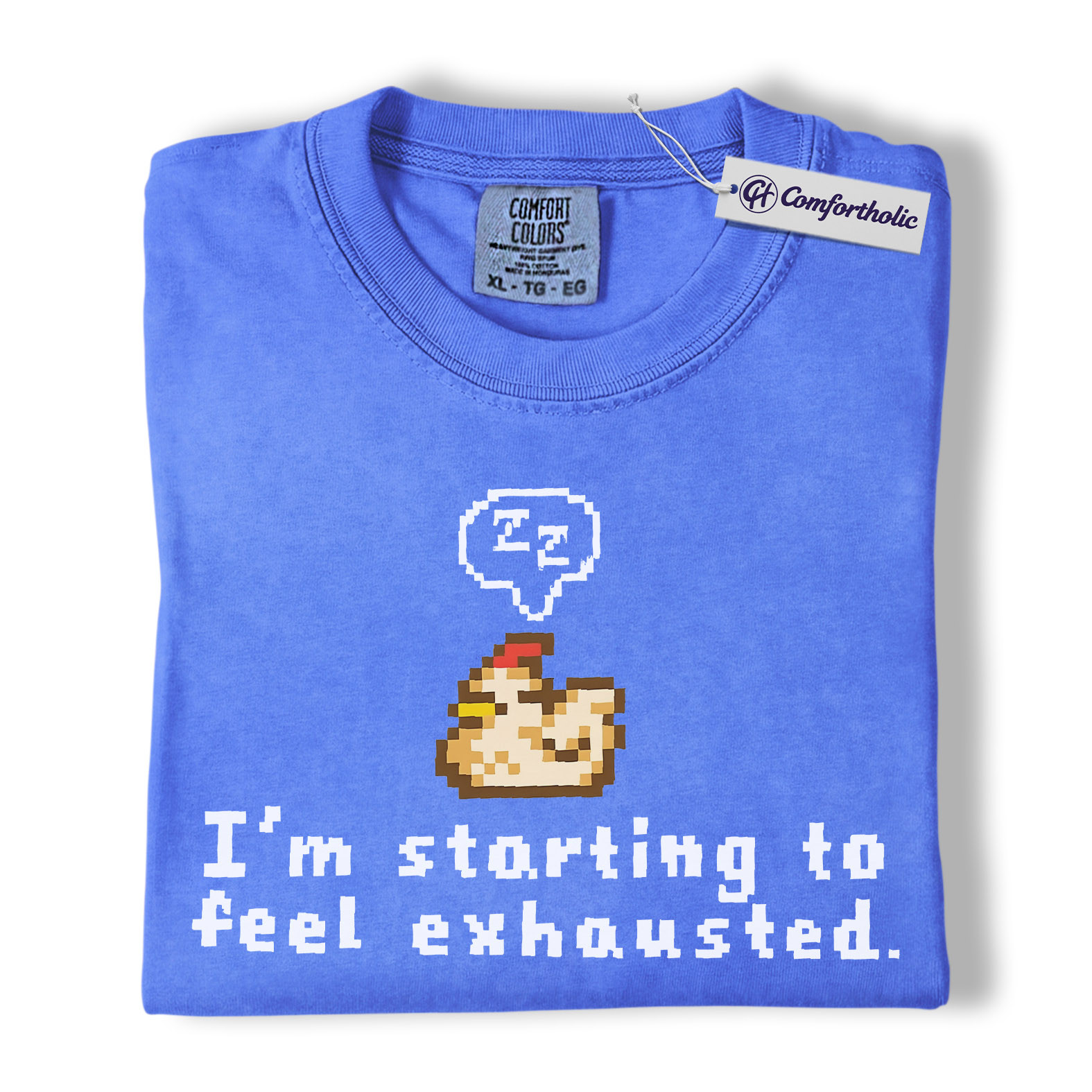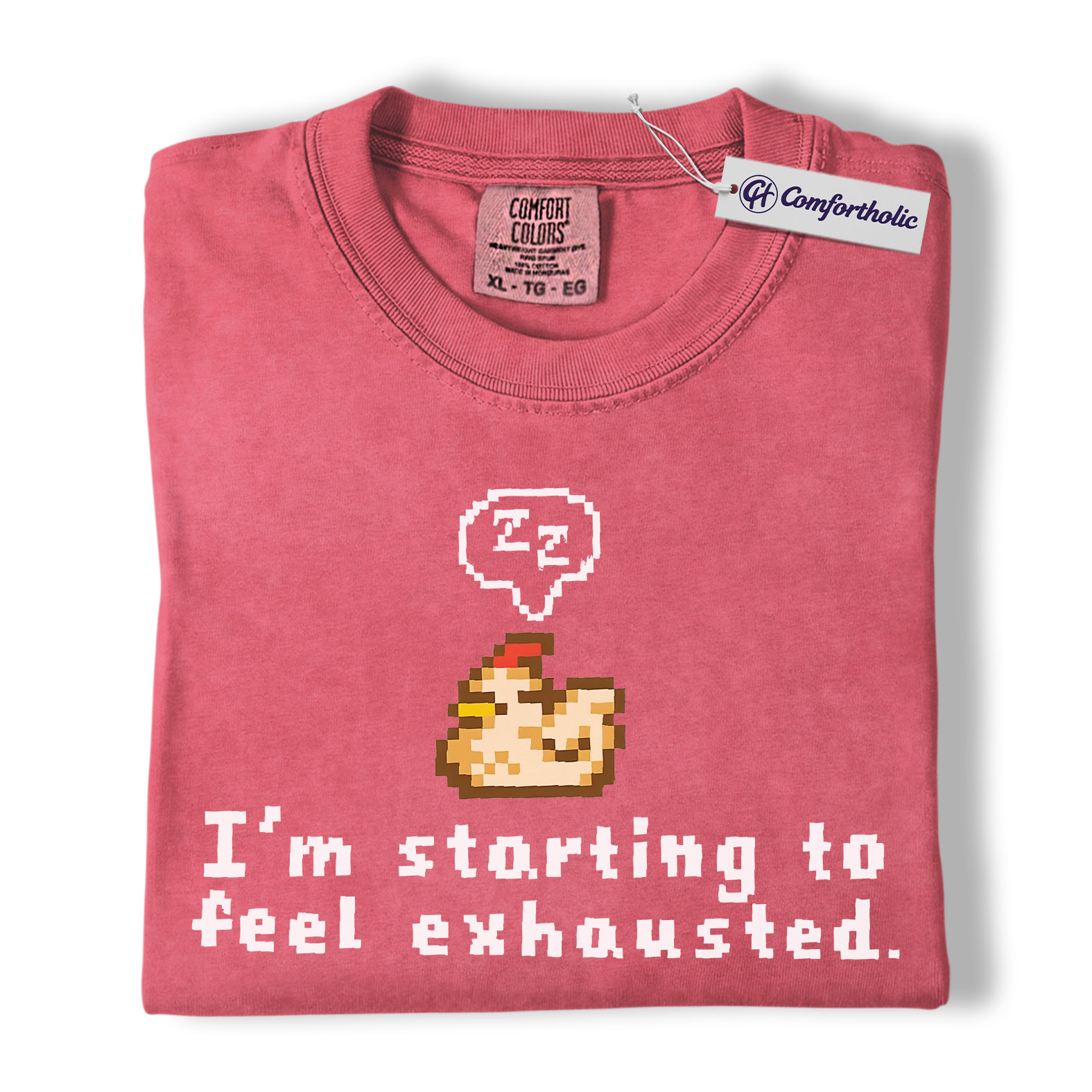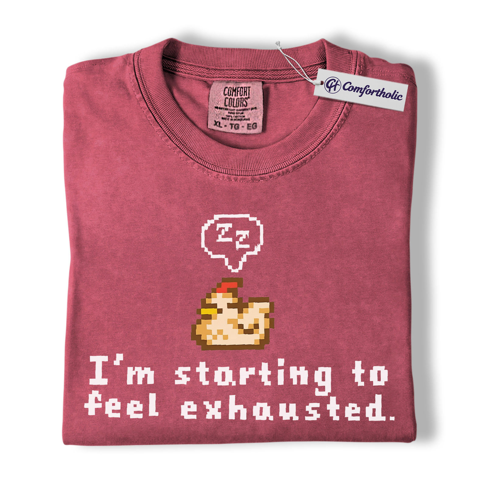 Funny Tired Chicken Shirt, Retro Pixel Art Graphic Tee, Exhausted Mood T-Shirt, Gift for Gamers & Chicken Lovers, Comfort Colors Shirt