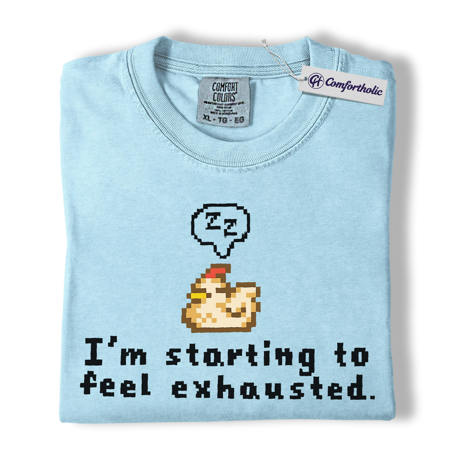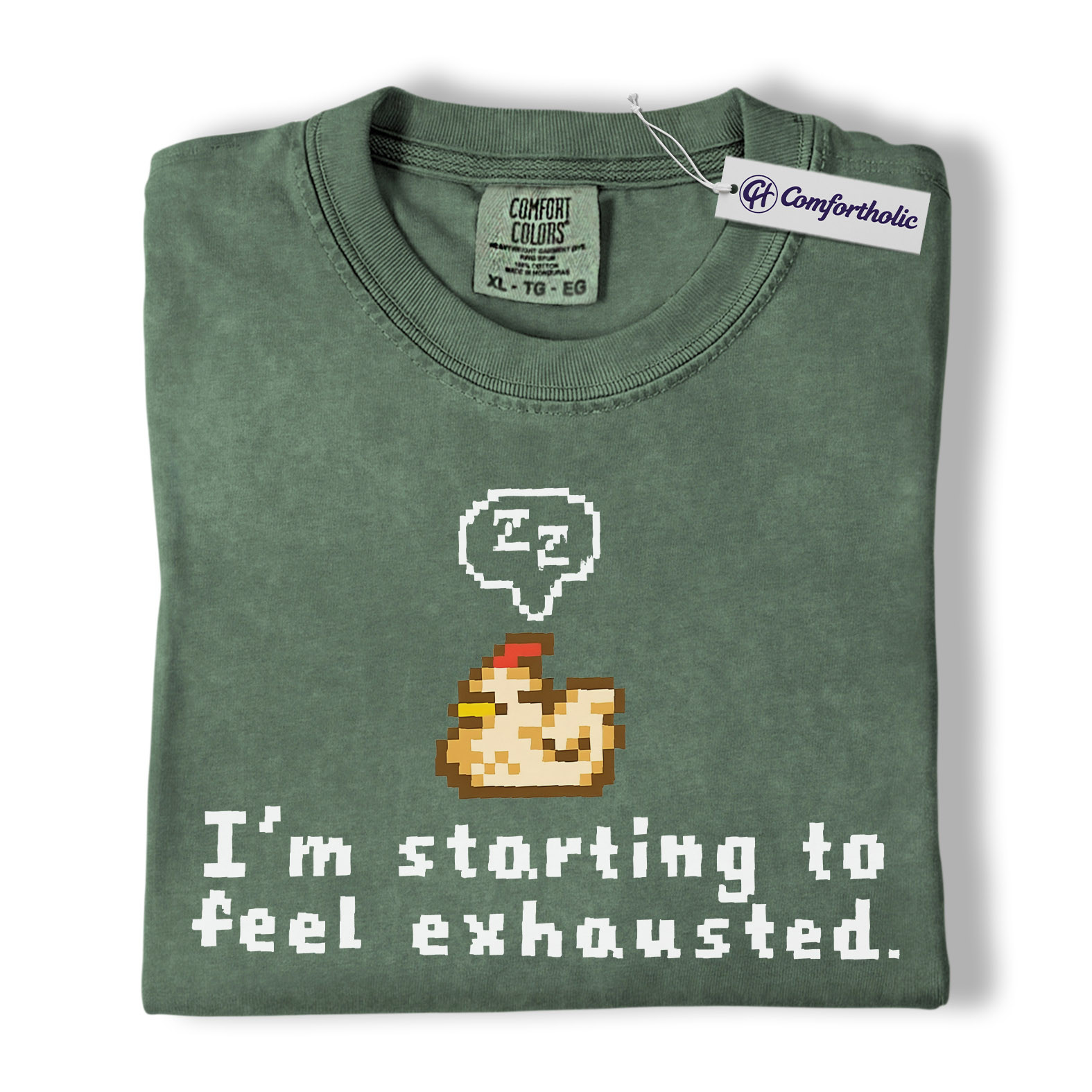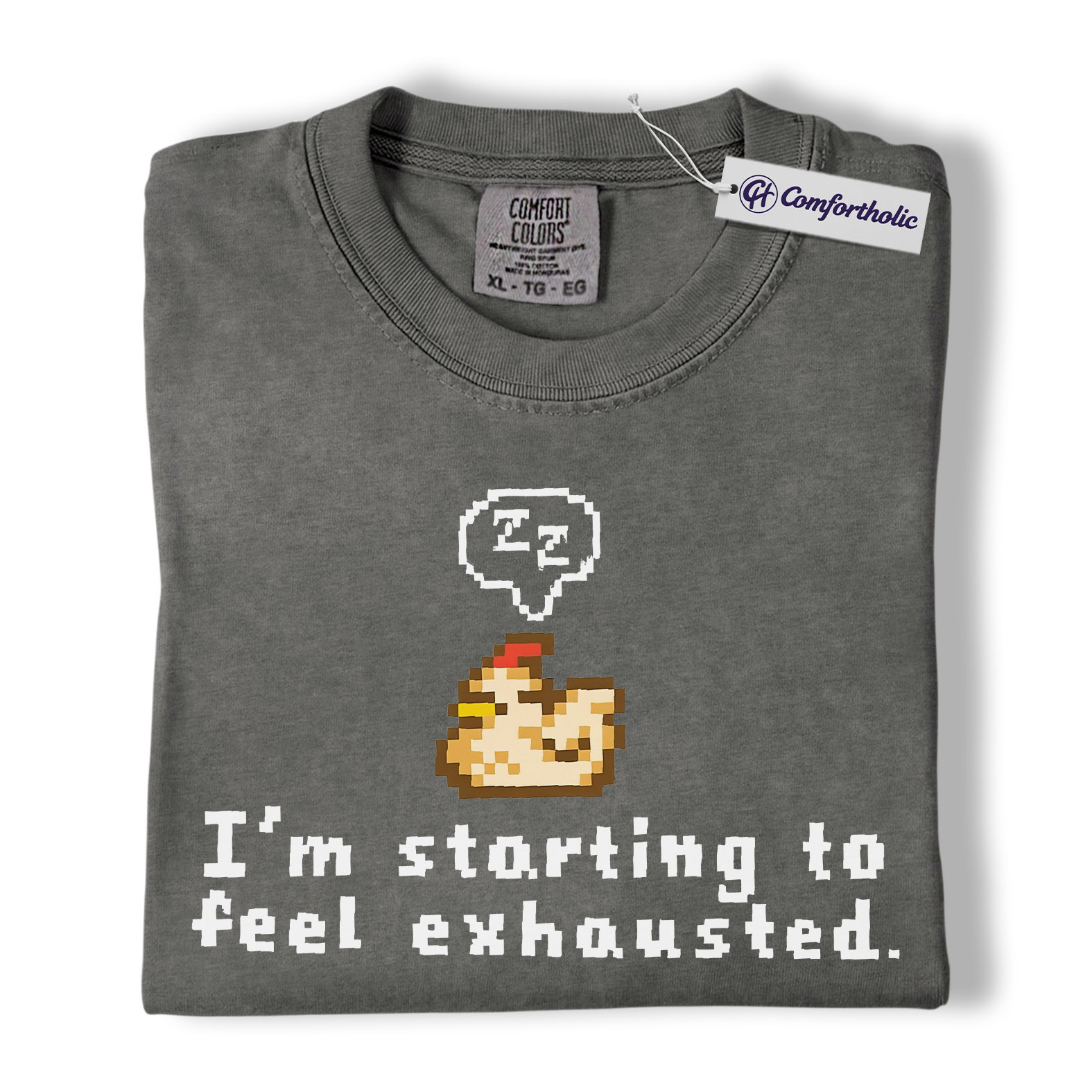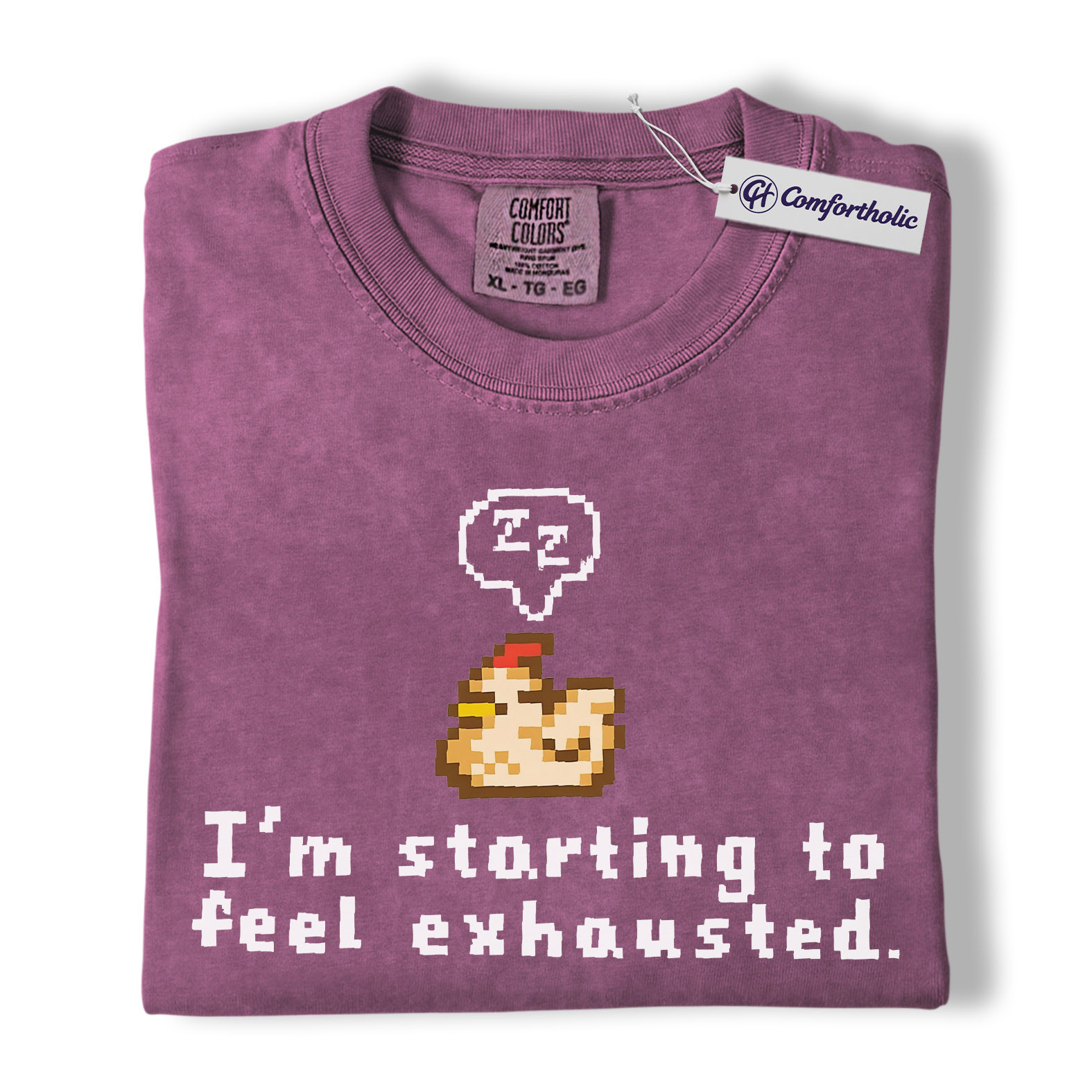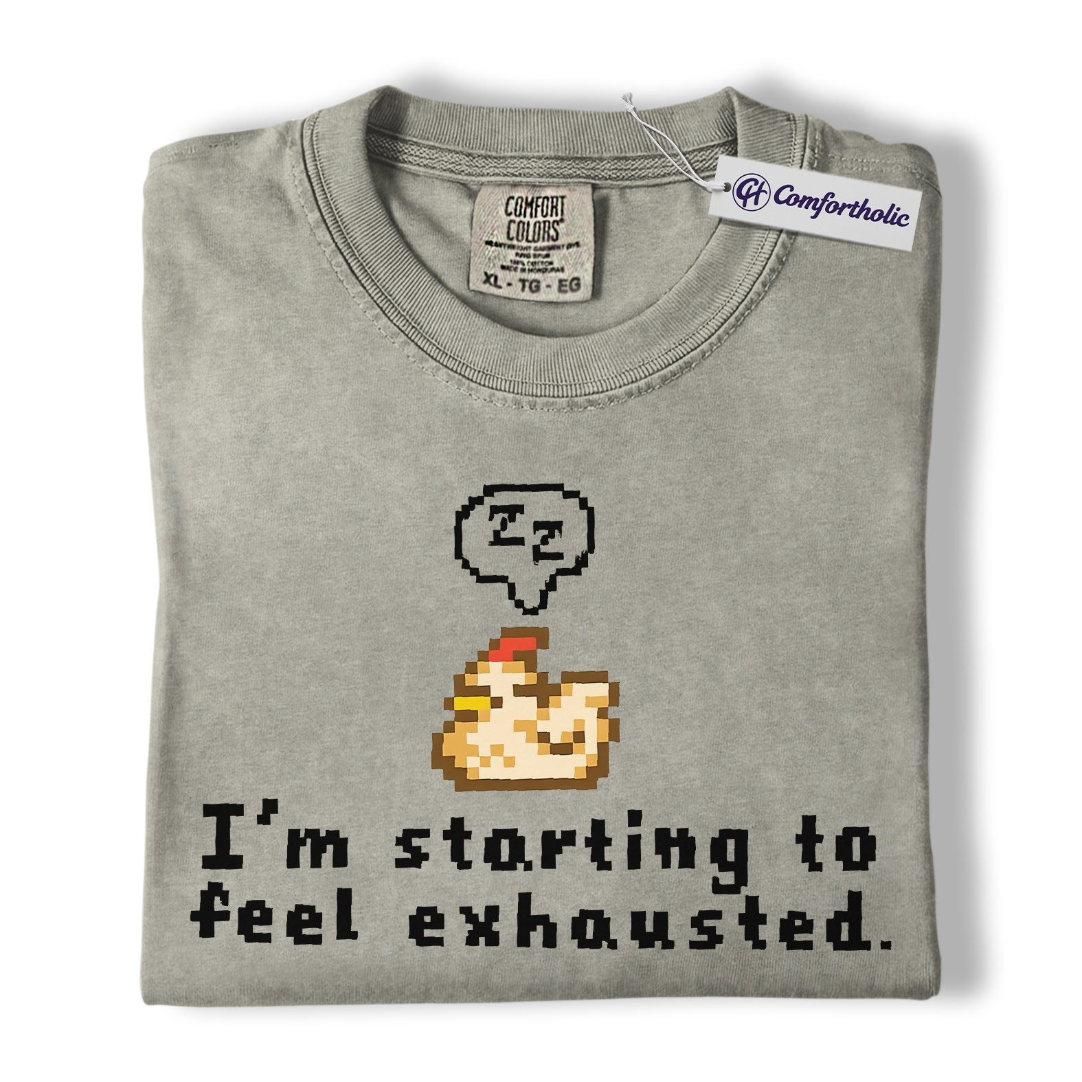 Funny Tired Chicken Shirt, Retro Pixel Art Graphic Tee, Exhausted Mood T-Shirt, Gift for Gamers & Chicken Lovers, Comfort Colors Shirt