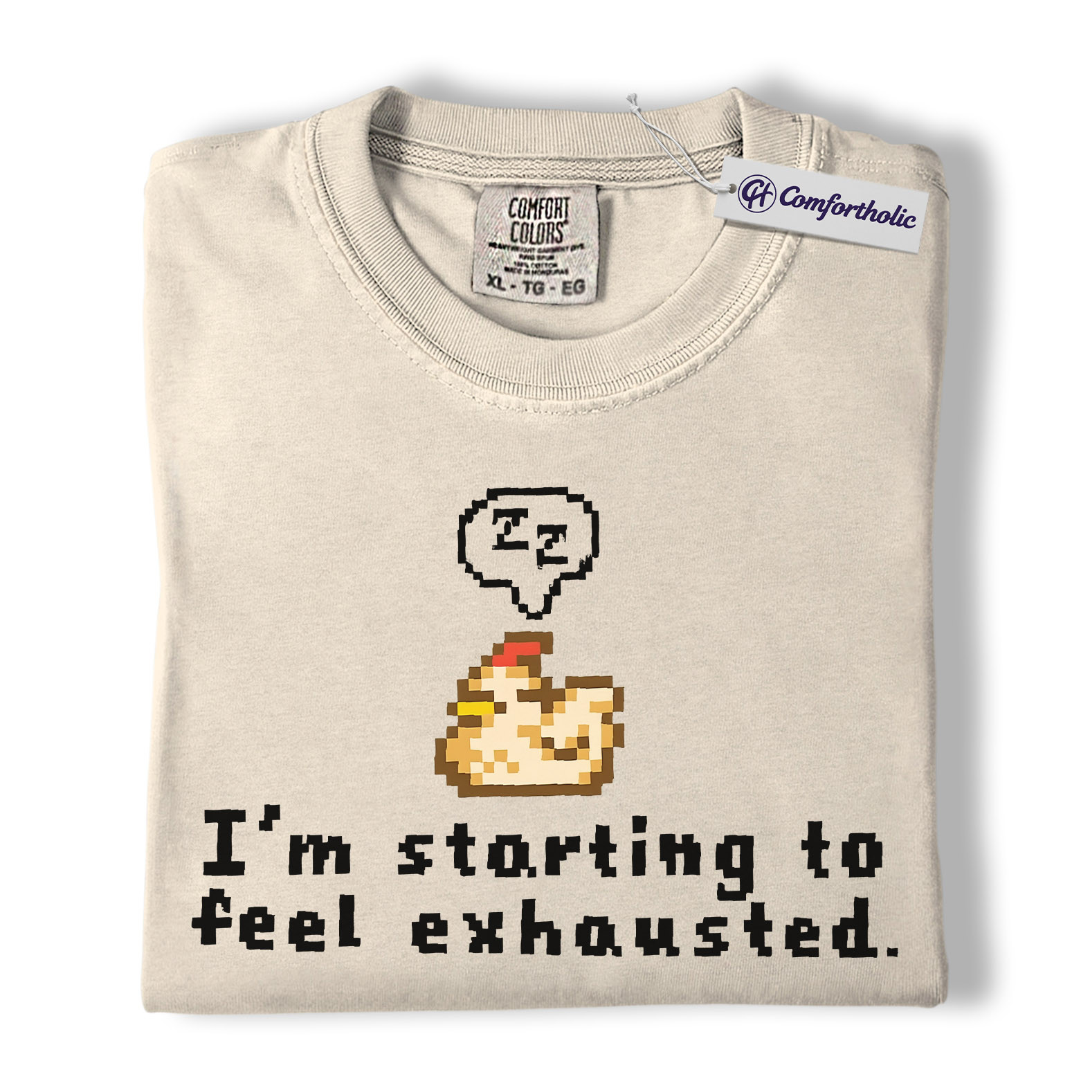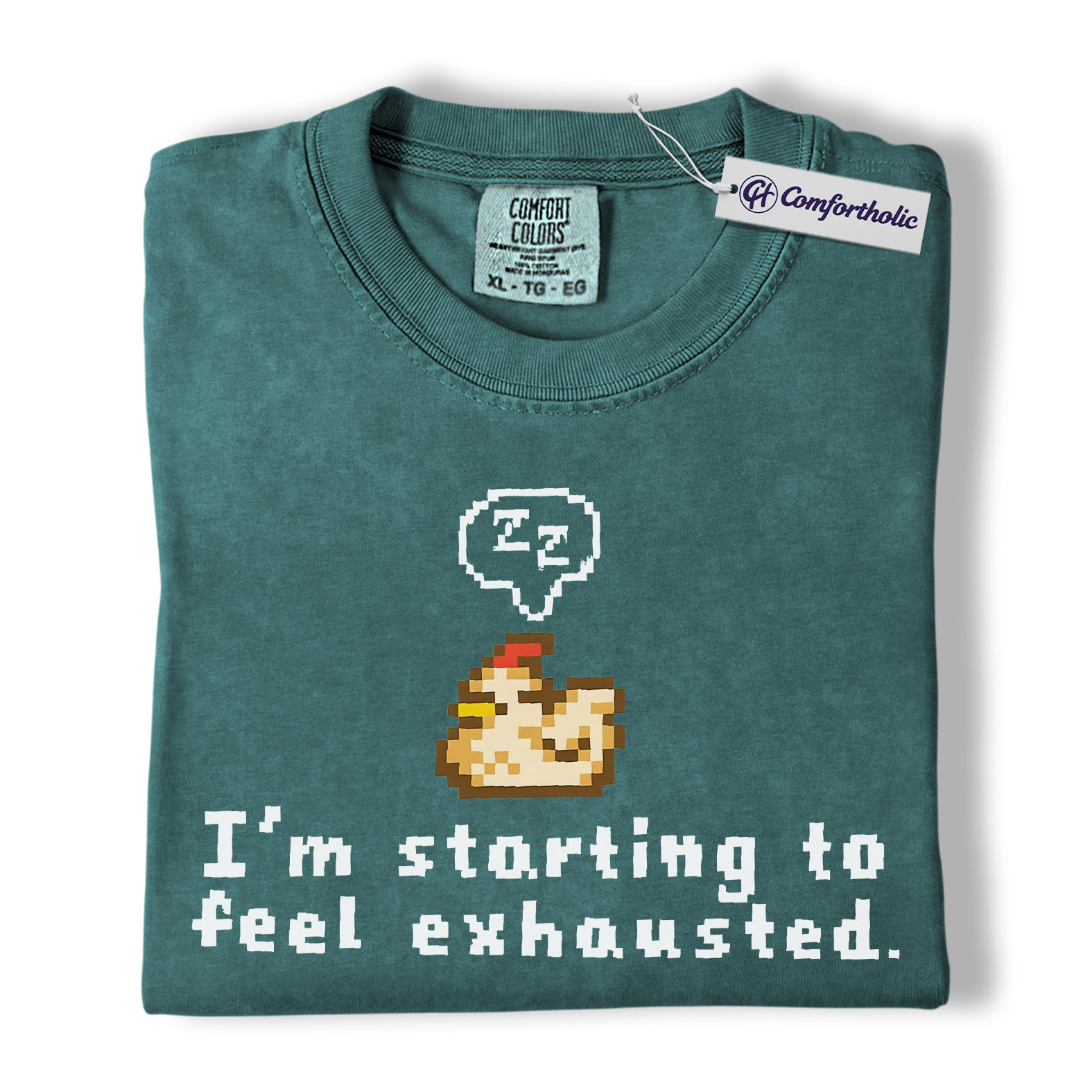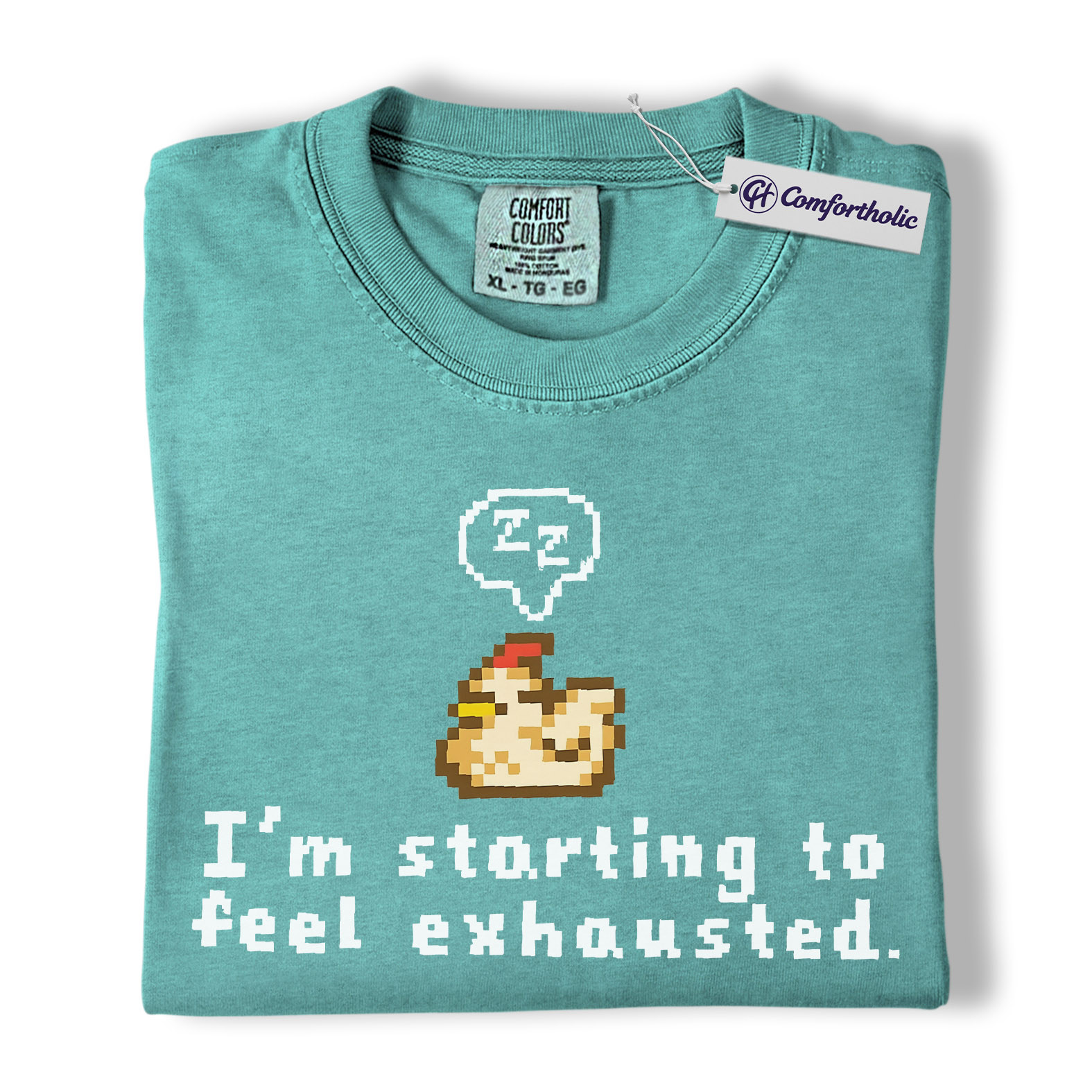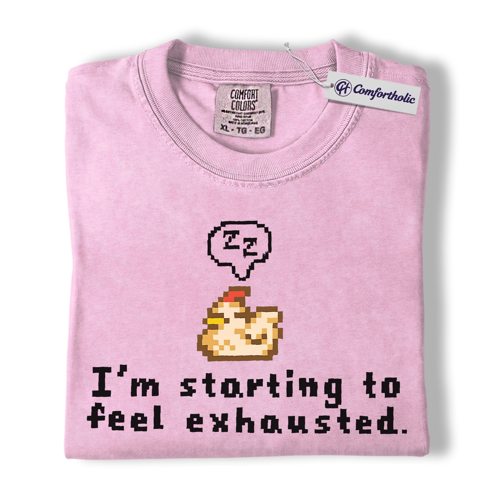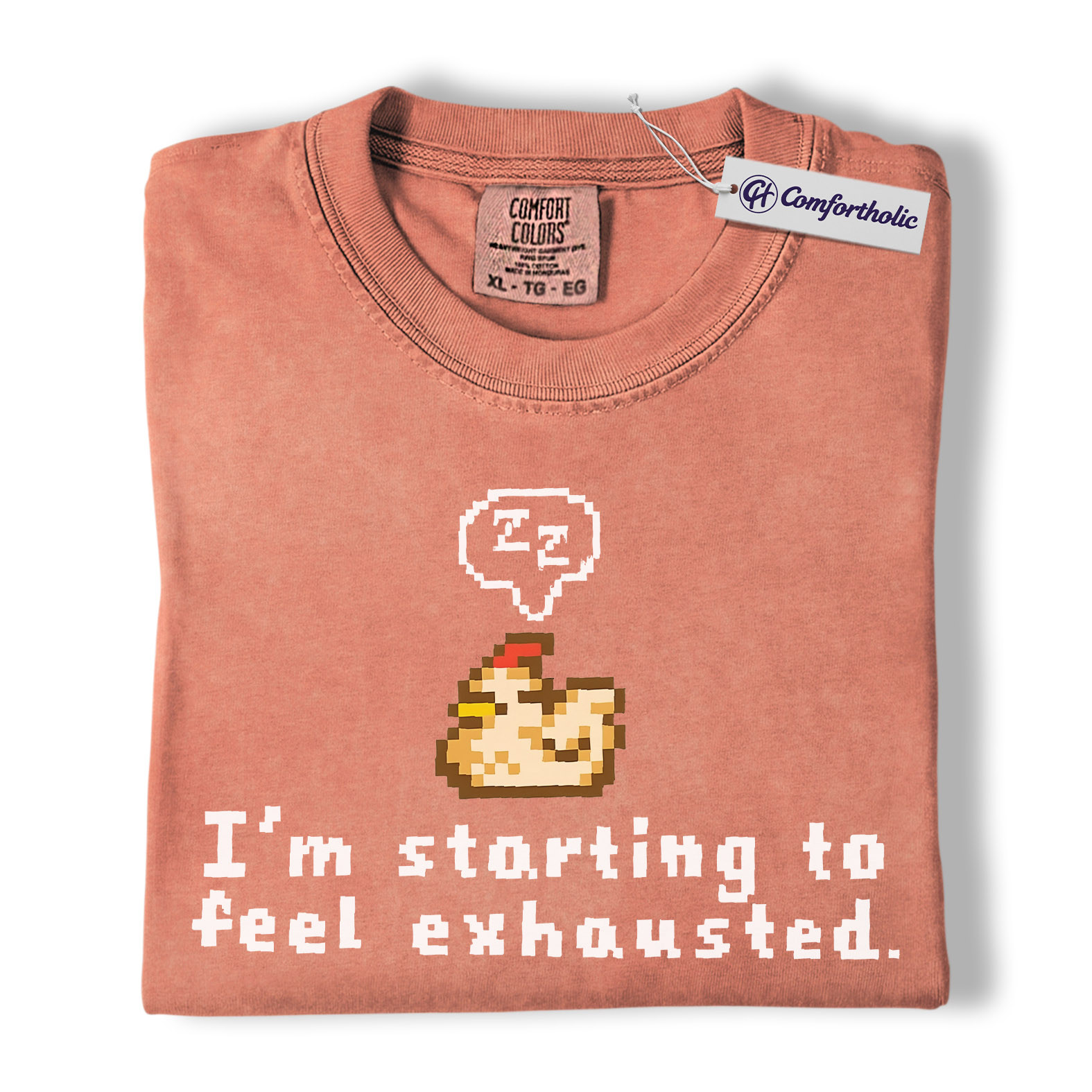 Funny Tired Chicken Shirt, Retro Pixel Art Graphic Tee, Exhausted Mood T-Shirt, Gift for Gamers & Chicken Lovers, Comfort Colors Shirt