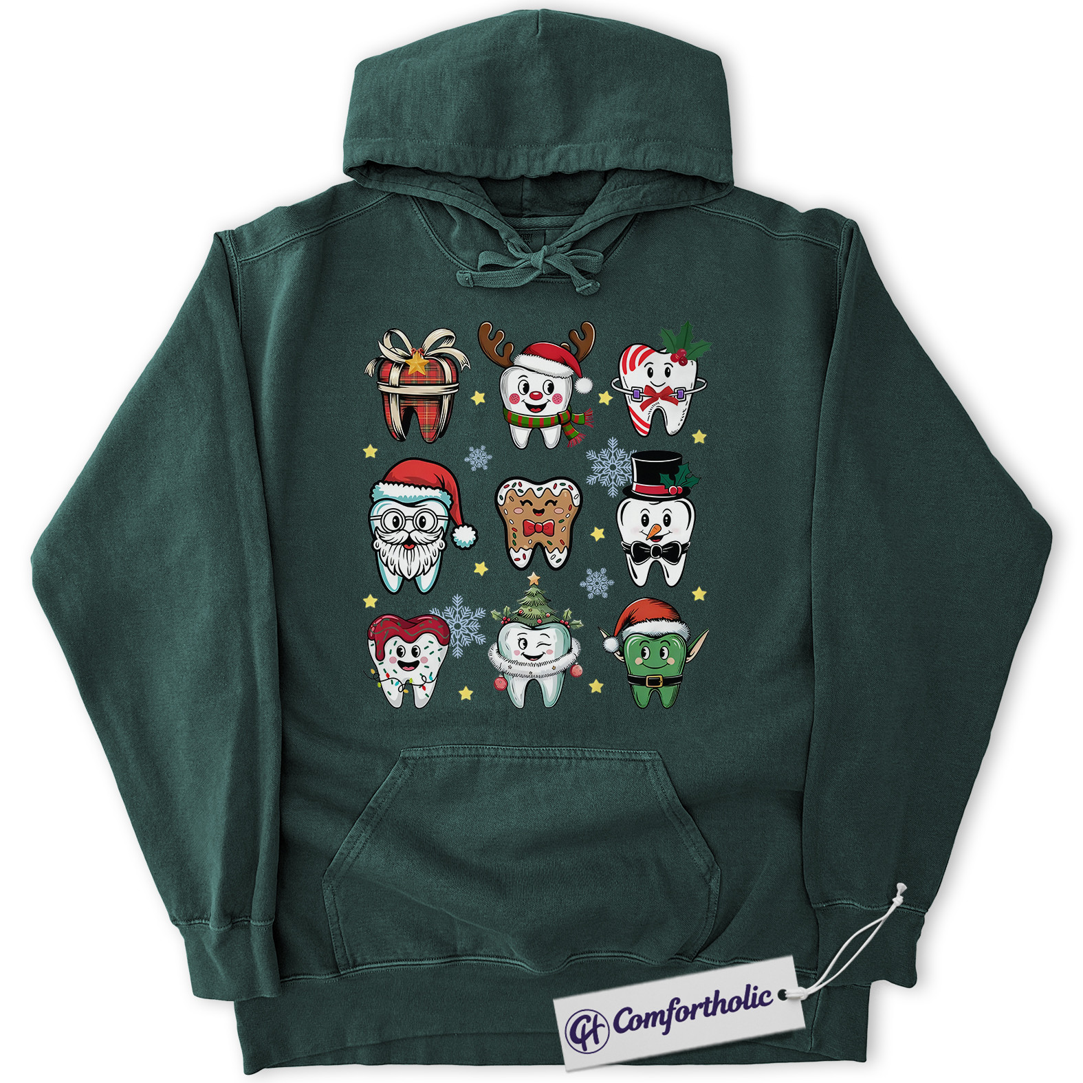 Funny Tooth Christmas Hoodie, Cute Dentist Holiday Hoodie, Dental Hygienist Graphic Pullover, Christmas Gift for Dental Assistant, Christmas Comfort Colors Hoodie