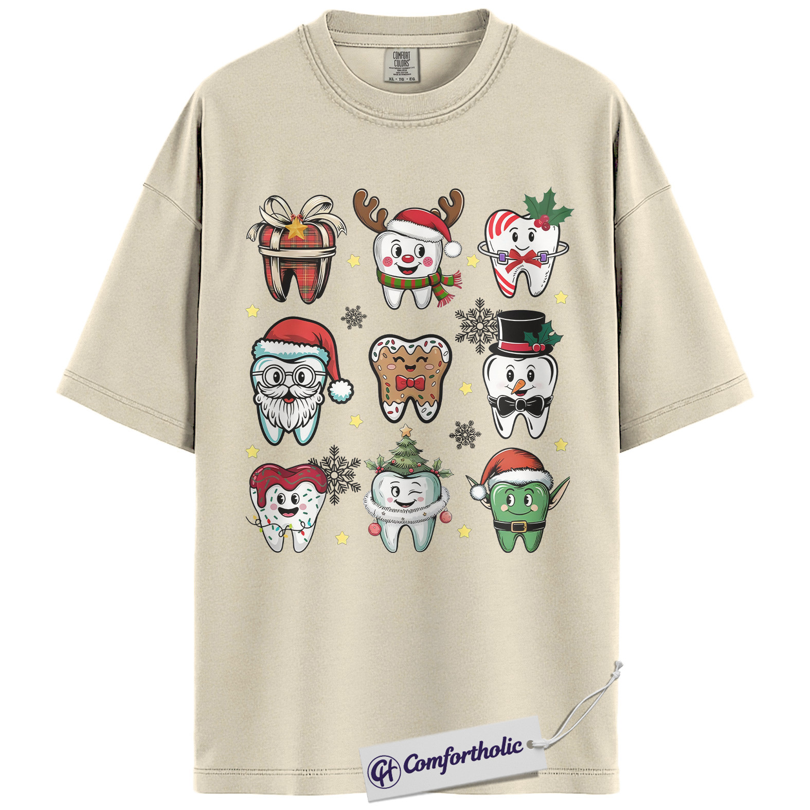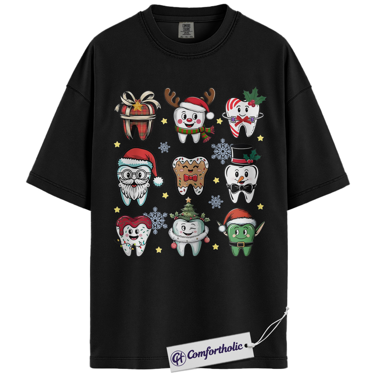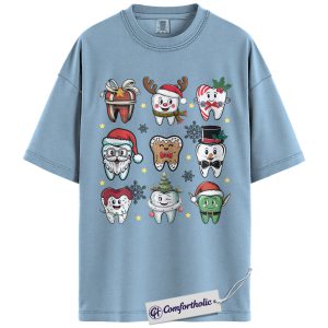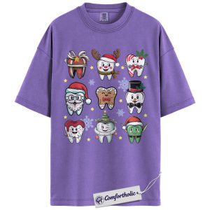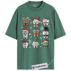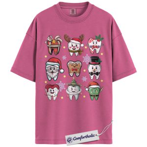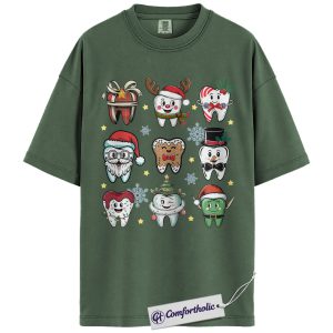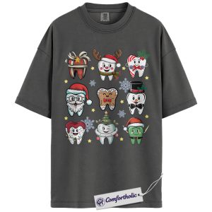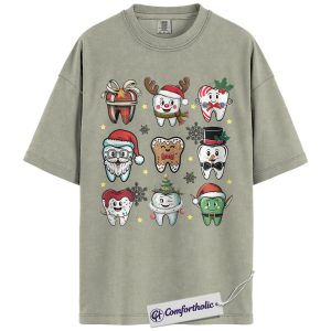 Funny Tooth Christmas Shirt, Cute Dentist Holiday T-Shirt, Dental Hygienist Graphic Tee, Christmas Gift for Dental Assistant, Christmas Comfort Colors Shirt
