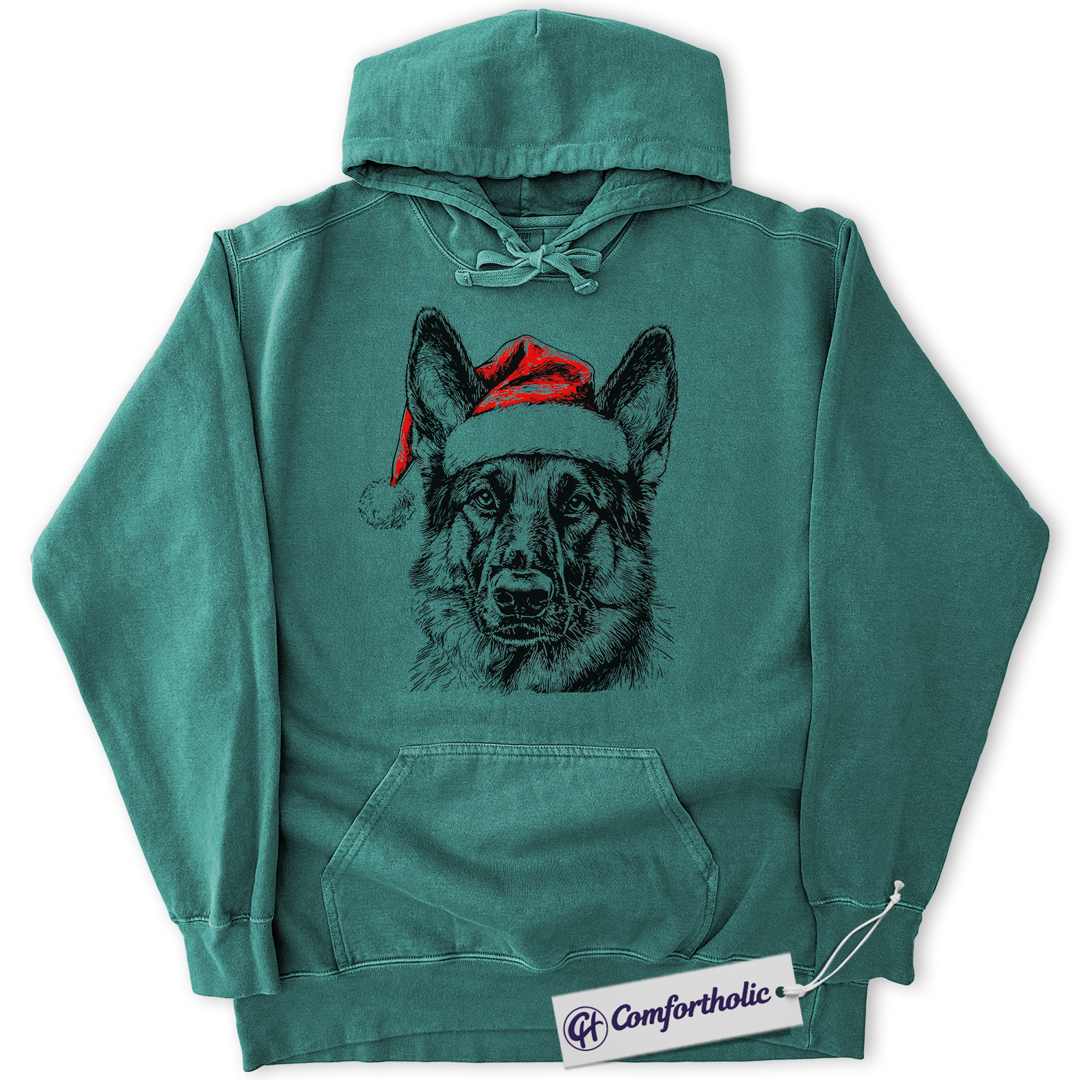 German Shepherd Christmas Hoodie, Funny Holiday Pet Lover Hoodie, Santa Dog Graphic Pullover, Cute Gift for Dog Lovers, Christmas Comfort Colors Hoodie