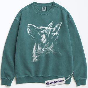 German Shepherd Sweatshirt, Realistic Dog Lover Pullover, Faithful Pet Memorial Crewneck, Animal Art Graphic Gift for Dog Owners, Comfort Colors Sweatshirt