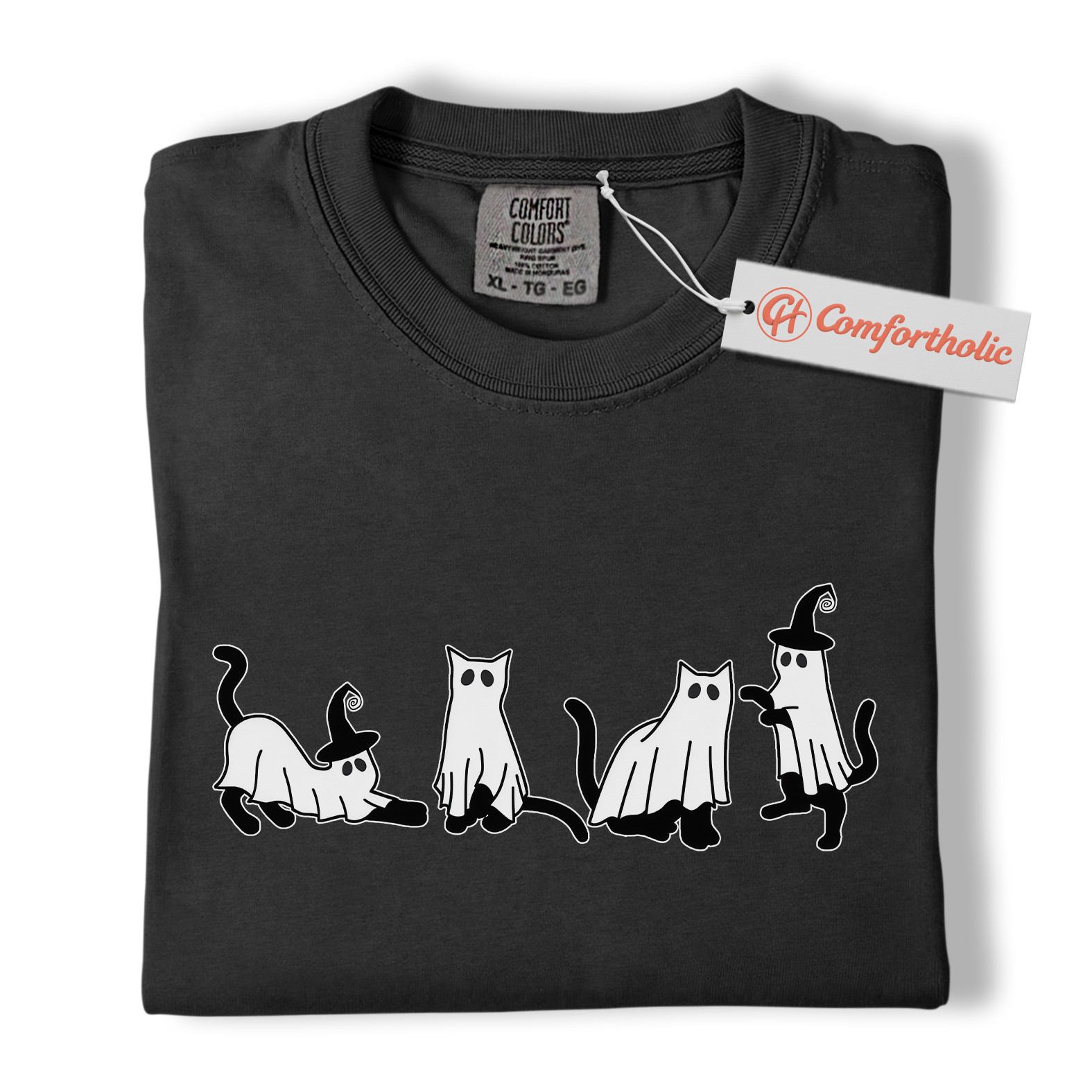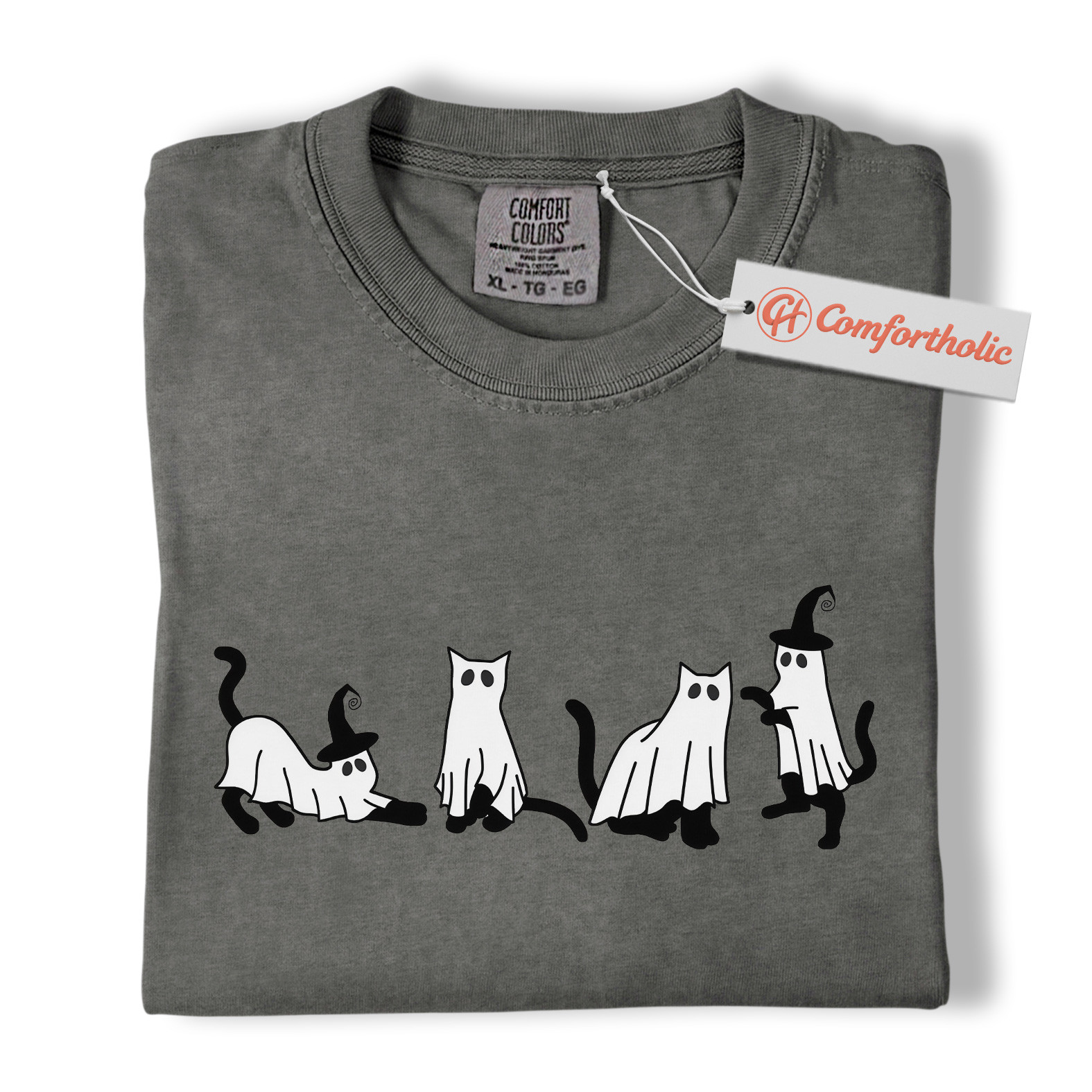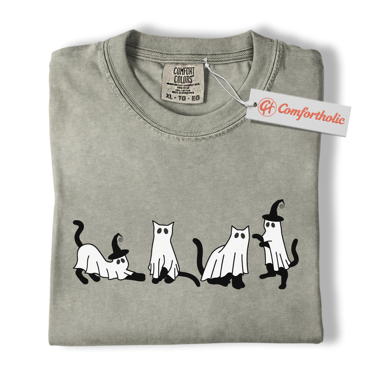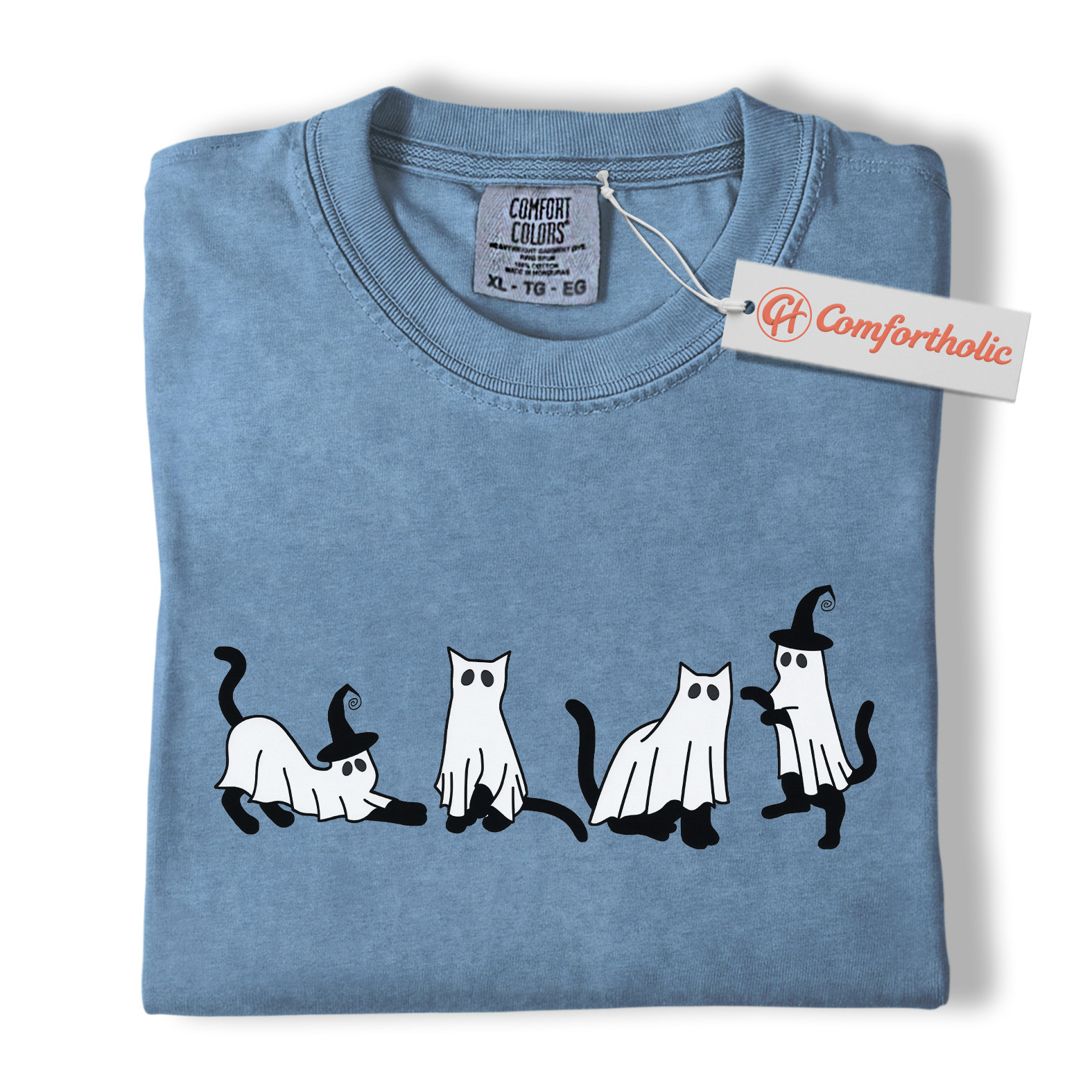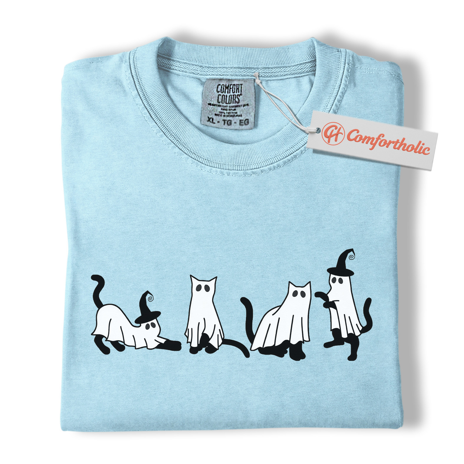 Ghost Cat Shirt, Cute Halloween Kitty T-Shirt, Spooky Black Cat Graphic Tee, Fall Costume Gift for Cat Lovers, Funny Comfort Colors Shirt