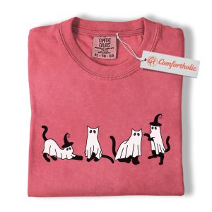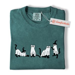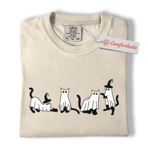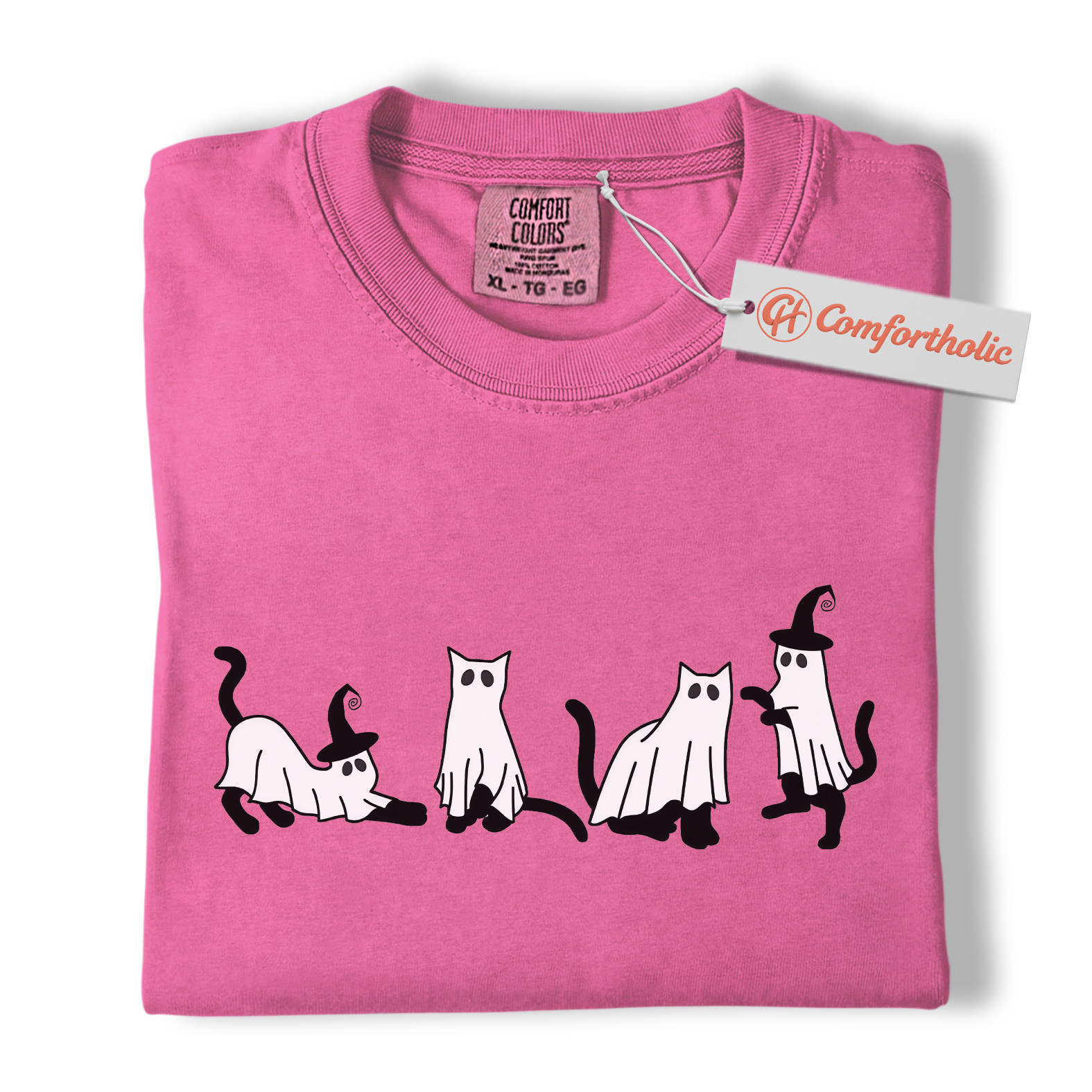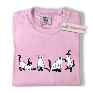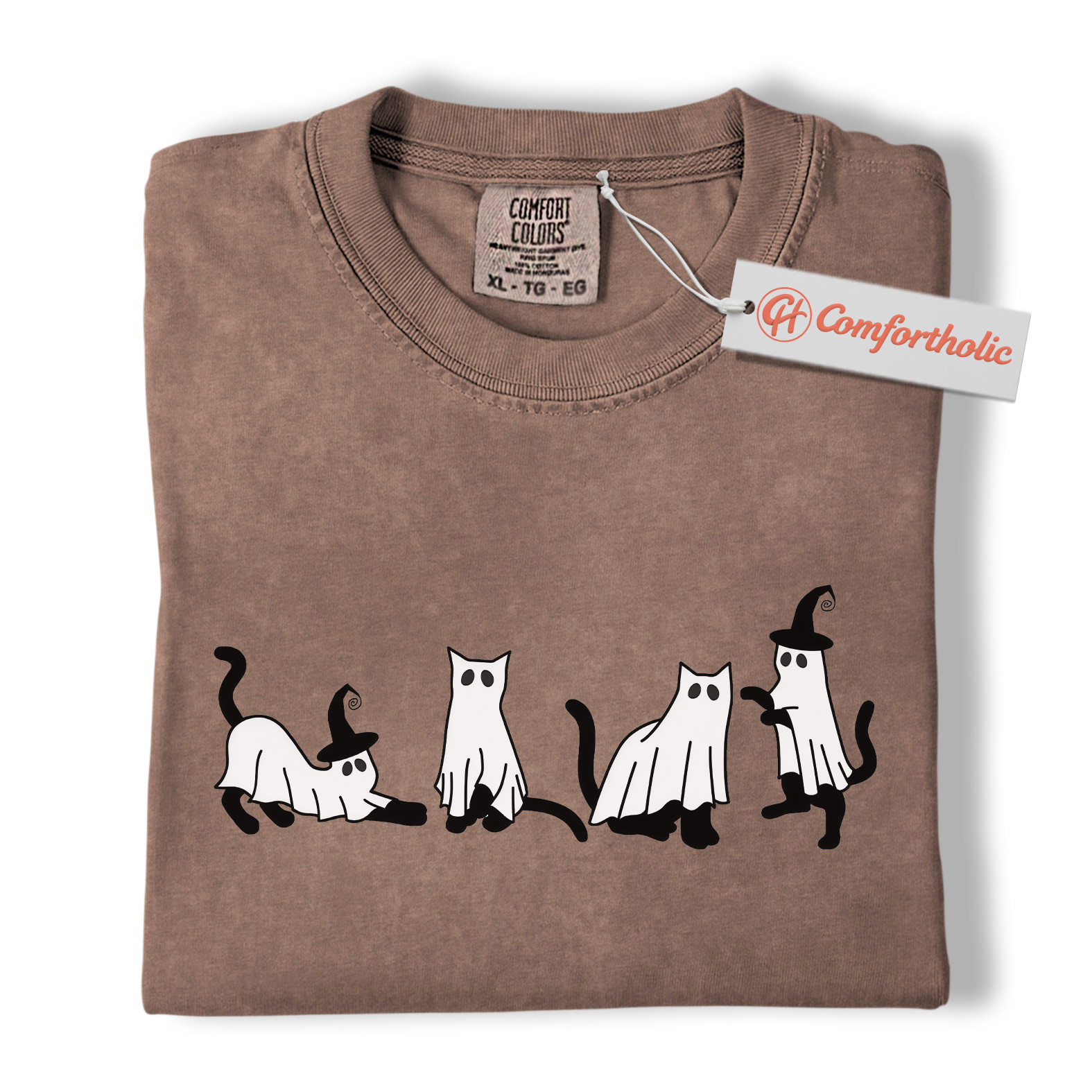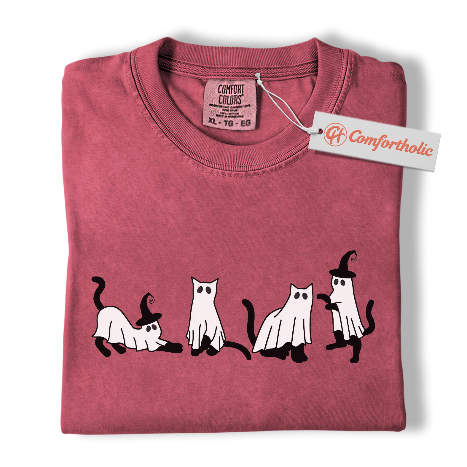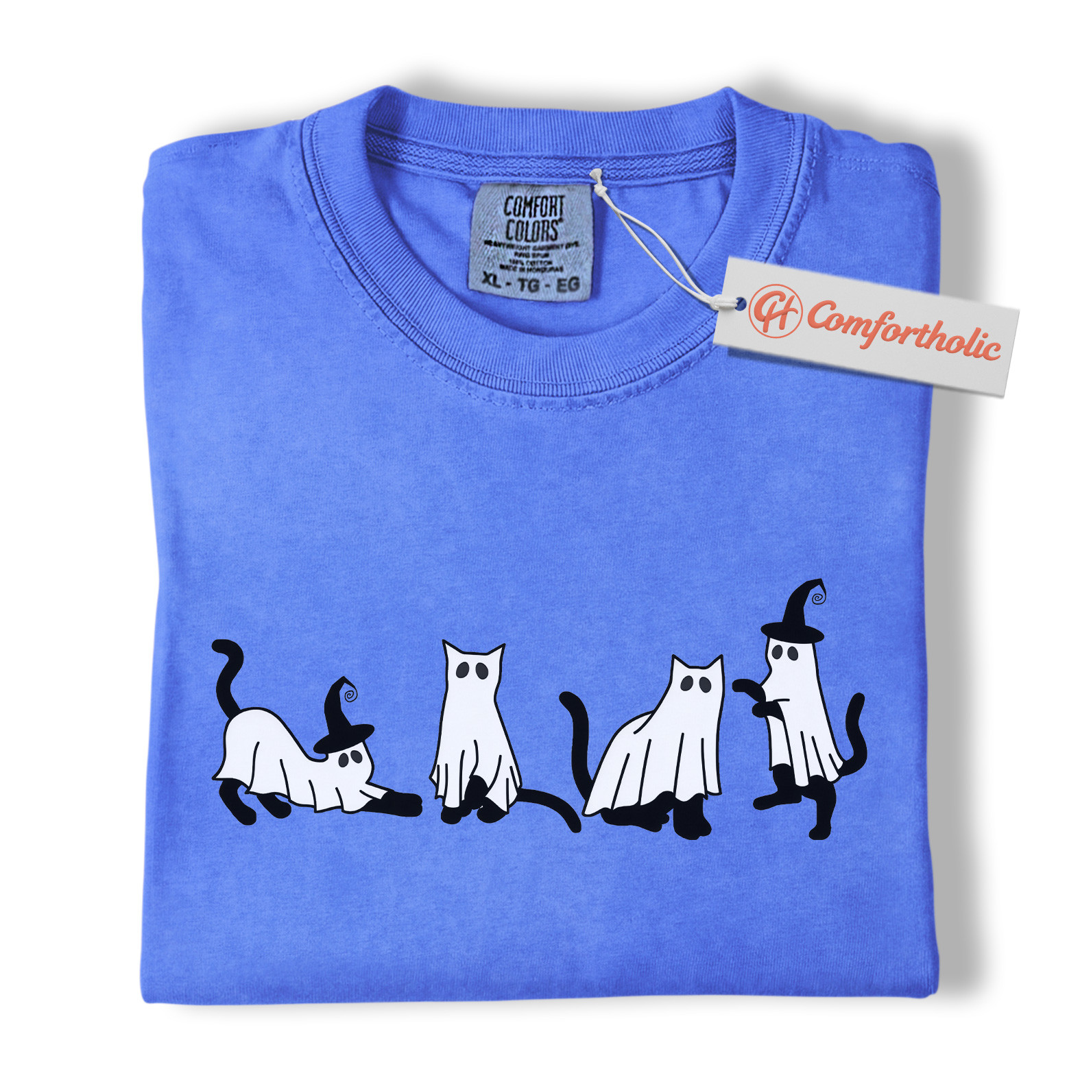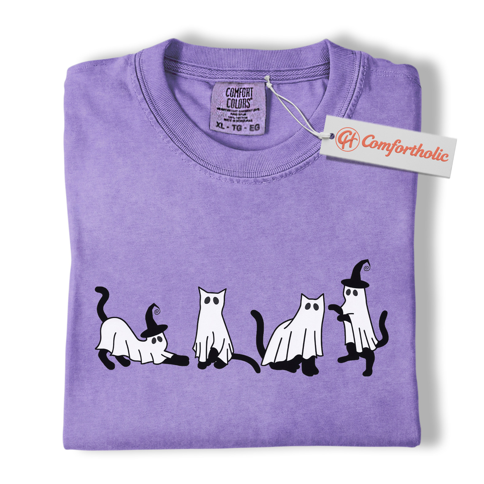 Ghost Cat Shirt, Cute Halloween Kitty T-Shirt, Spooky Black Cat Graphic Tee, Fall Costume Gift for Cat Lovers, Funny Comfort Colors Shirt
