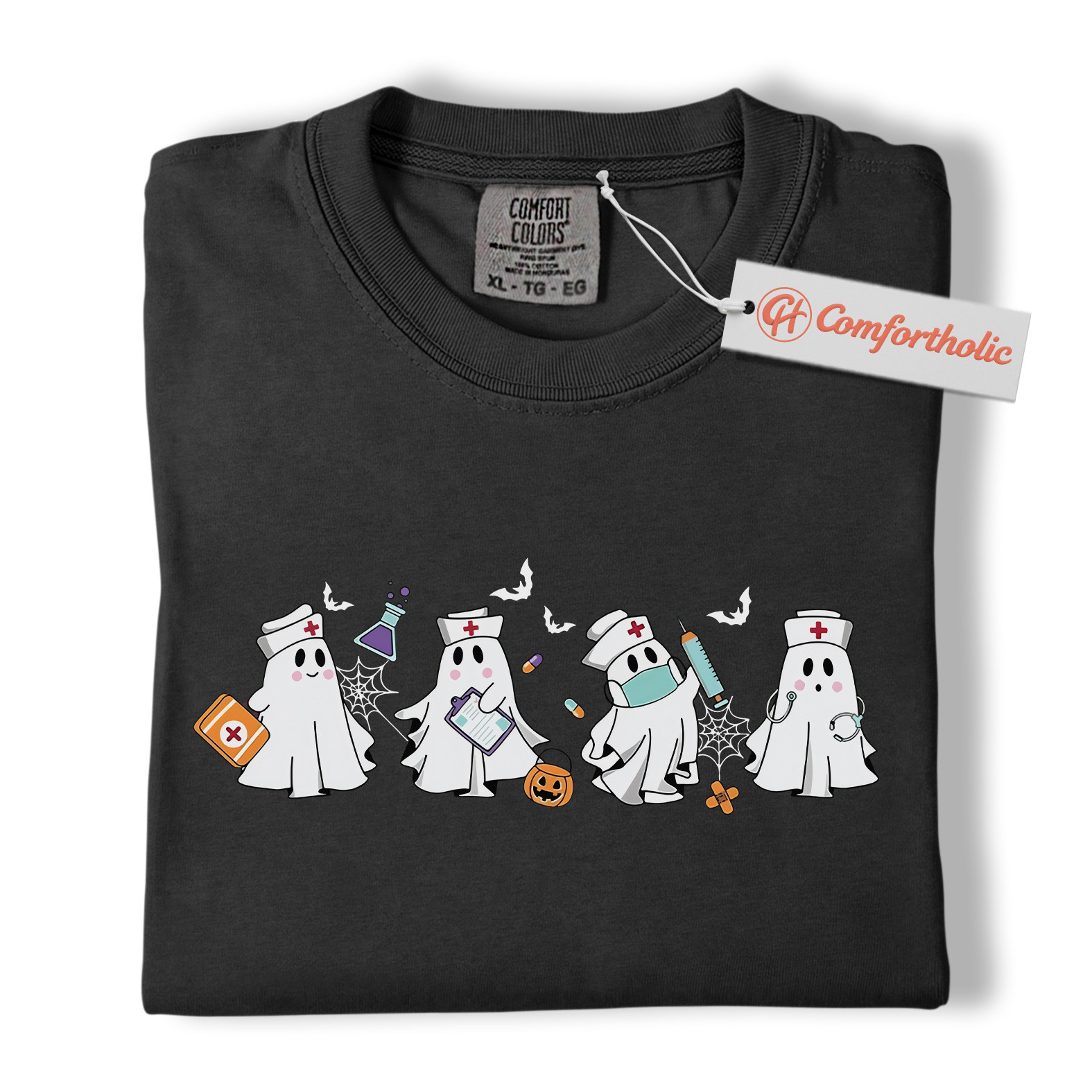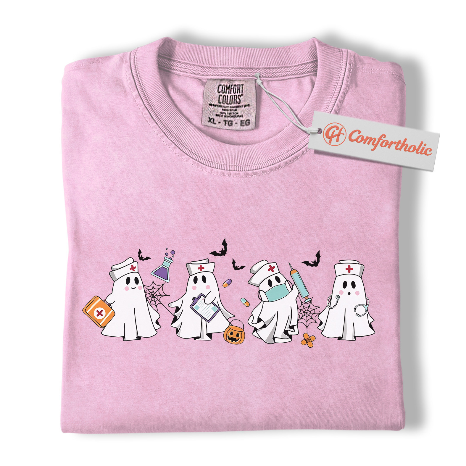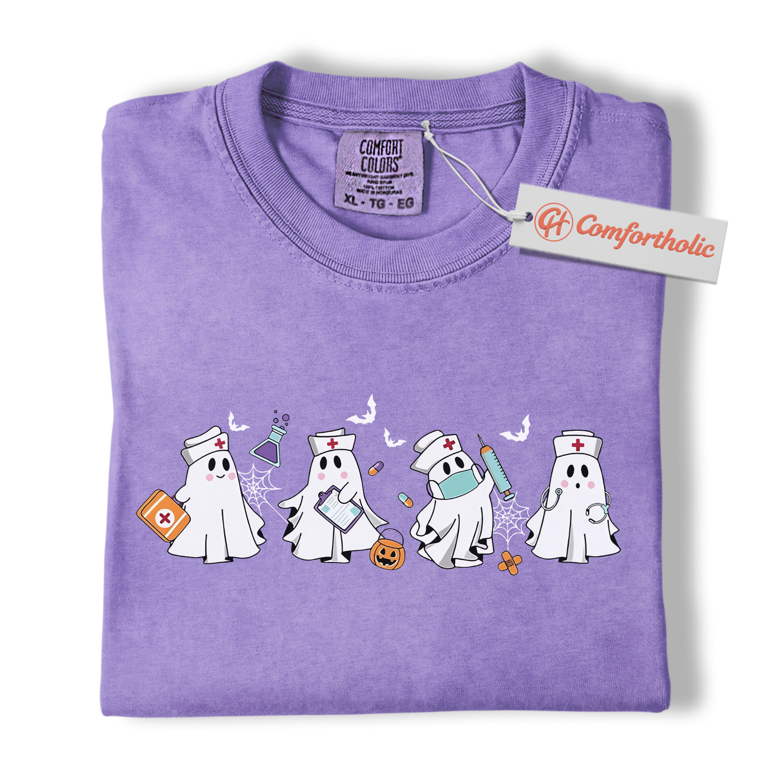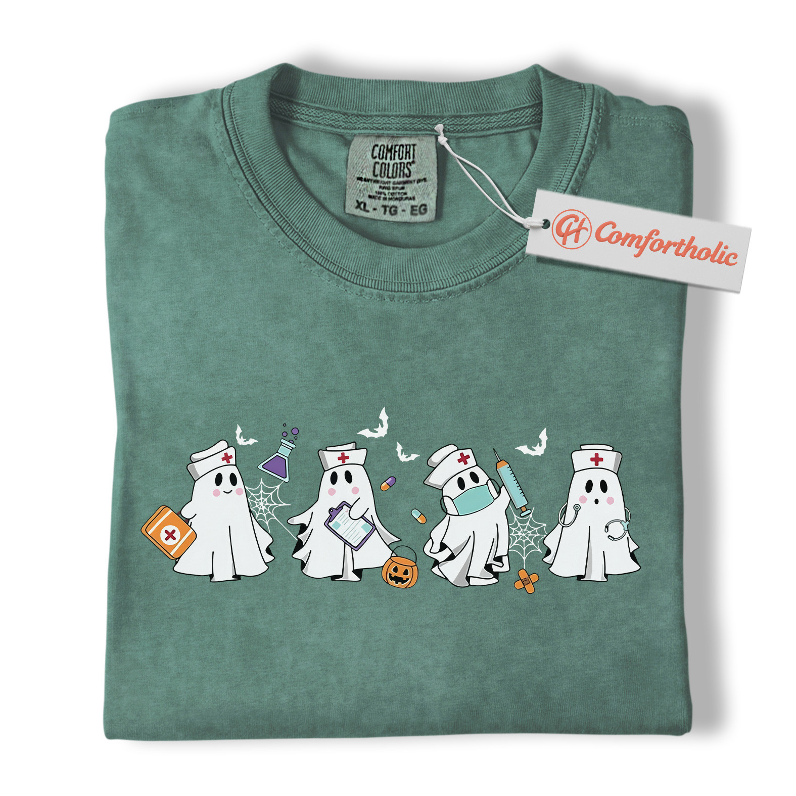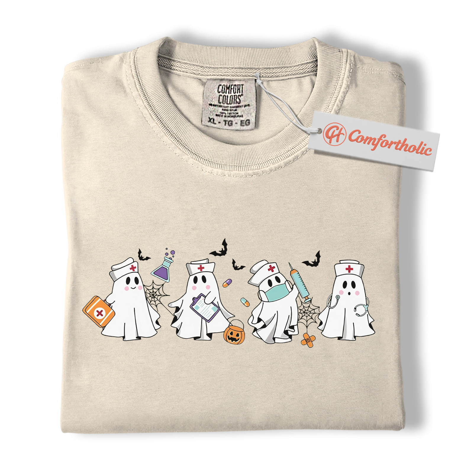 Ghost Nurse Shirt, Cute Halloween Healthcare Worker T-Shirt, Funny Medical Staff Spooky Graphic Tee, Fall Gift for Nurses, RN Comfort Colors Shirt