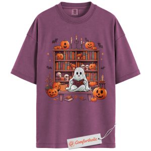 Ghost Reading Shirt, Book Lover T-Shirt, Spooky Library Graphic Tee, Cute Fall Reader Aesthetic Outfit, Halloween Comfort Colors Shirt