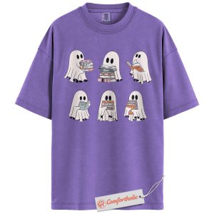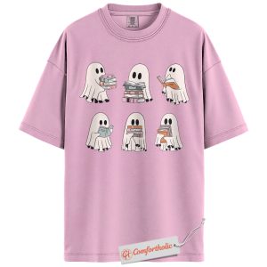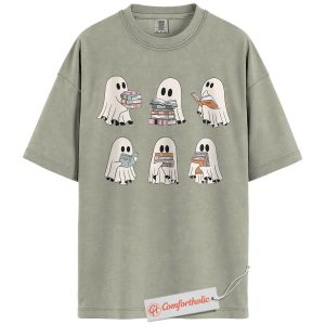 Ghost Reading Shirt, Cute Halloween Book Lover T-Shirt, Spooky Literary Graphic Tee, Fall Gift for Readers & Bibliophiles, Halloween Comfort Colors Shirt