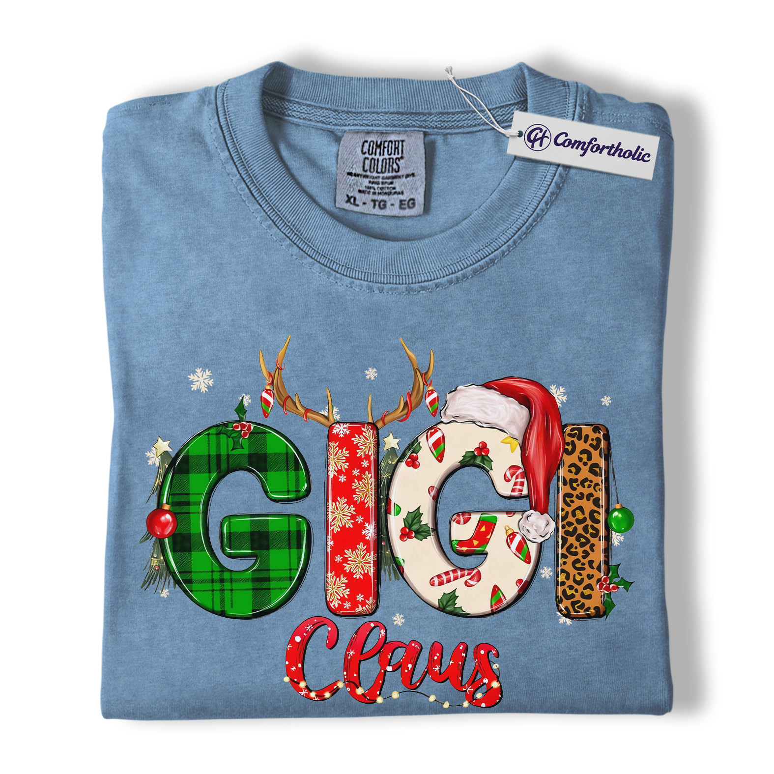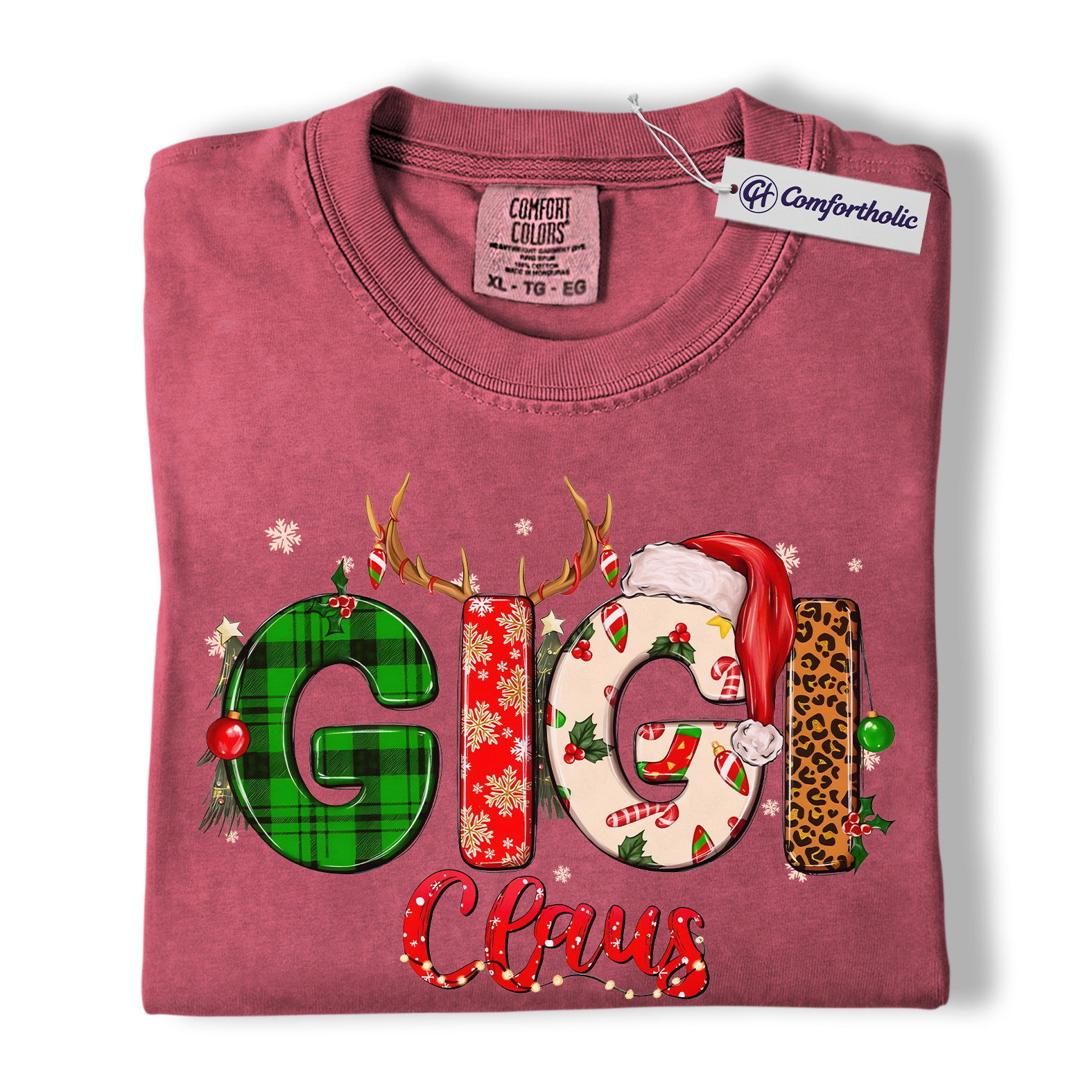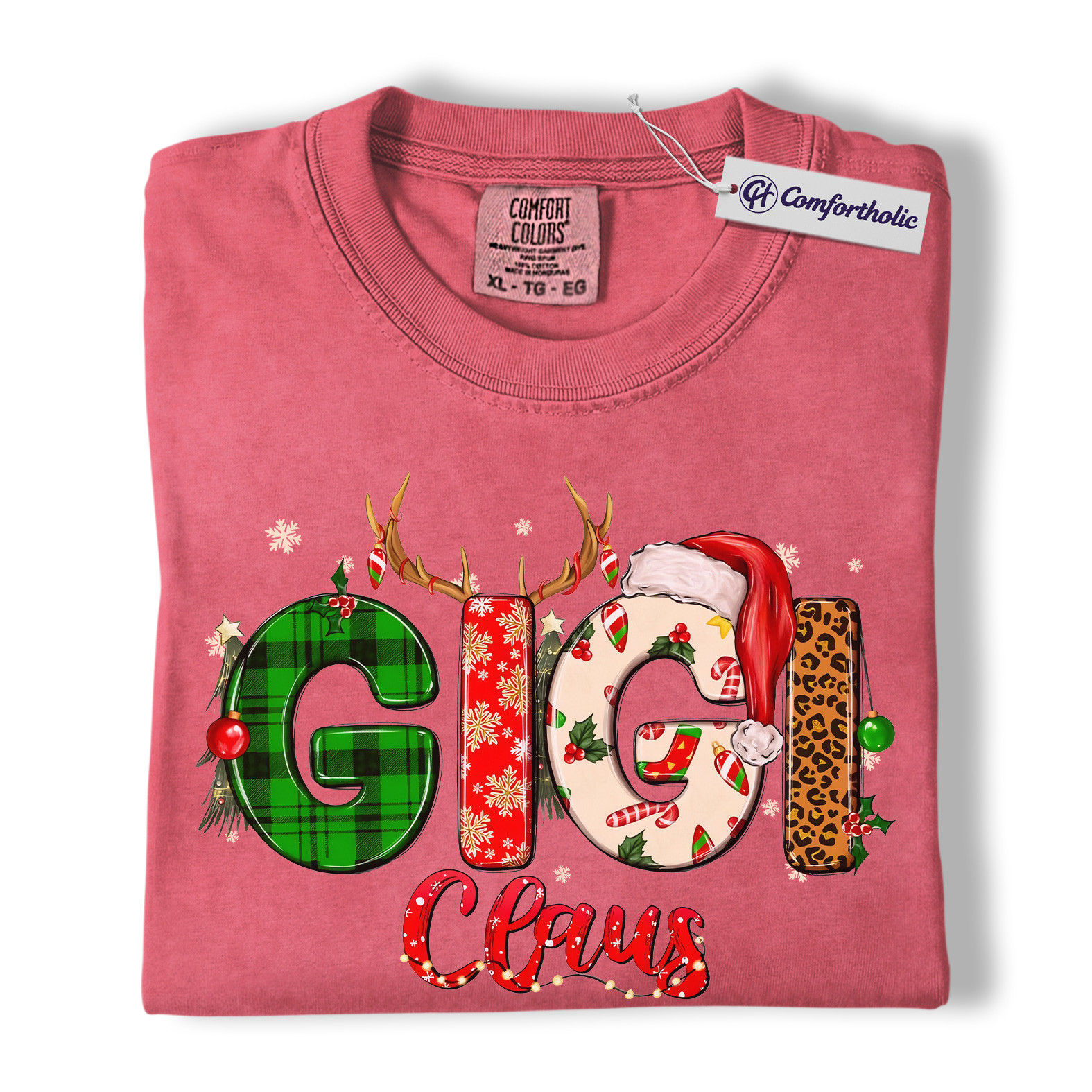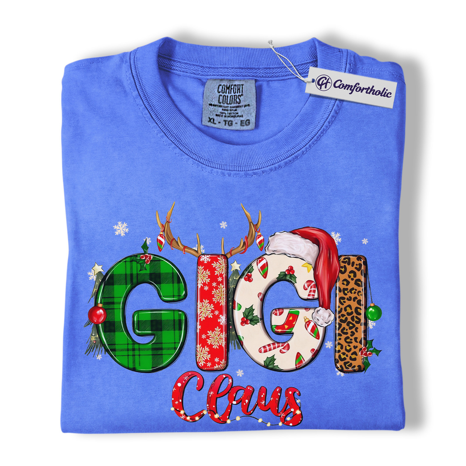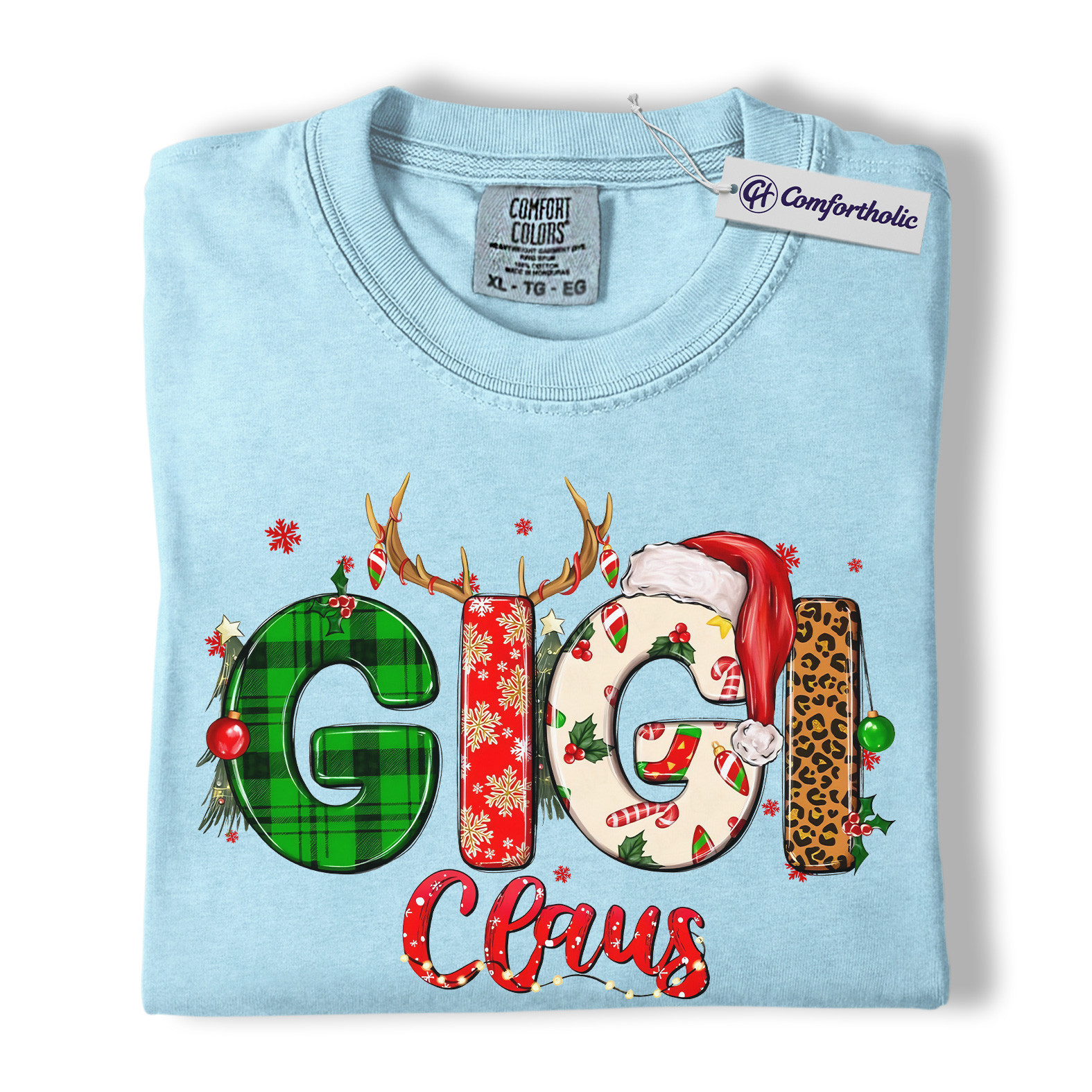 Gigi Claus Shirt, Christmas Grandma T-Shirt, Festive Holiday Family Graphic Tee, Cute Christmas Gift for Gigi, Christmas Comfort Colors Shirt