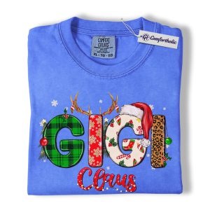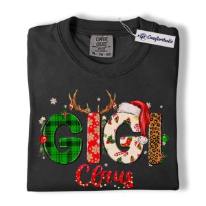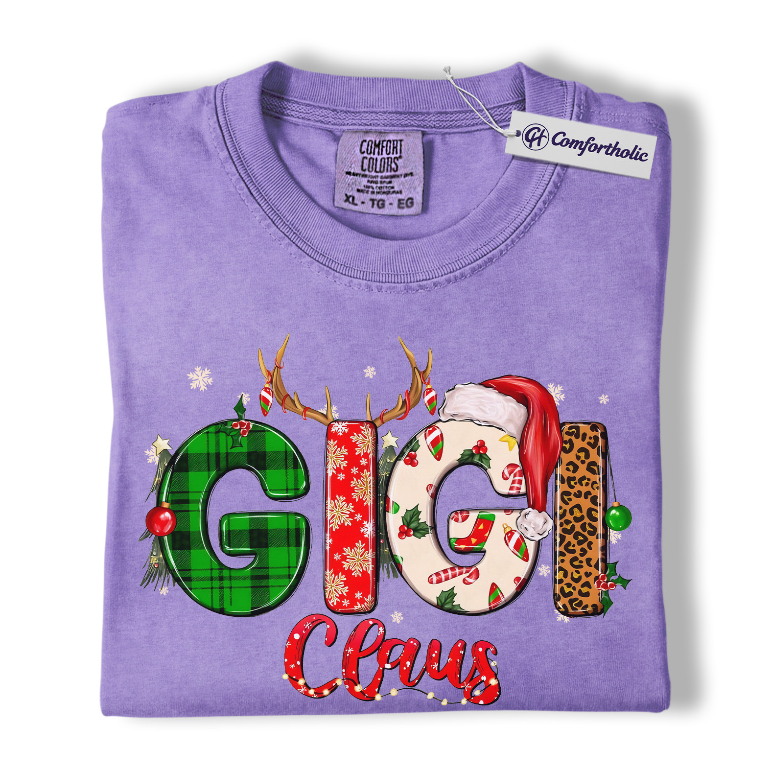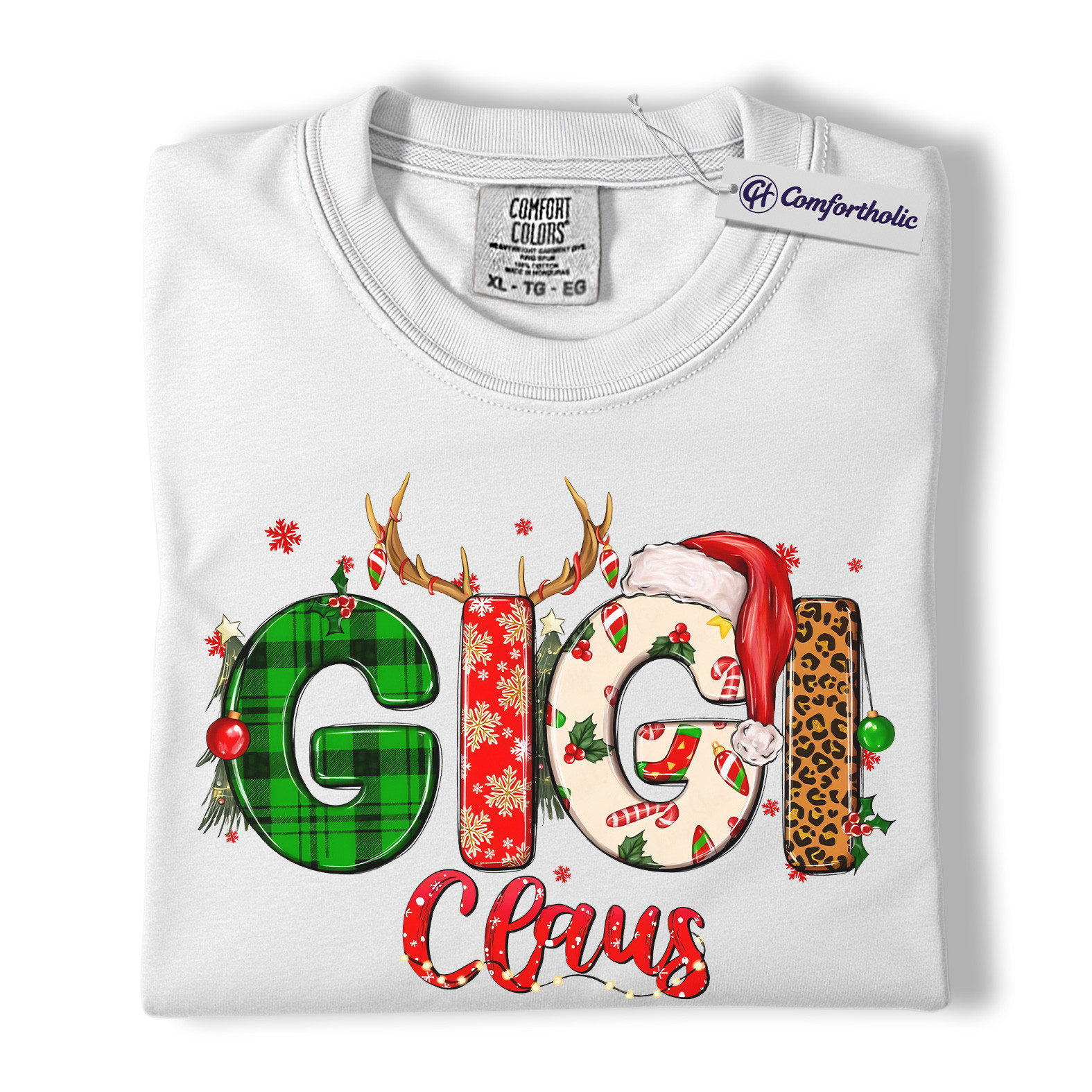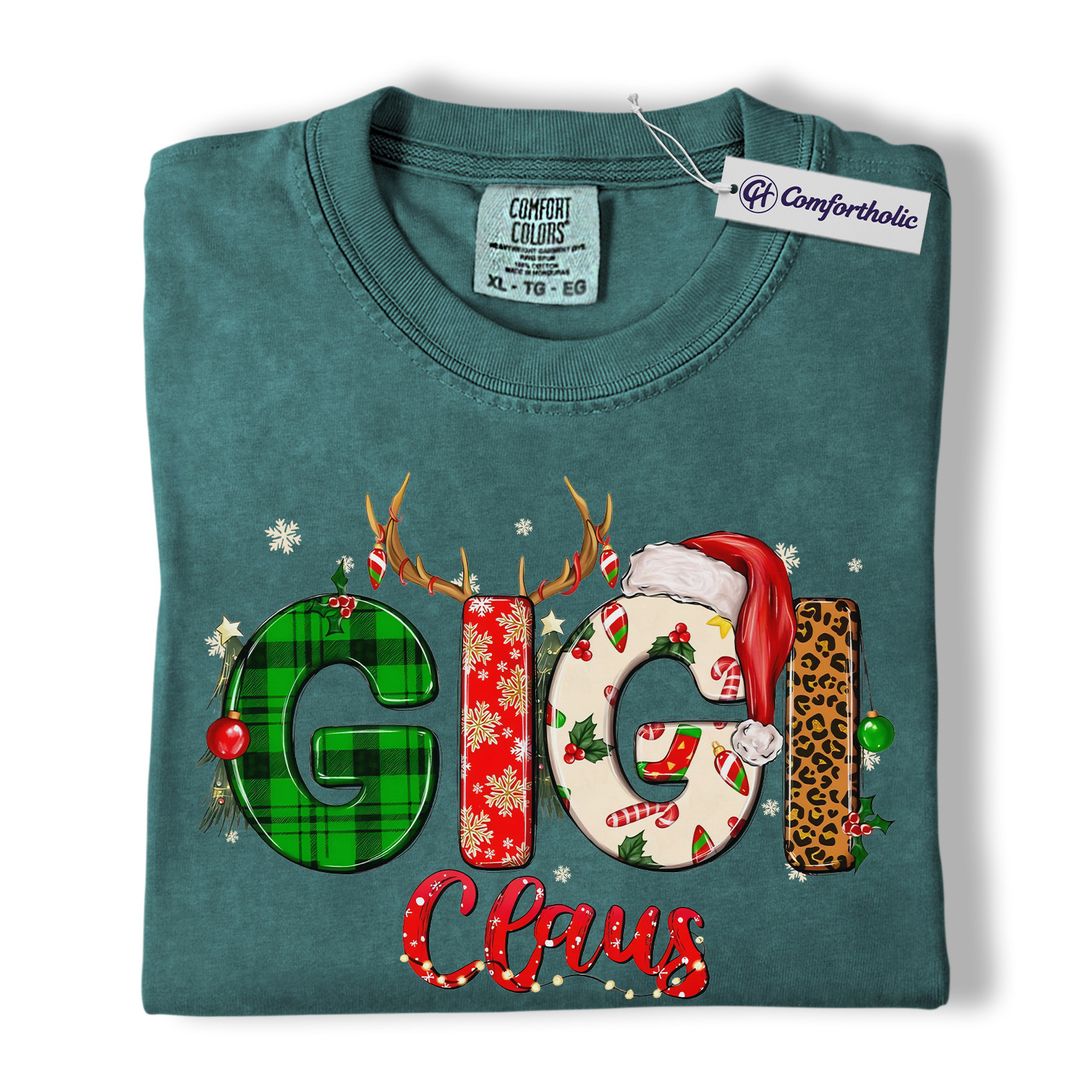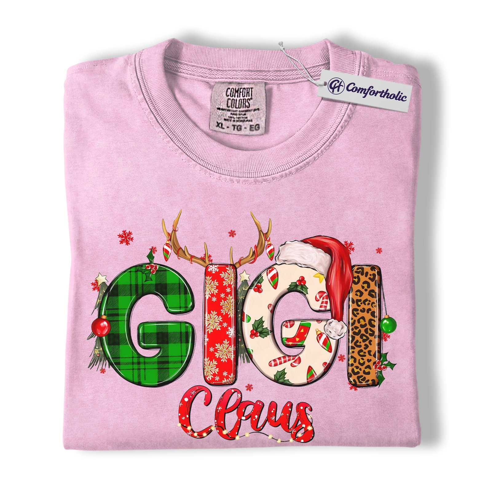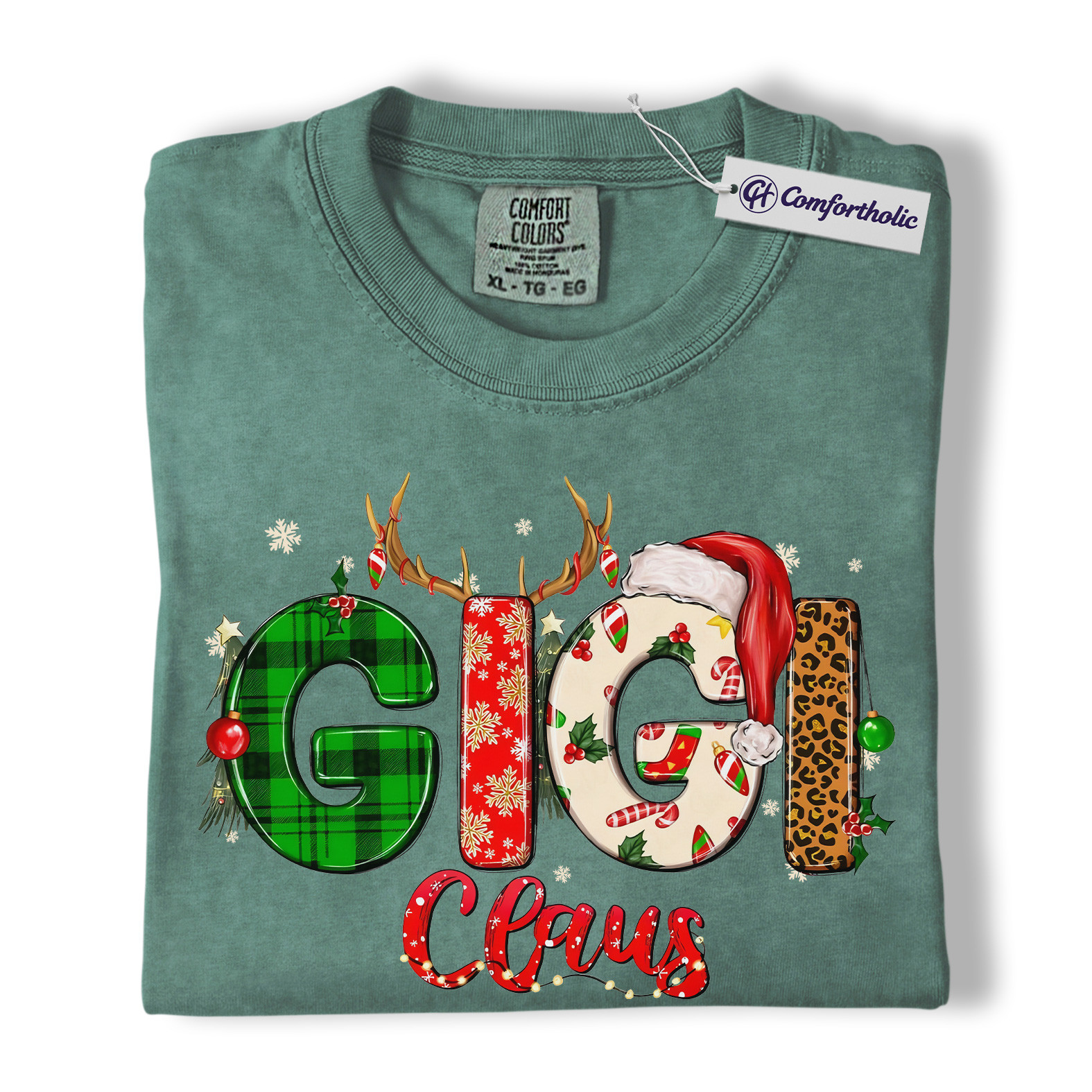 Gigi Claus Shirt, Christmas Grandma T-Shirt, Festive Holiday Family Graphic Tee, Cute Christmas Gift for Gigi, Christmas Comfort Colors Shirt