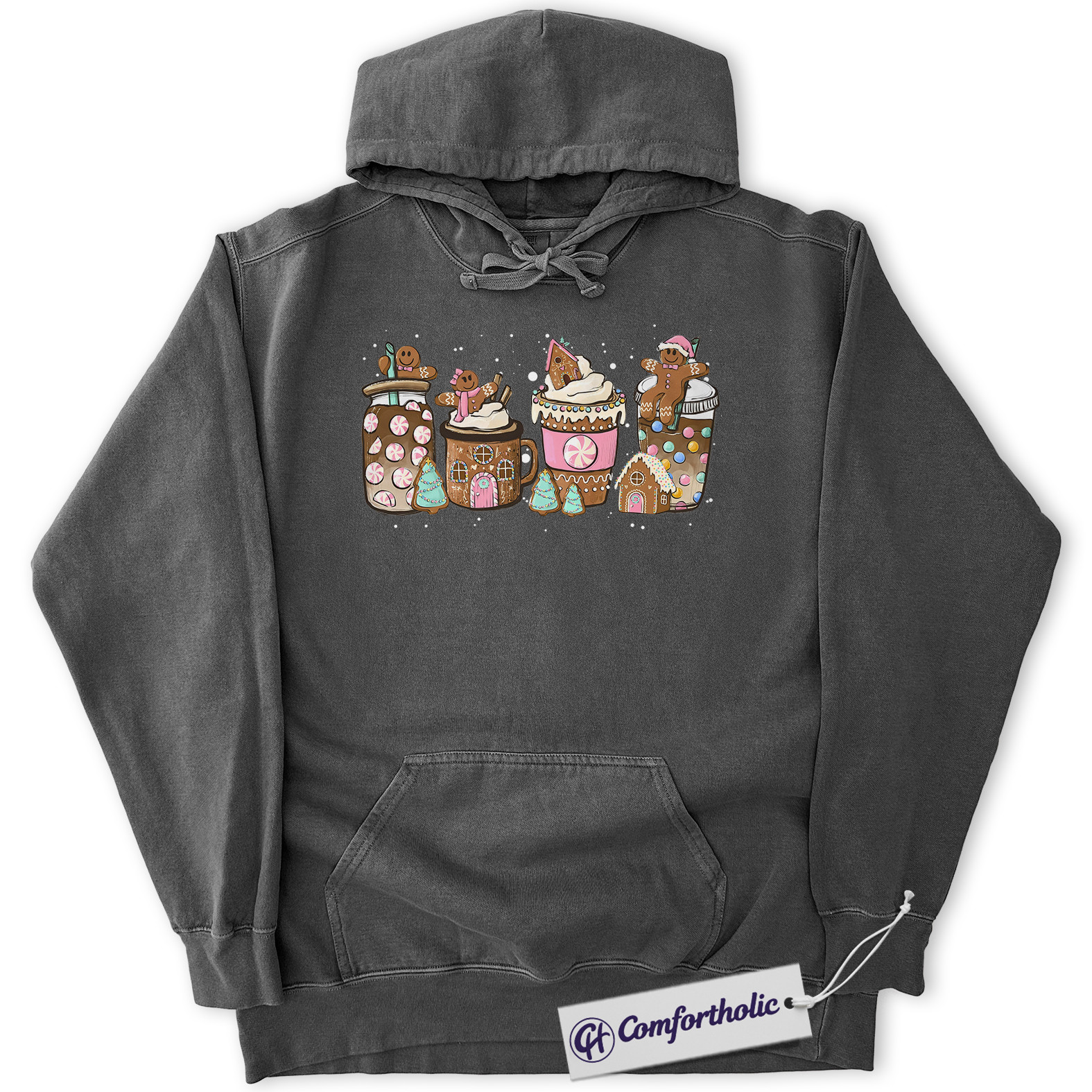 Gingerbread Coffee Christmas Hoodie, Hot Cocoa Holiday Hoodie, Cute Peppermint Mug Graphic Pullover, Christmas Gift for Coffee Lovers, Cozy Winter Drink Comfort Colors Hoodie