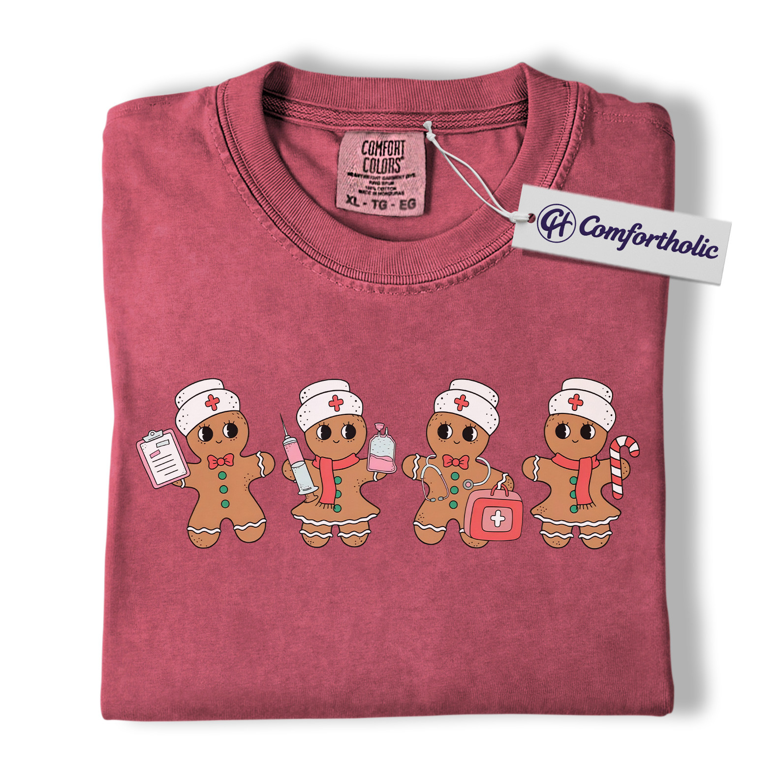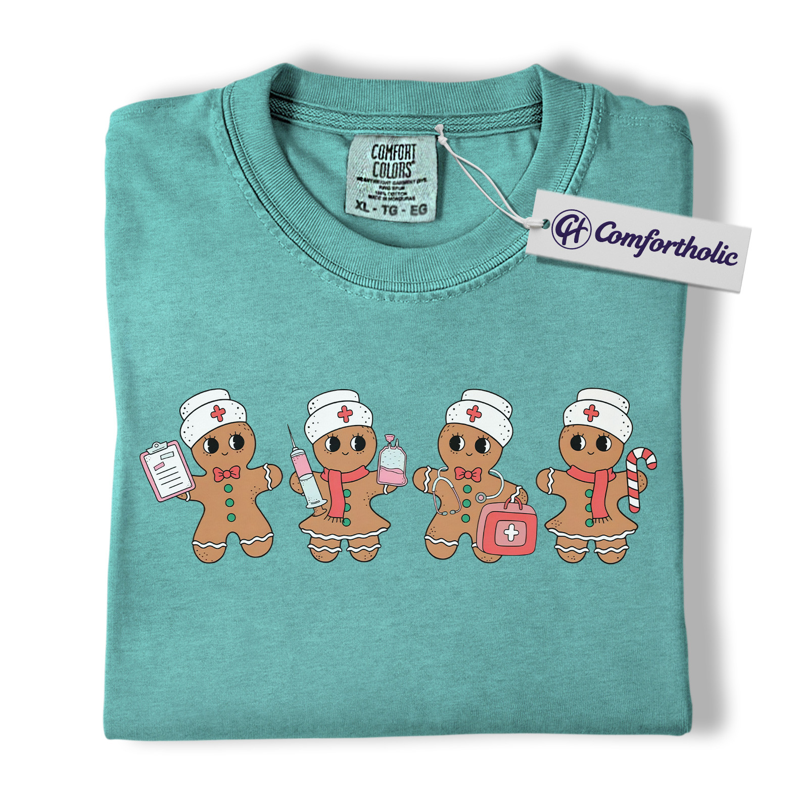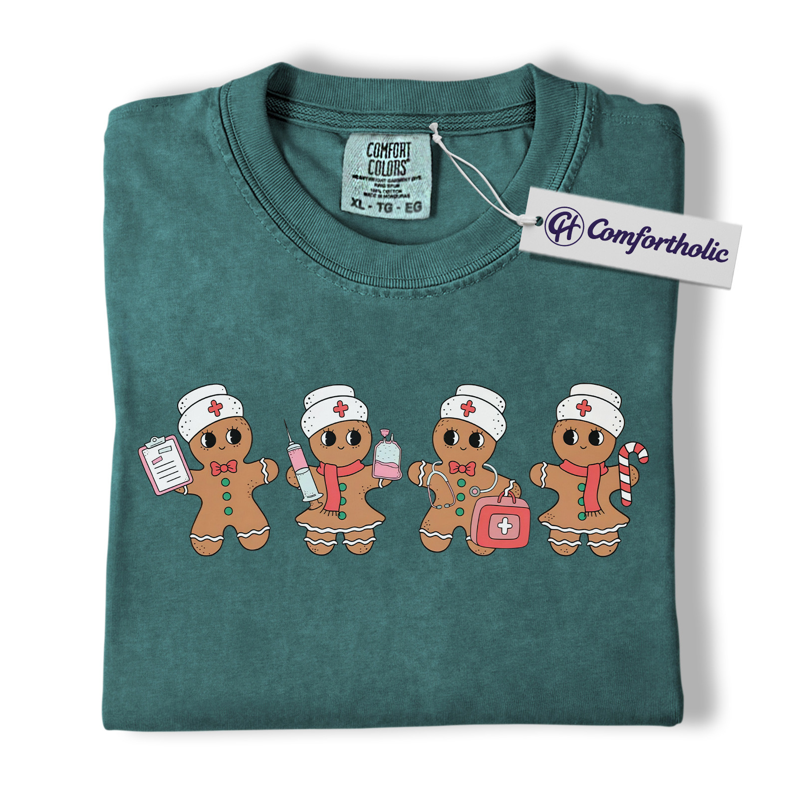 Gingerbread Nurse Christmas Shirt, Funny Medical Holiday T-Shirt, Cute Healthcare Worker Graphic Tee, Festive Gift for Nurses, Christmas Comfort Colors Shirt