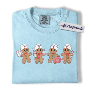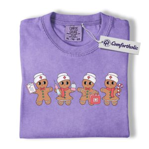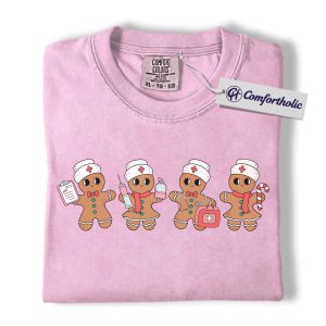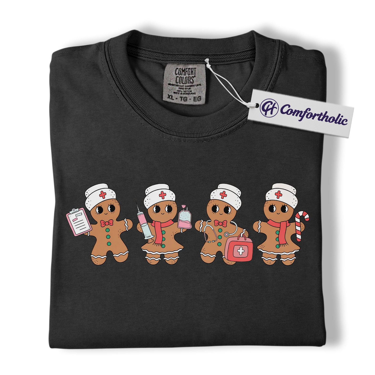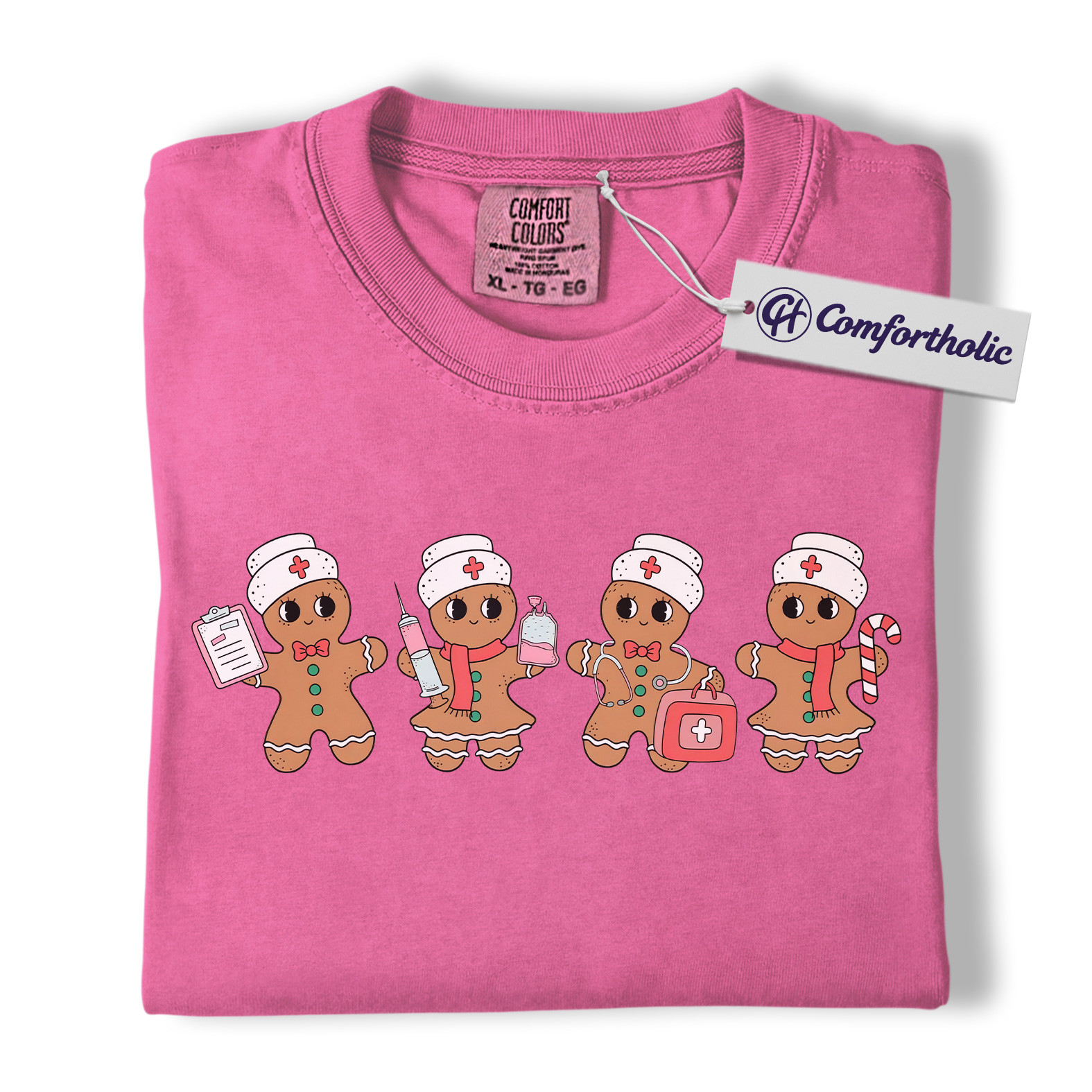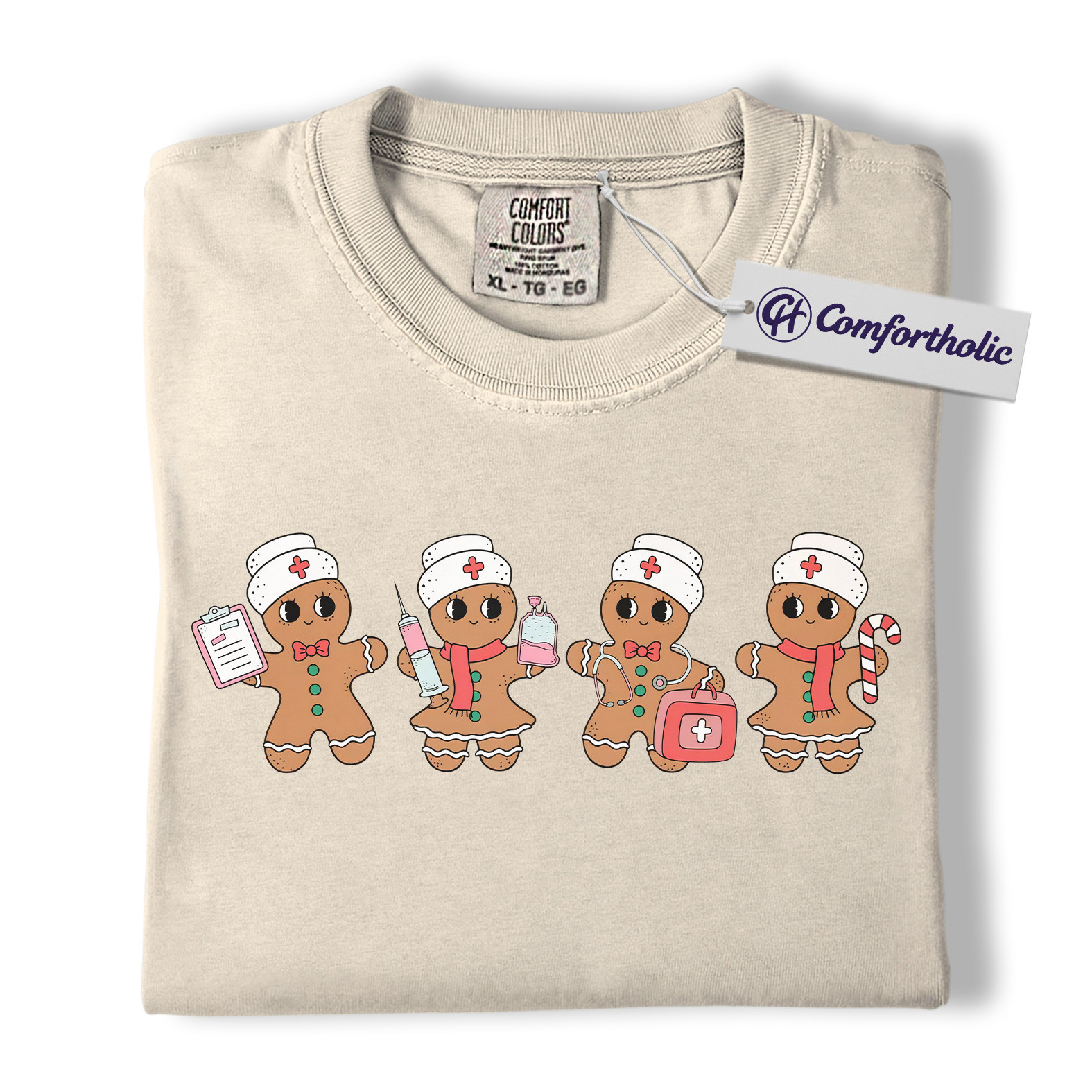 Gingerbread Nurse Christmas Shirt, Funny Medical Holiday T-Shirt, Cute Healthcare Worker Graphic Tee, Festive Gift for Nurses, Christmas Comfort Colors Shirt