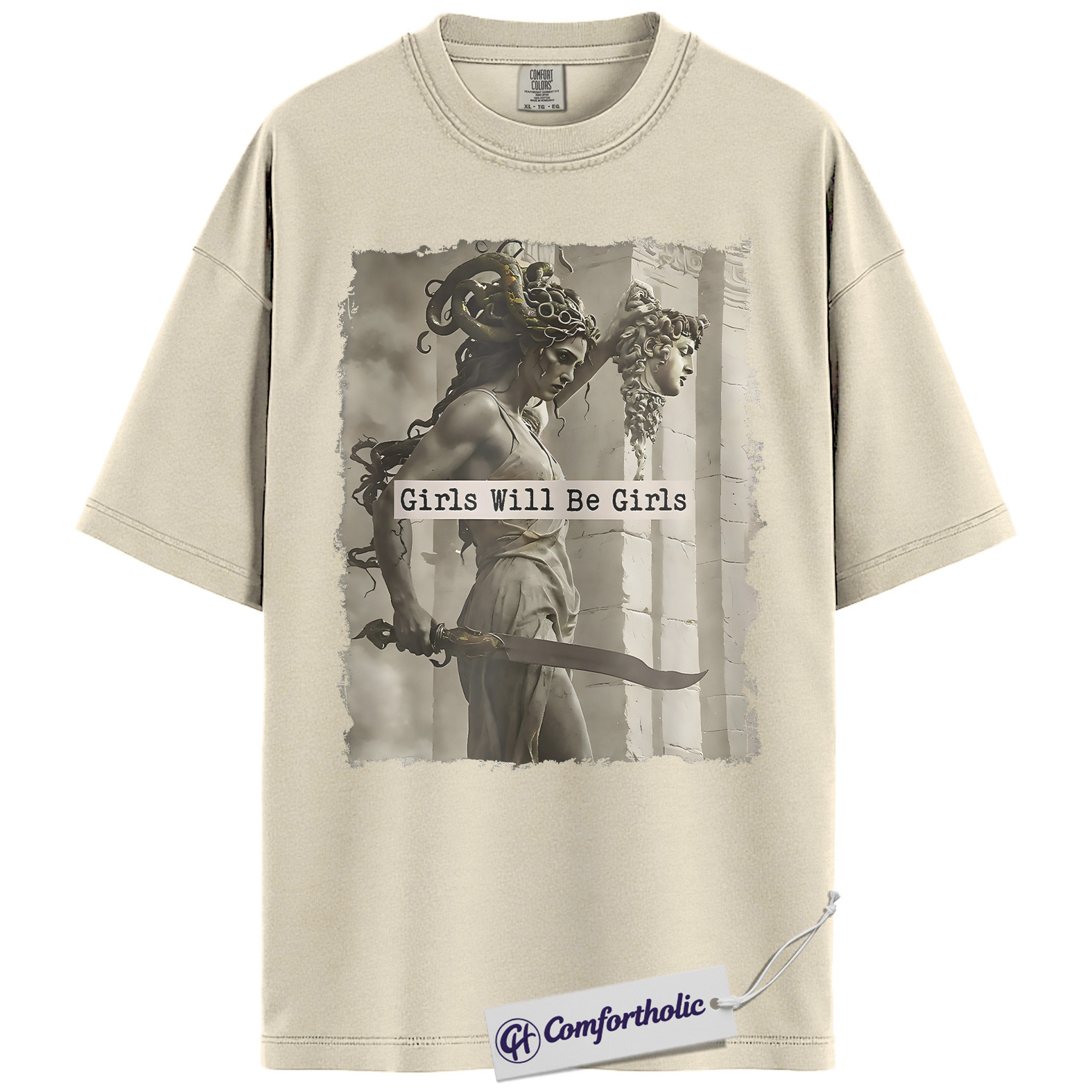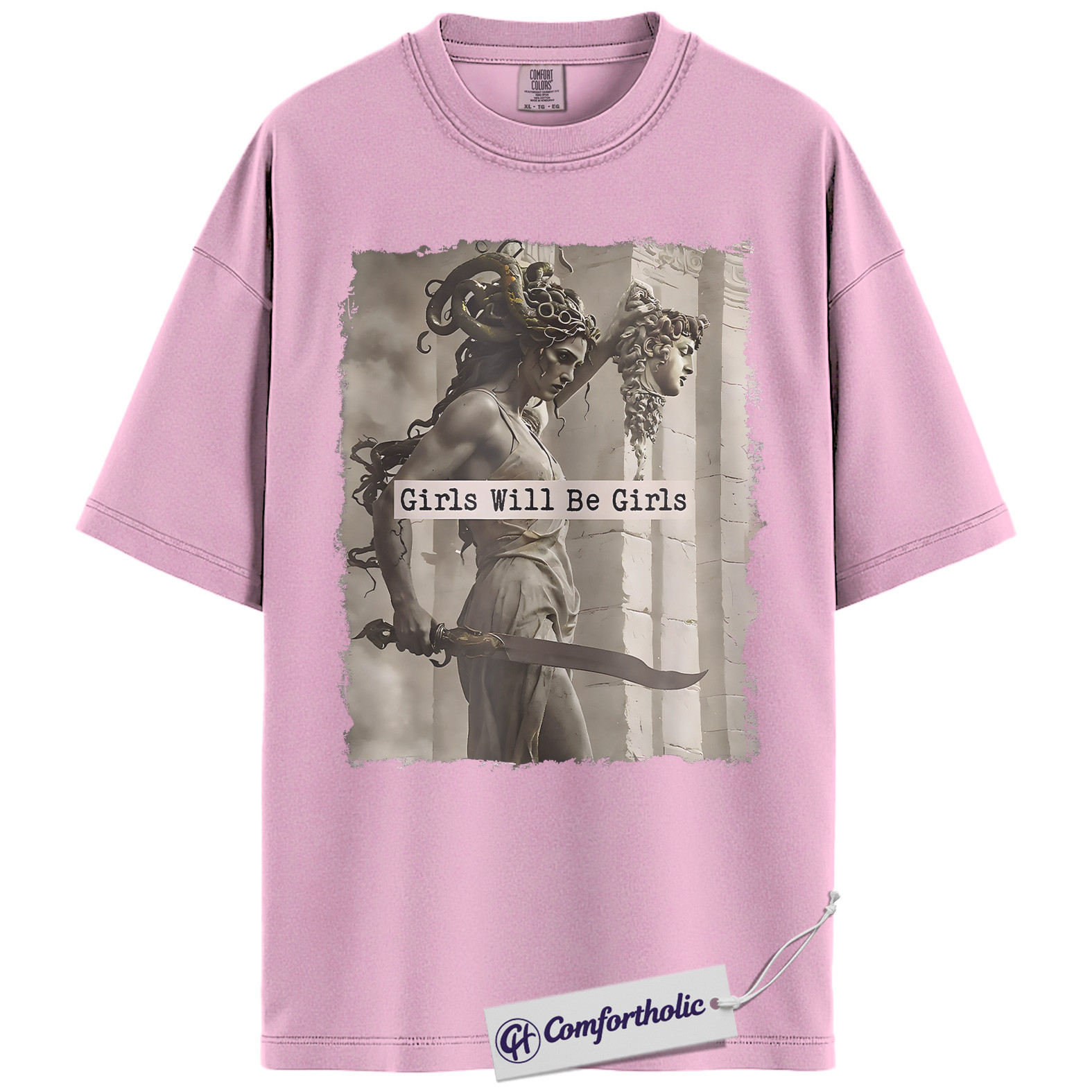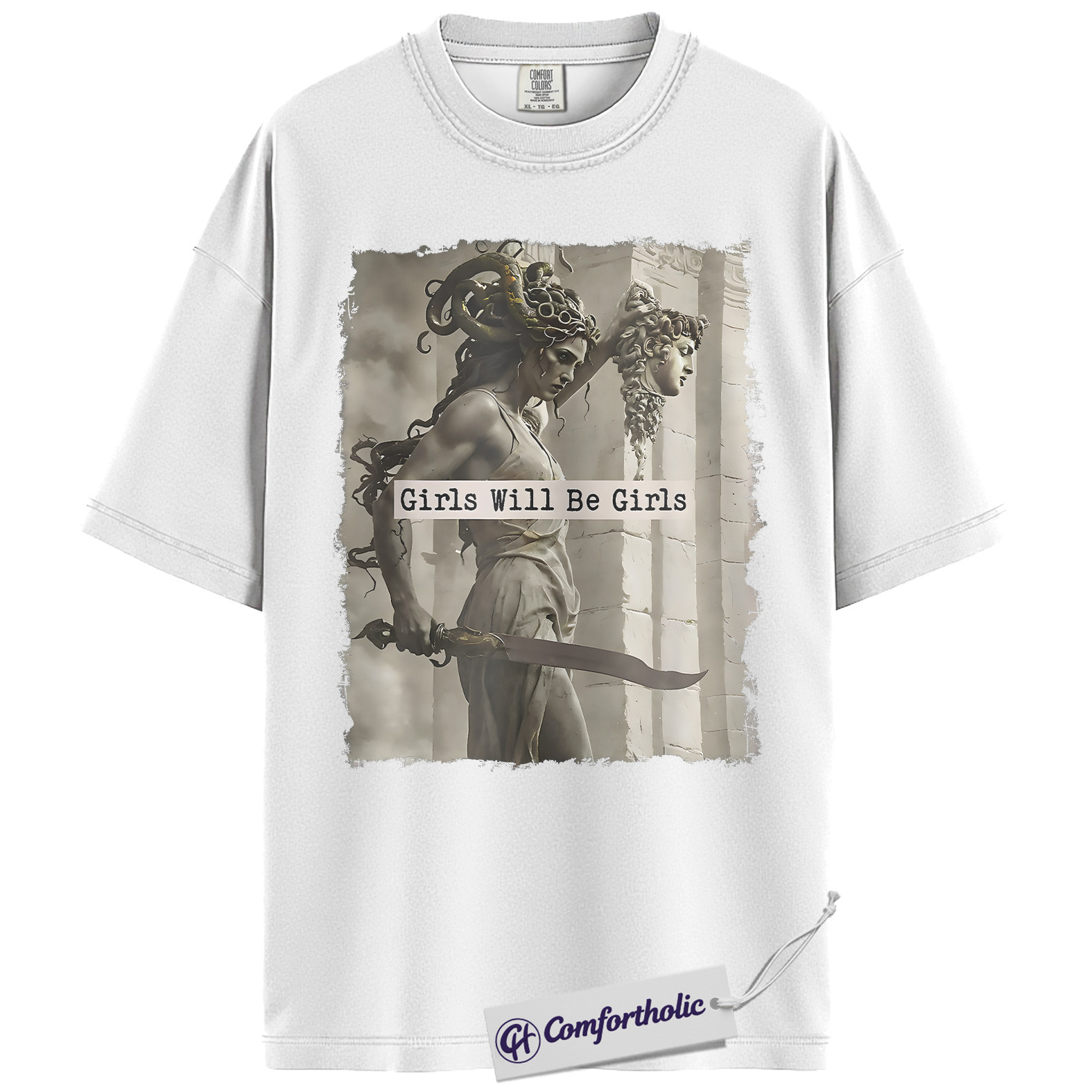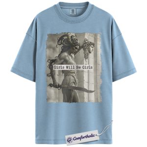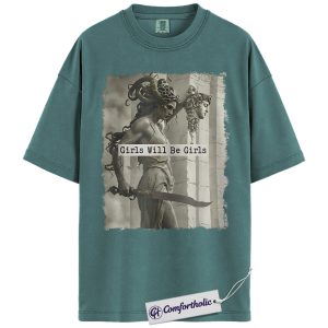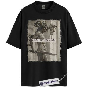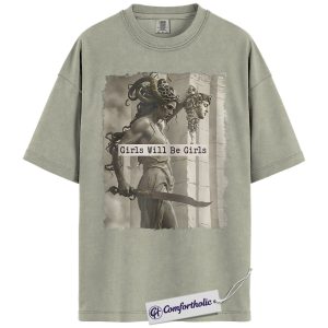 Girls Will Be Girls Shirt, Medusa Greek Mythology T-Shirt, Feminist Empowerment Graphic Tee, Strong Woman Mythical Art Gift, Comfort Colors Shirt