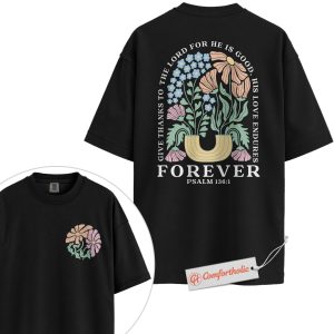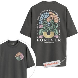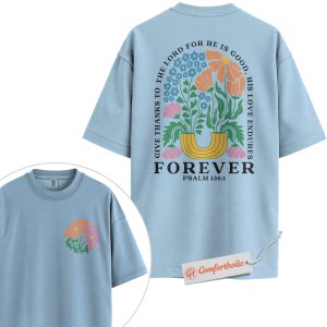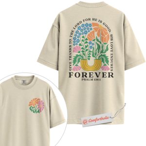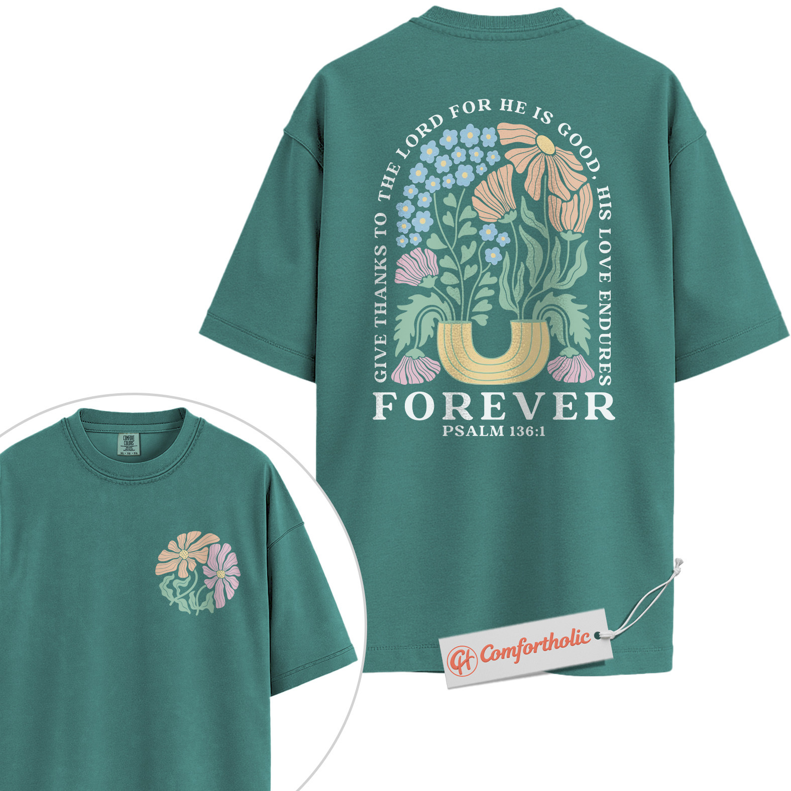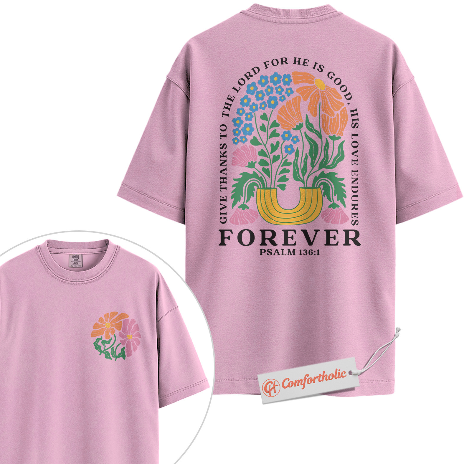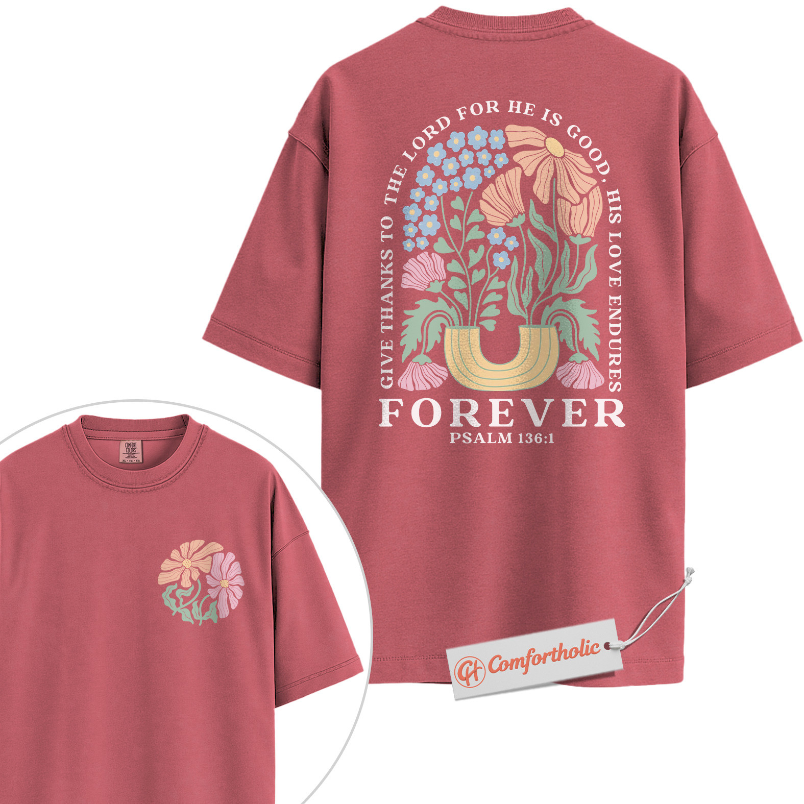Give Thanks to the Lord Shirt, Psalm 136:1 Bible Verse Shirt, Christian Shirt, Floral Faith Shirt, Religious Quote Shirt, Comfort Colors T-Shirt 2-Sided