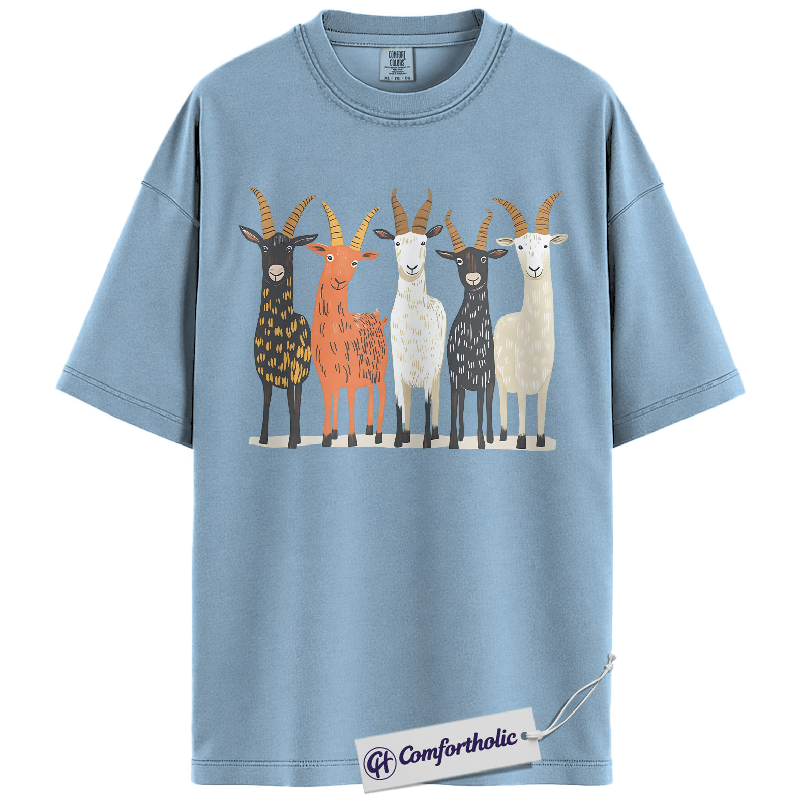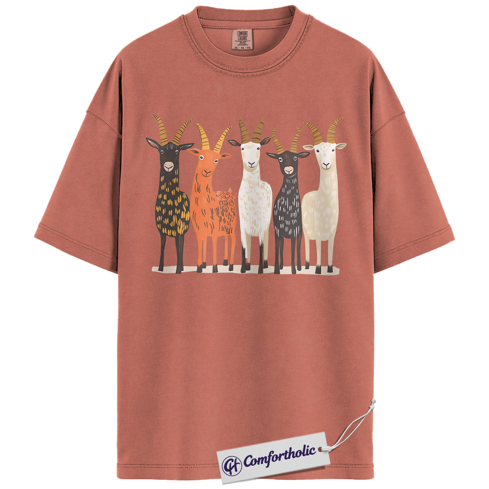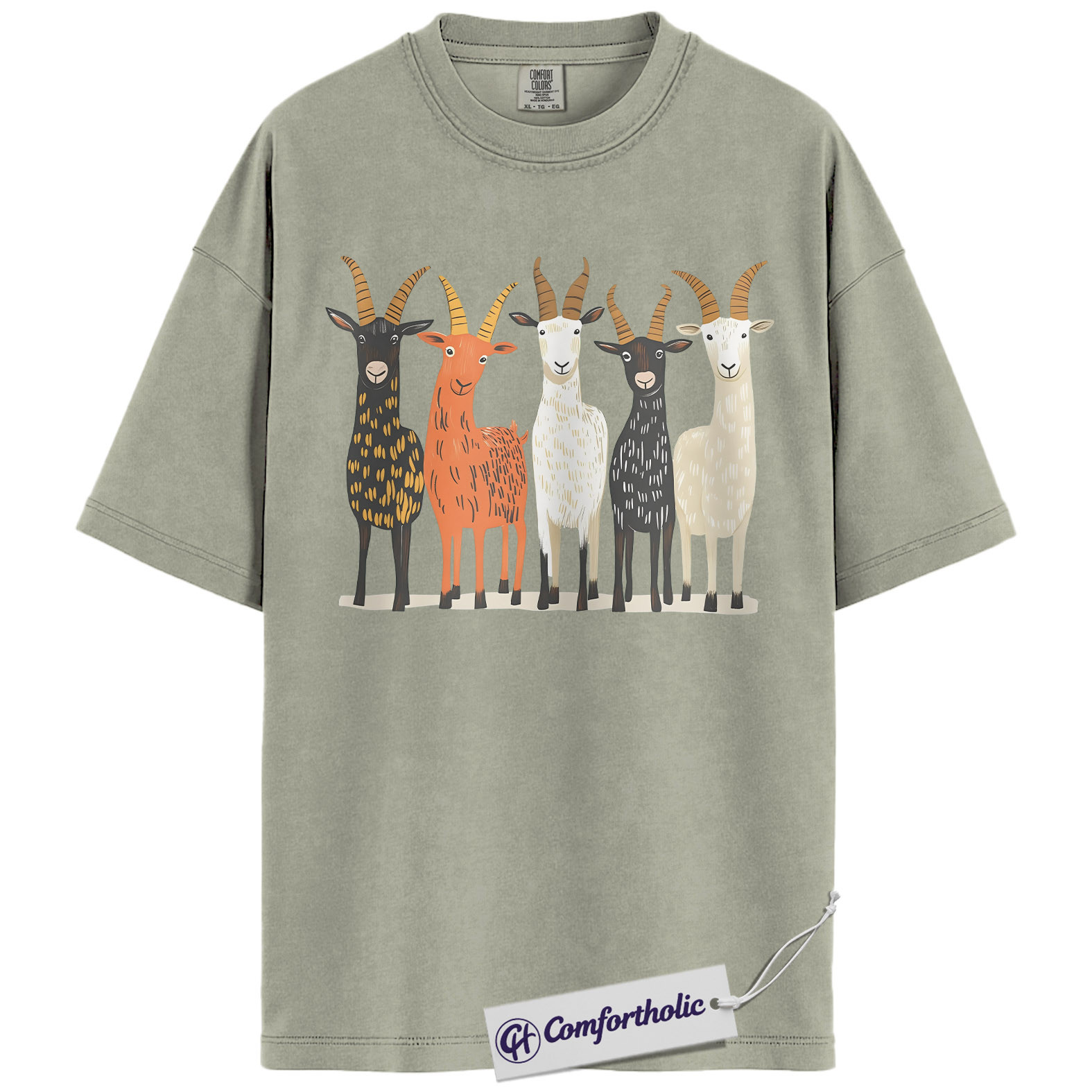 Goat Lover Shirt, Cute Cartoon Goats Graphic Tee, Farm Animal T-Shirt for Goat Moms, Funny Homestead Gift, Comfort Colors Shirt
