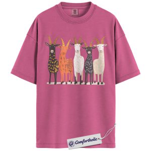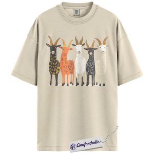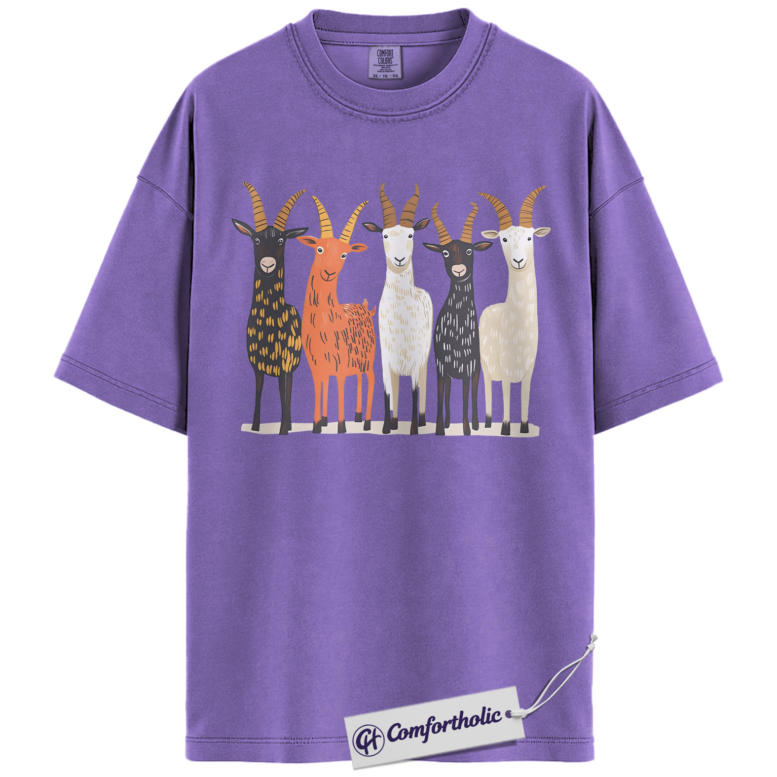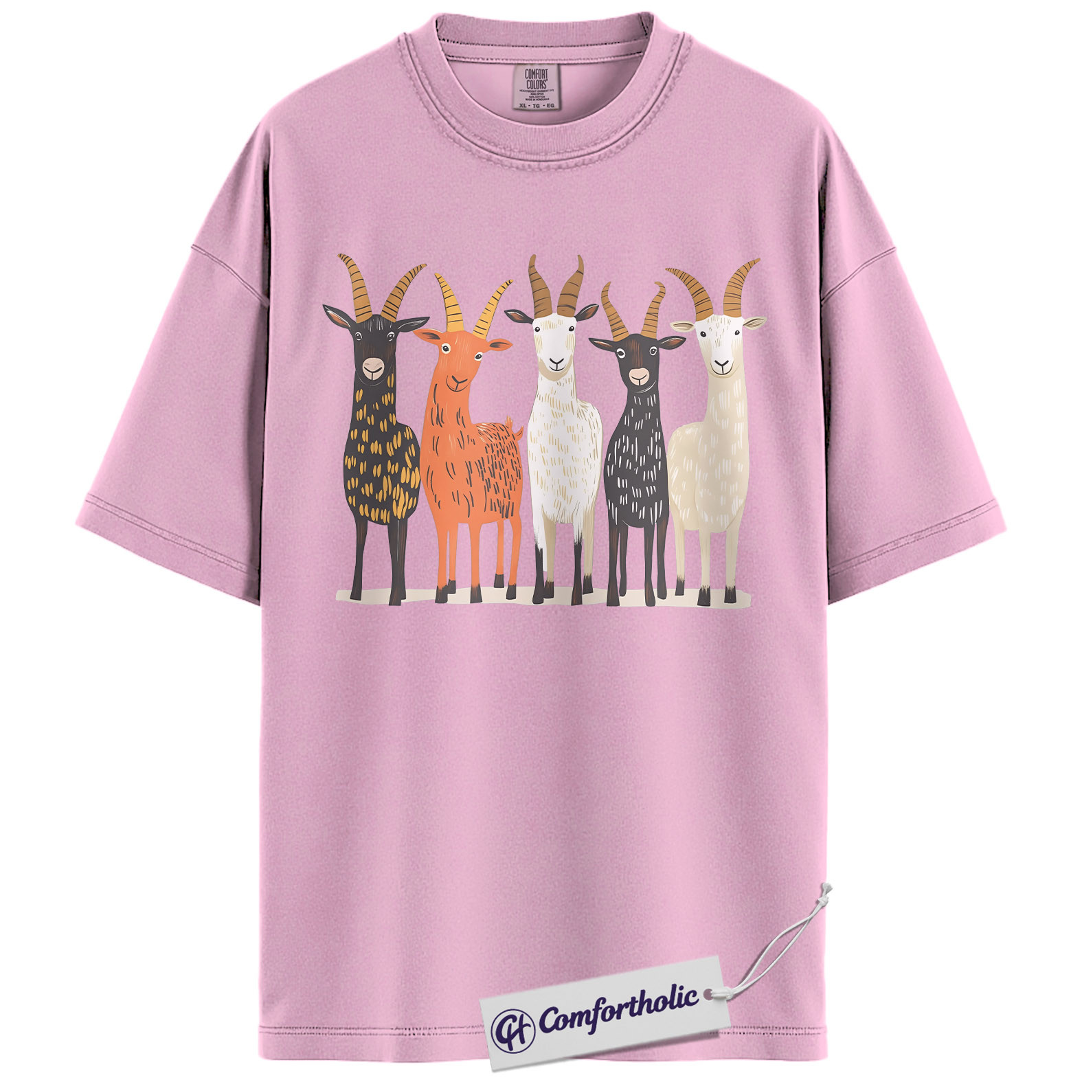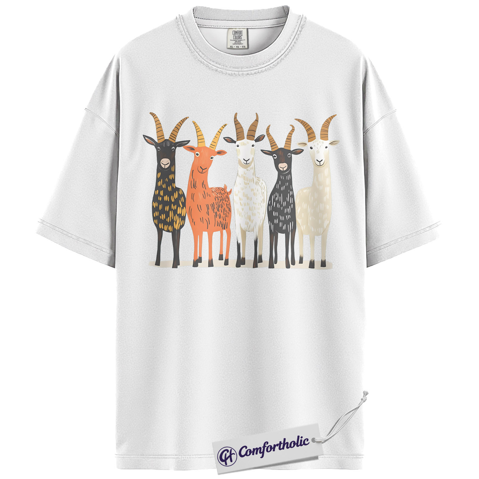 Goat Lover Shirt, Cute Cartoon Goats Graphic Tee, Farm Animal T-Shirt for Goat Moms, Funny Homestead Gift, Comfort Colors Shirt