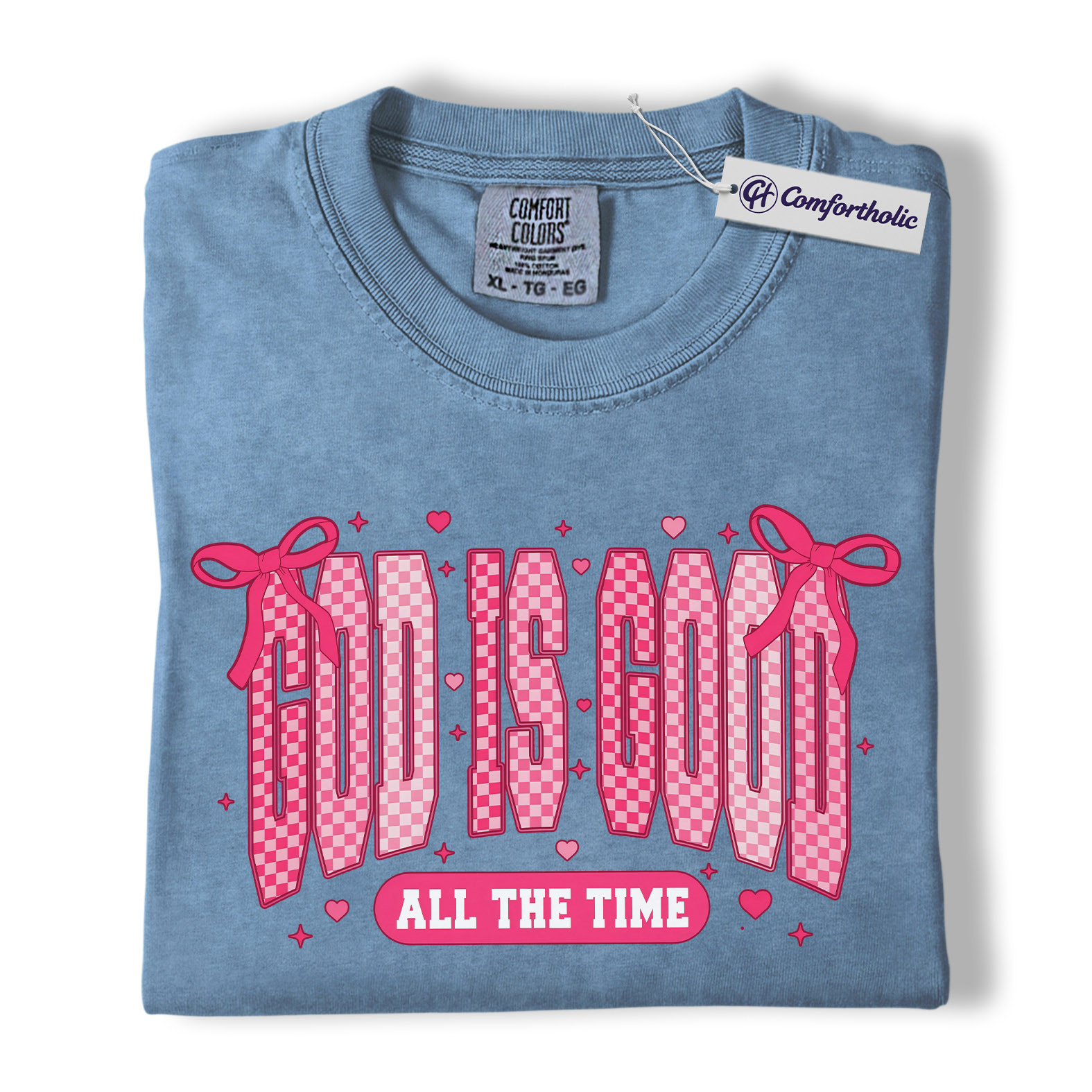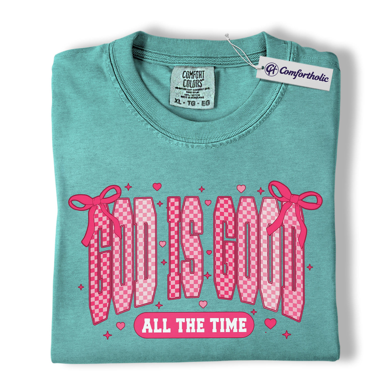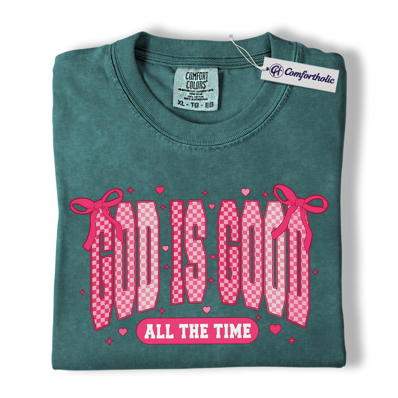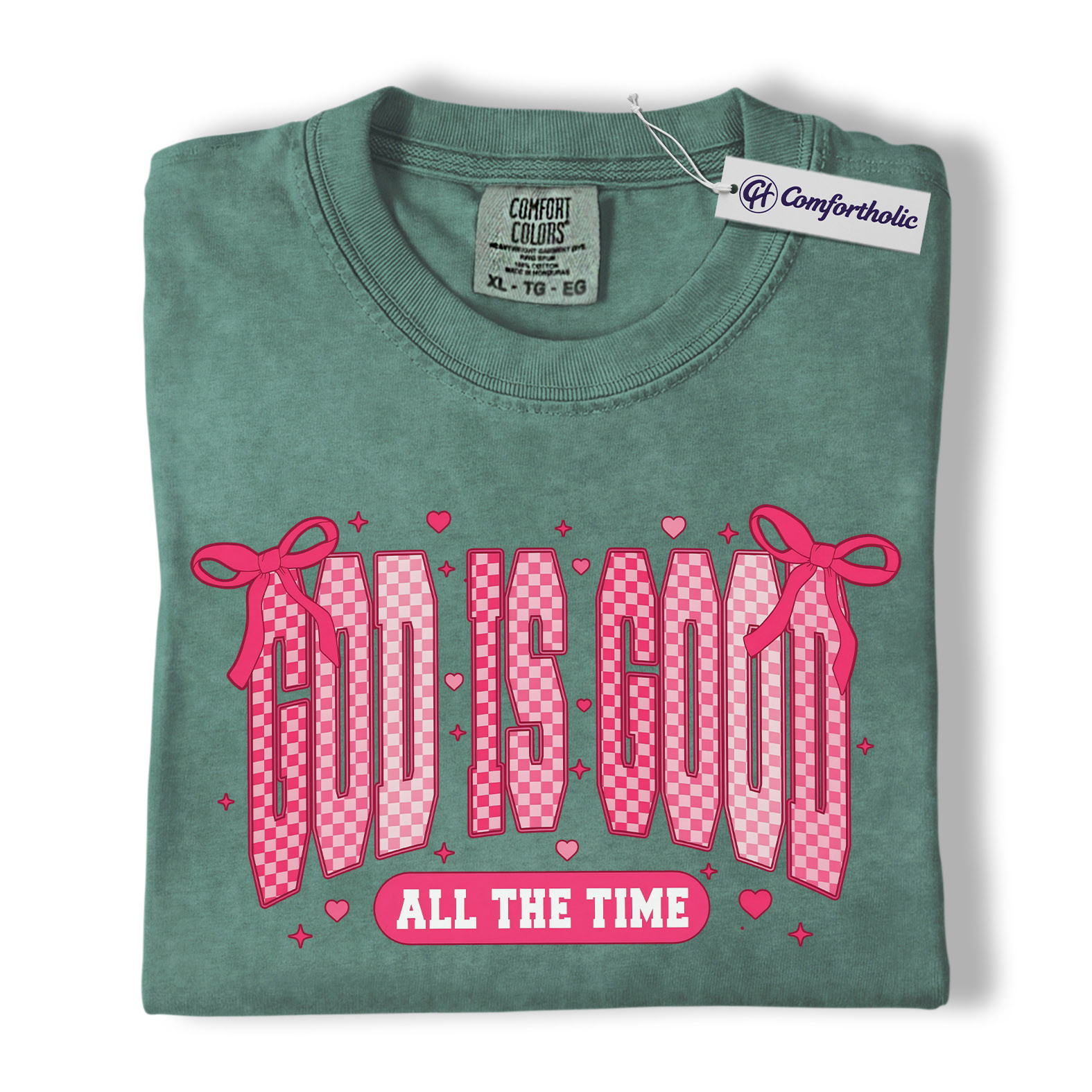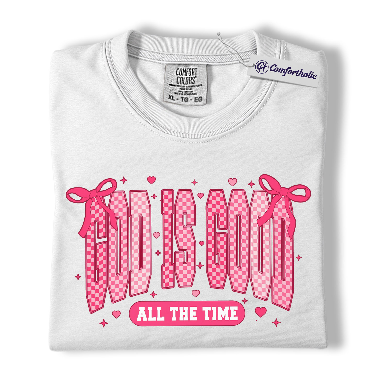 God Is Good Shirt, Faith-Based Christian Graphic Tee, Pink Bow Aesthetic Bible Verse T-Shirt, Inspirational Valentine Gift for Christian Women, Comfort Colors Shirt
