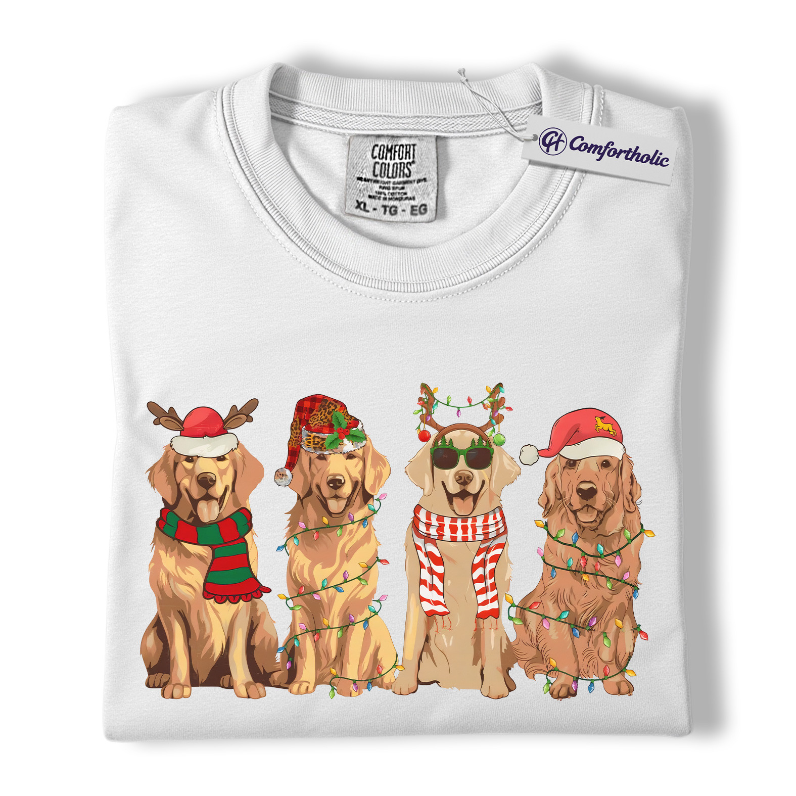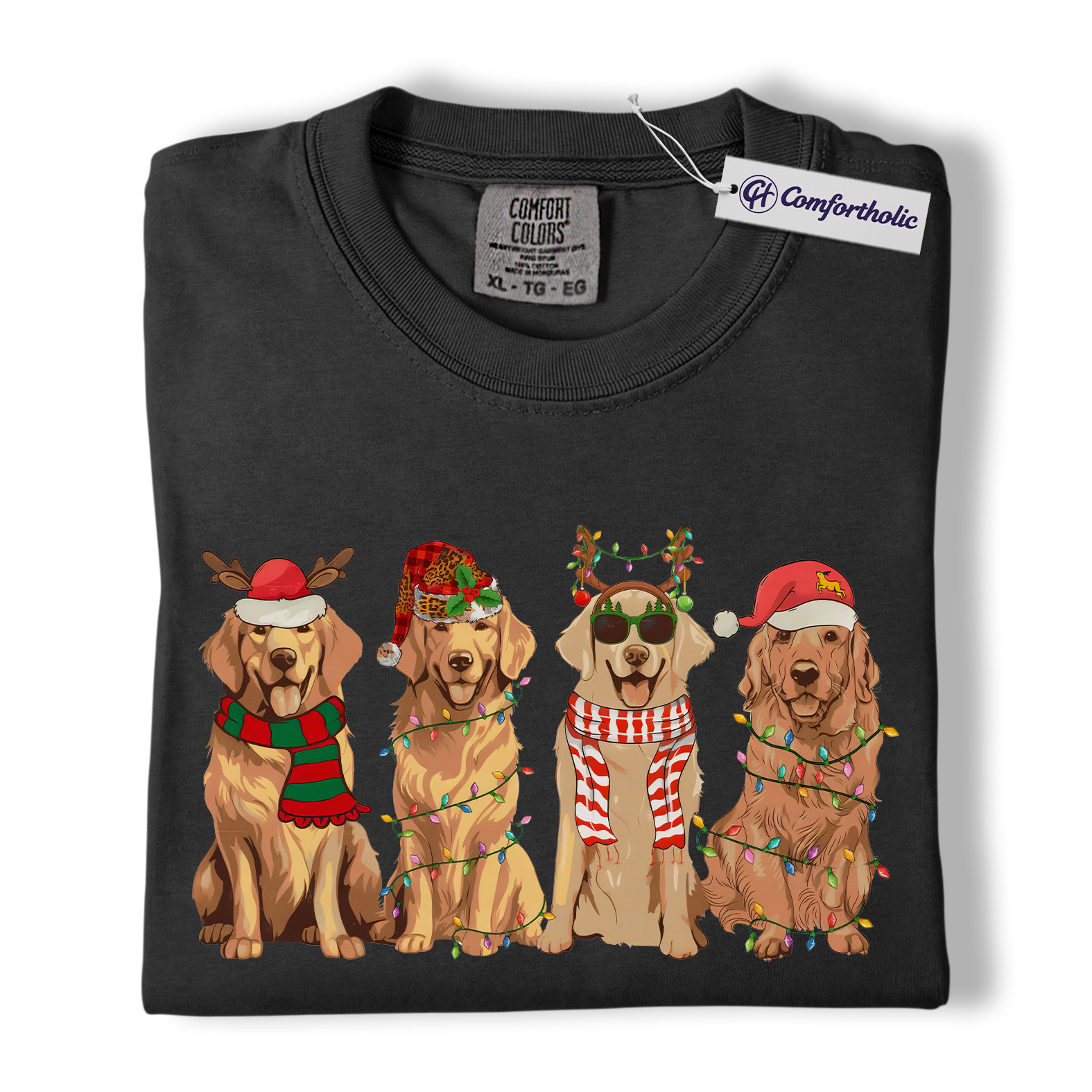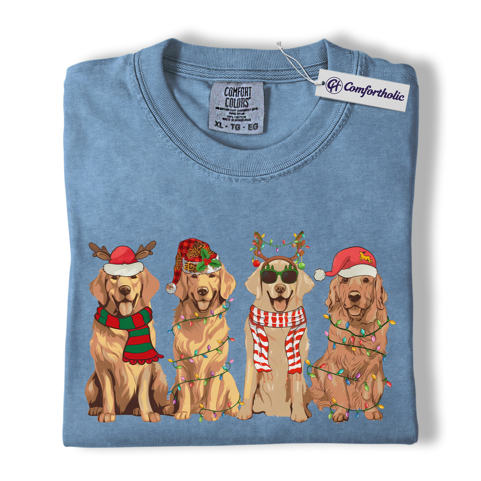 Golden Retriever Christmas Shirt, Dog Lover Holiday T-Shirt, Cute Festive Lights Graphic Tee for Dog Moms, Gift for Pet Owners, Christmas Comfort Colors Shirt