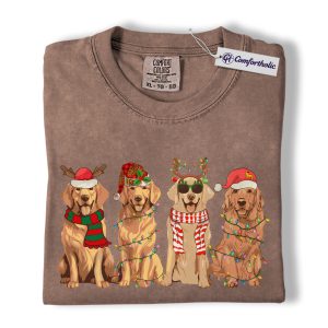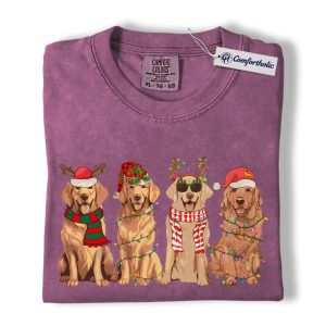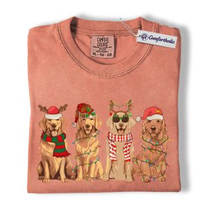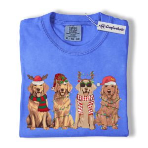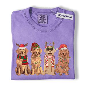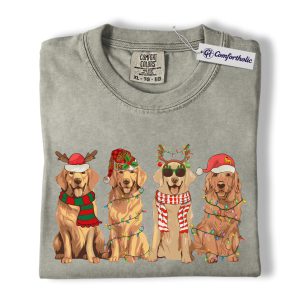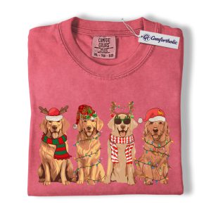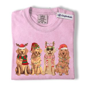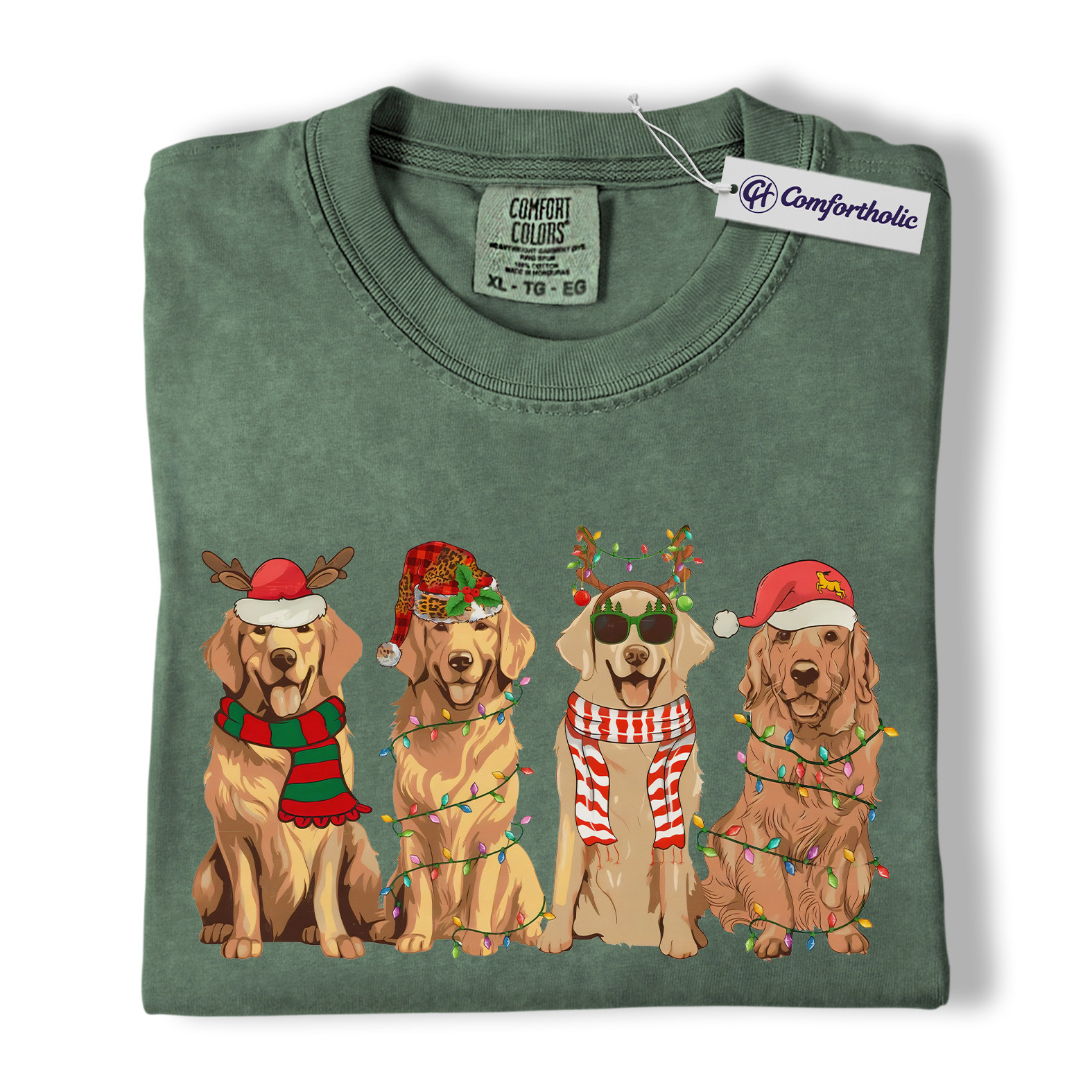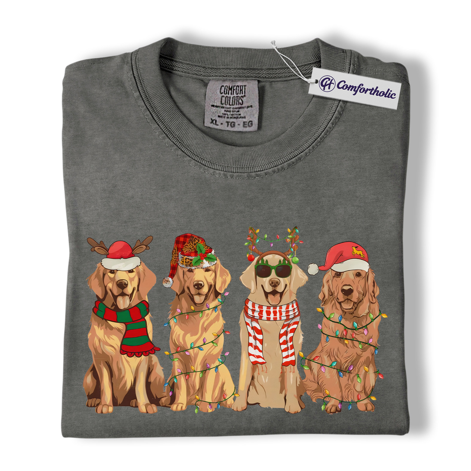 Golden Retriever Christmas Shirt, Dog Lover Holiday T-Shirt, Cute Festive Lights Graphic Tee for Dog Moms, Gift for Pet Owners, Christmas Comfort Colors Shirt