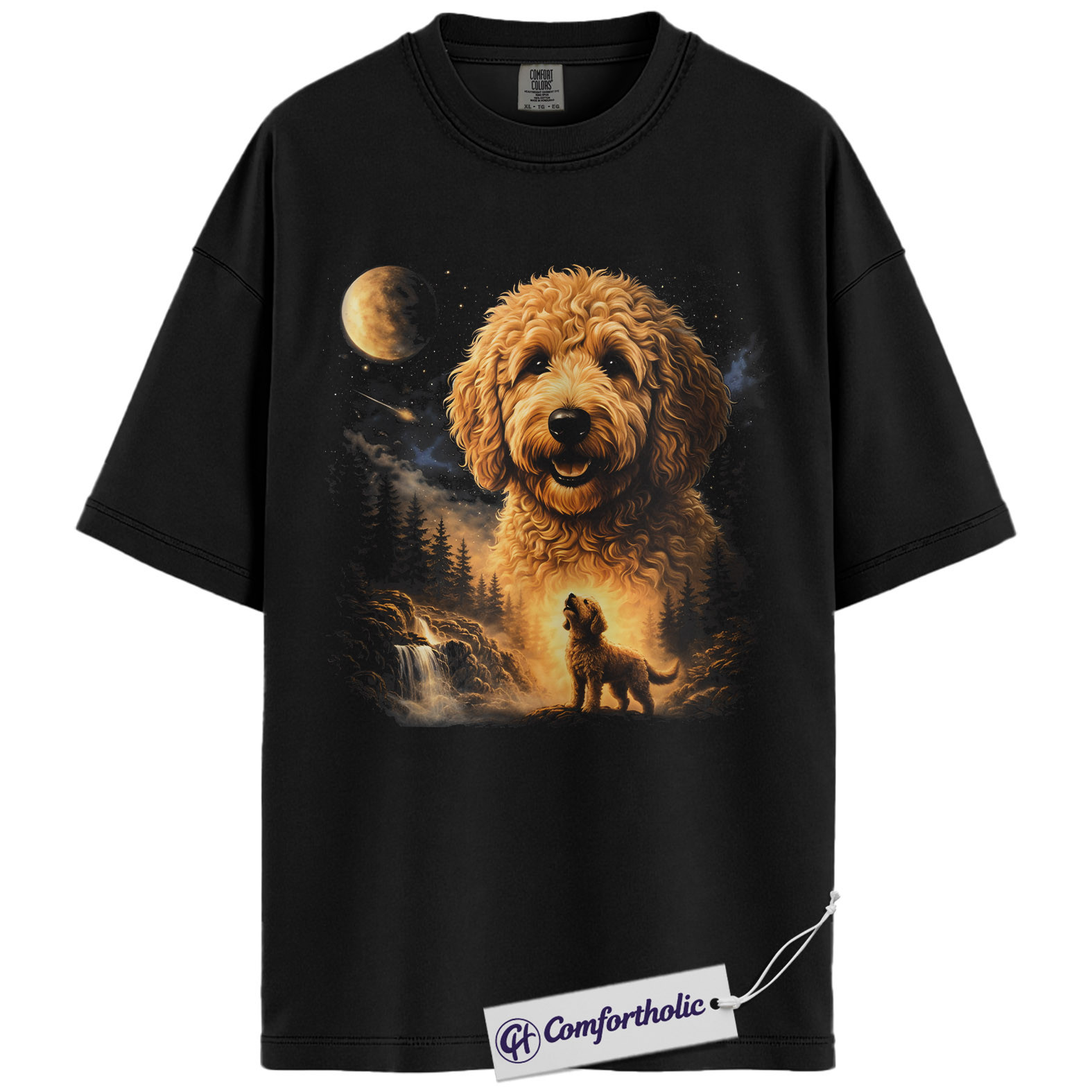 Goldendoodle Shirt, Moonlit Forest Doodle Dog Graphic Tee, Goldendoodle T-Shirt for Dog Moms, Gift for Doodle Lovers, Comfort Colors Shirt