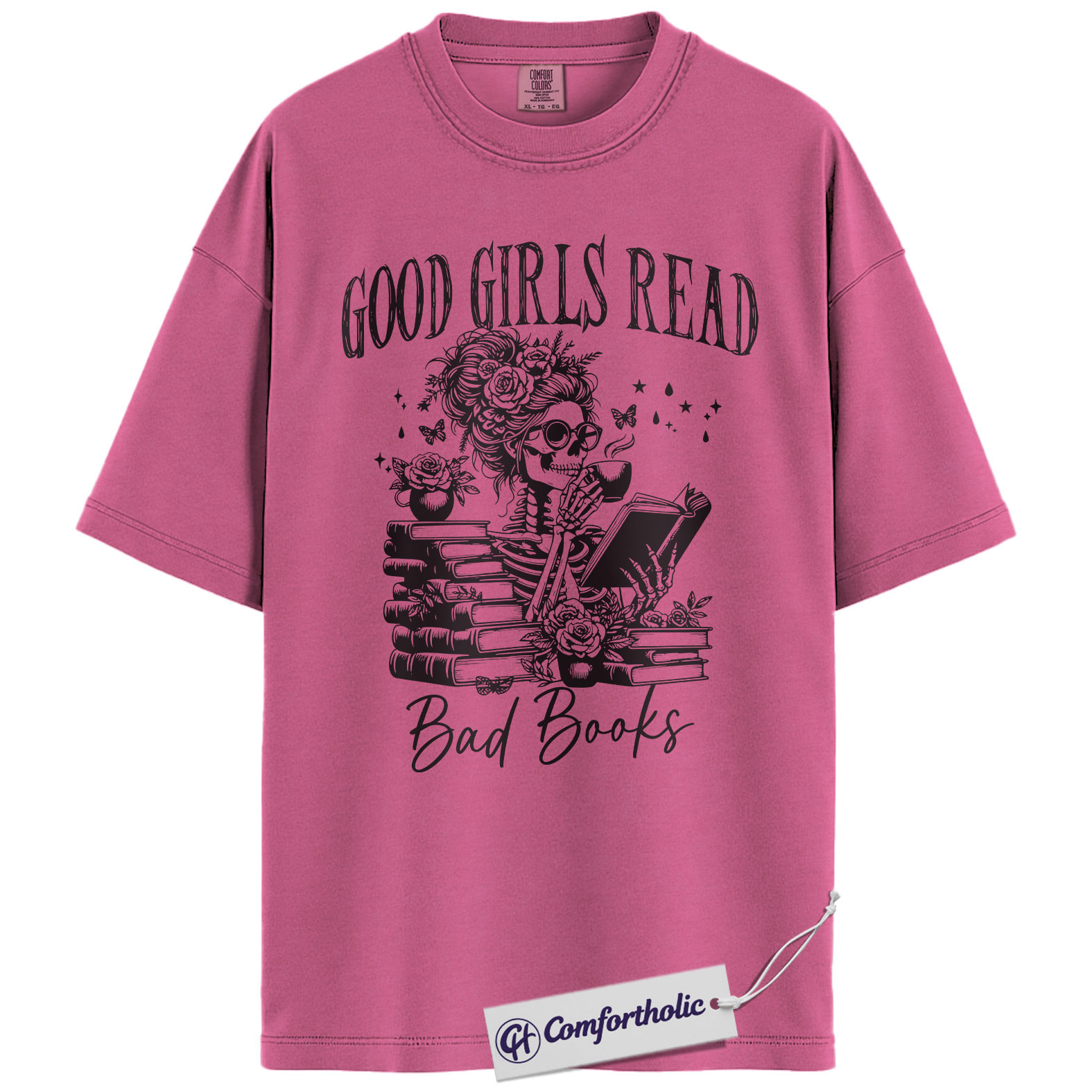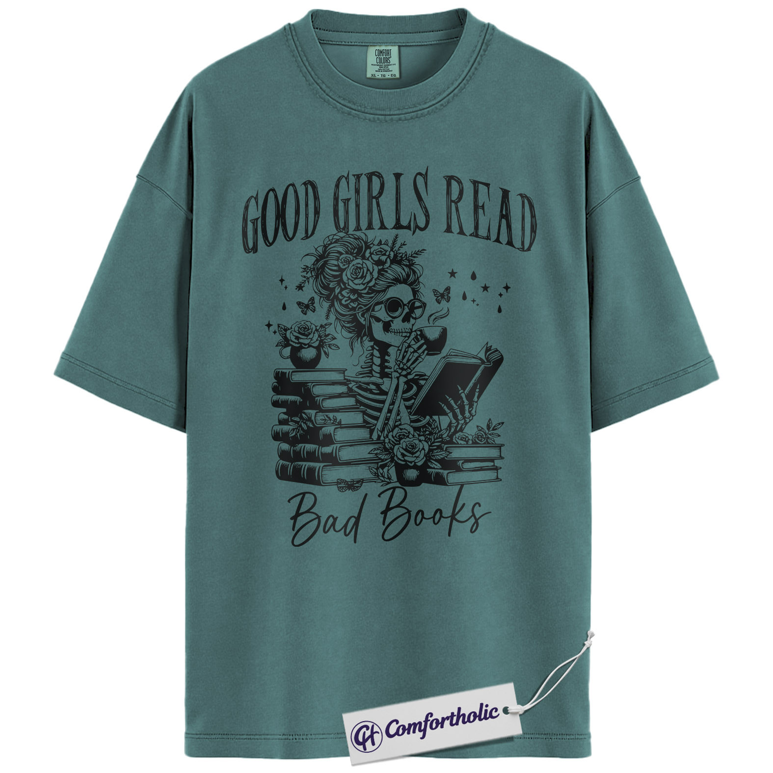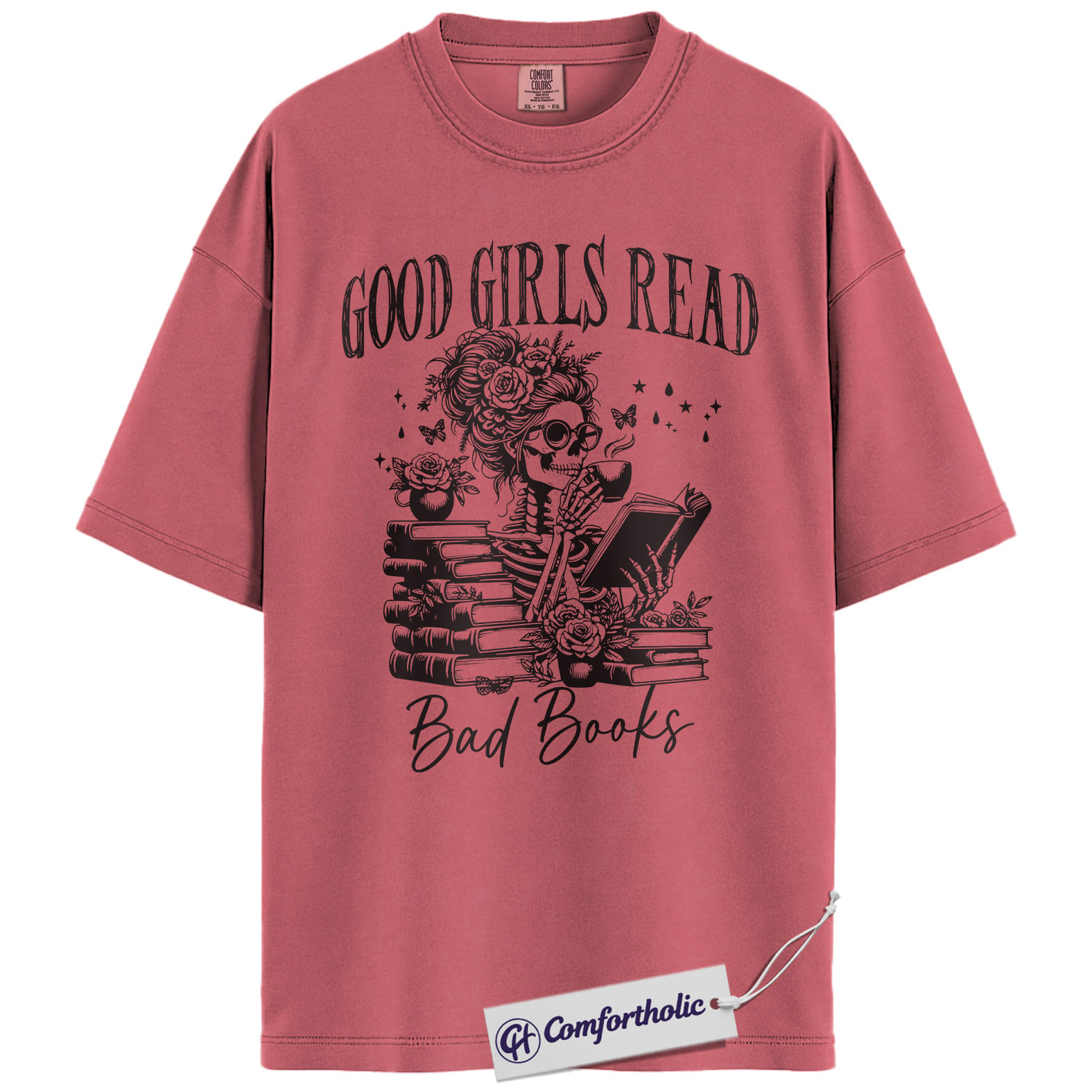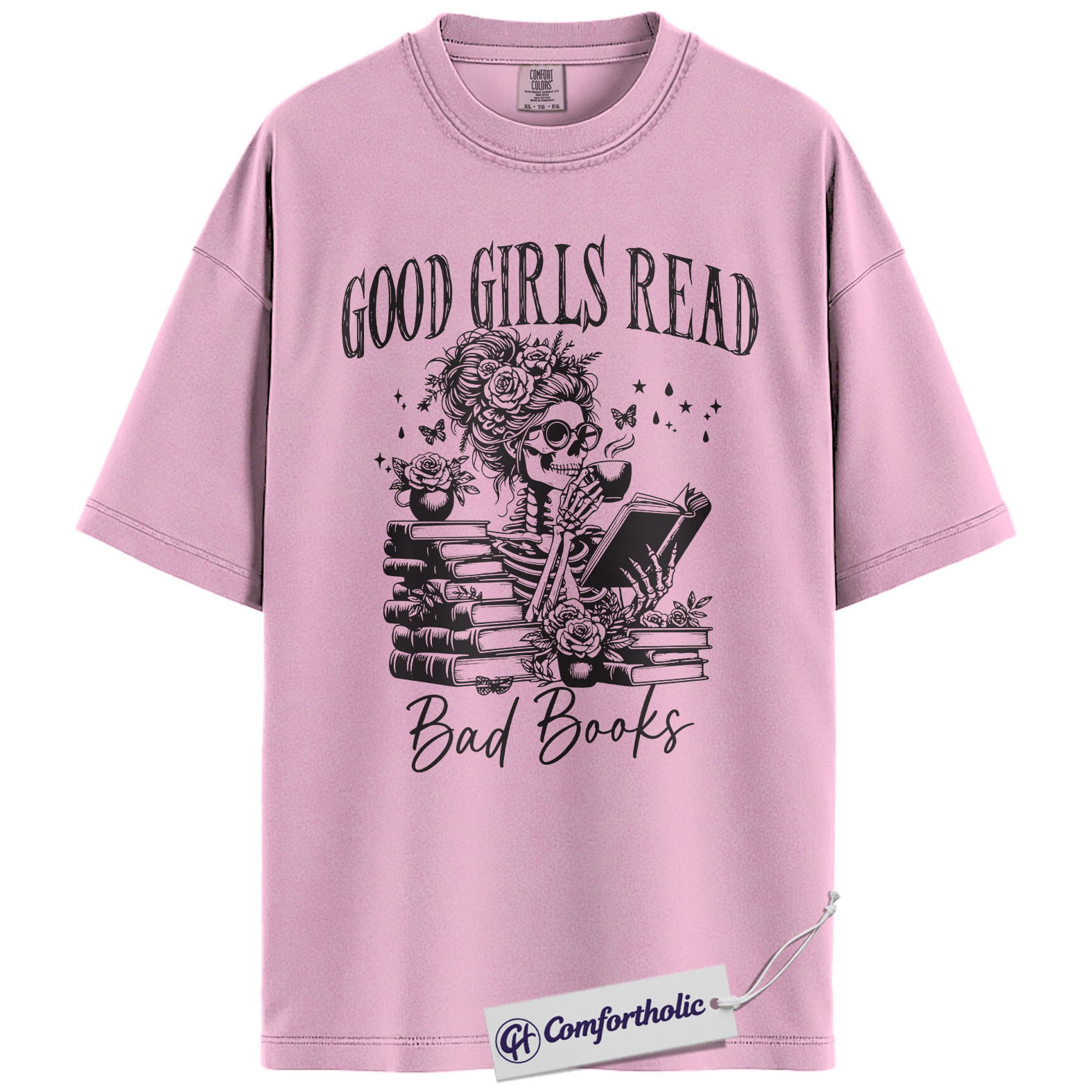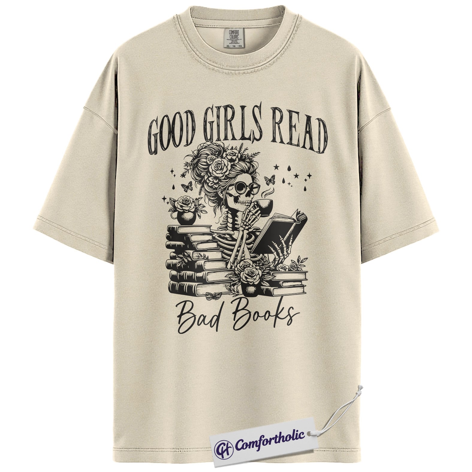 Good Girls Read Bad Books Shirt, Dark Academia Skeleton Graphic Tee, Booktok Reader T-Shirt, Funny Gift for Book Lovers, Comfort Colors Shirt