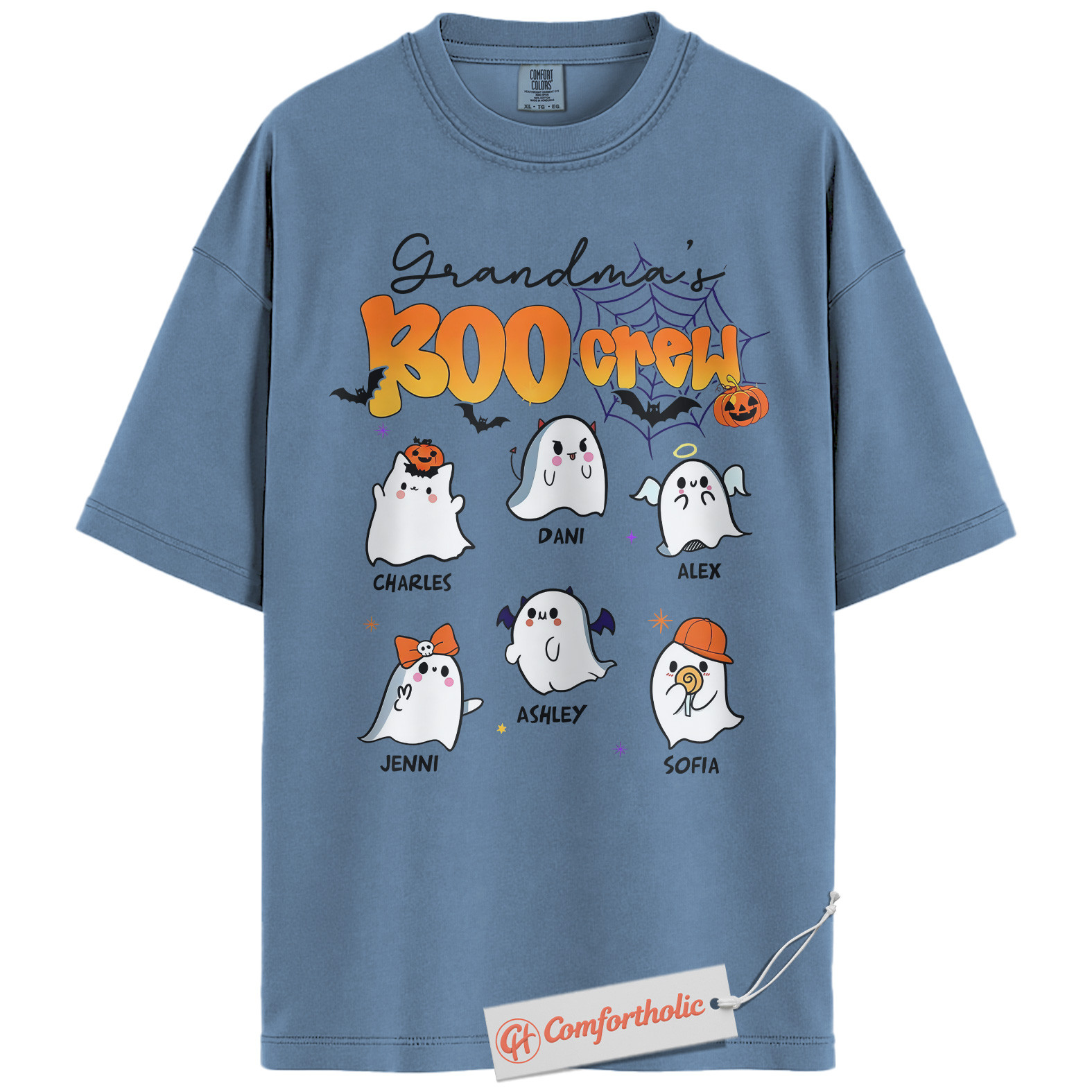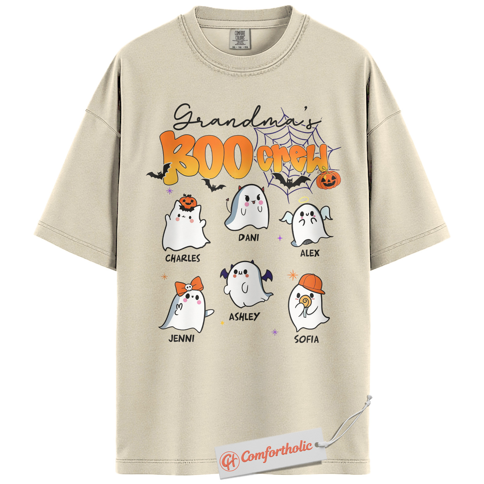 Grandma’s Boo Crew Shirt, Custom Grandkids Name Halloween T-Shirt, Personalized Family Ghost Graphic Tee, Spooky Fall Comfort Colors Shirt