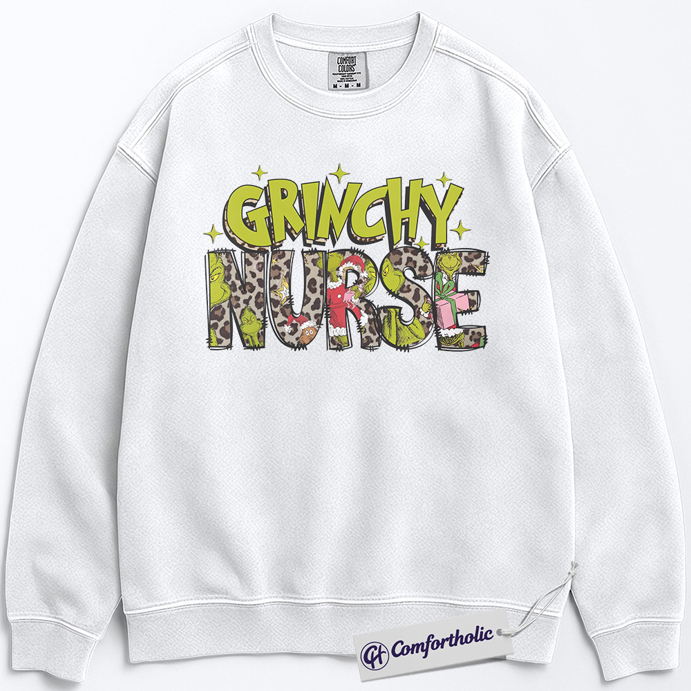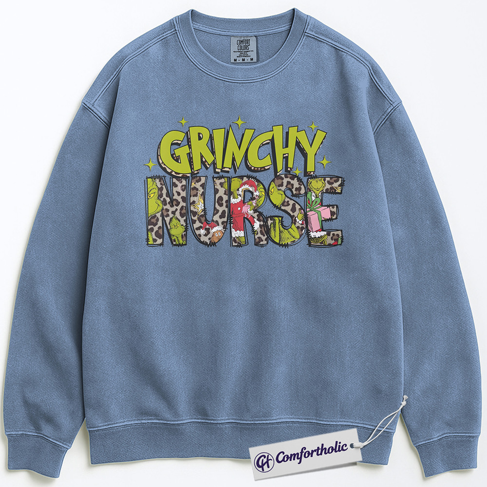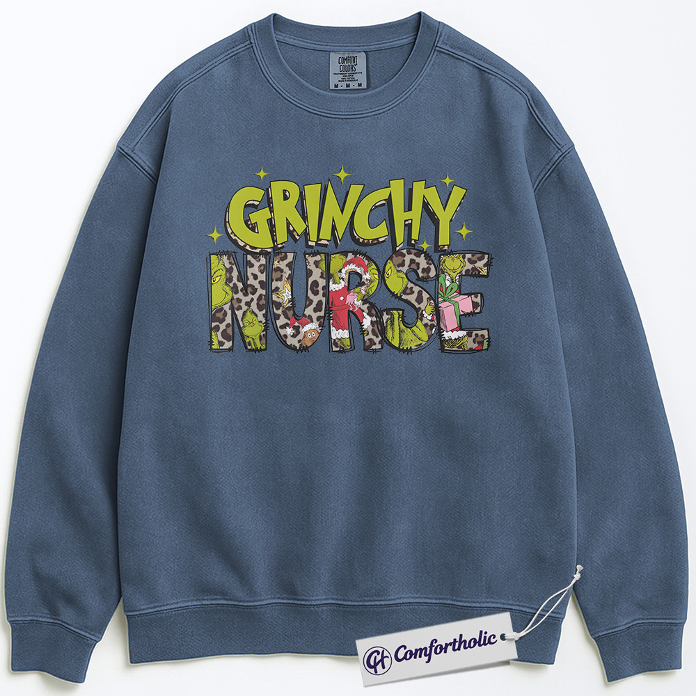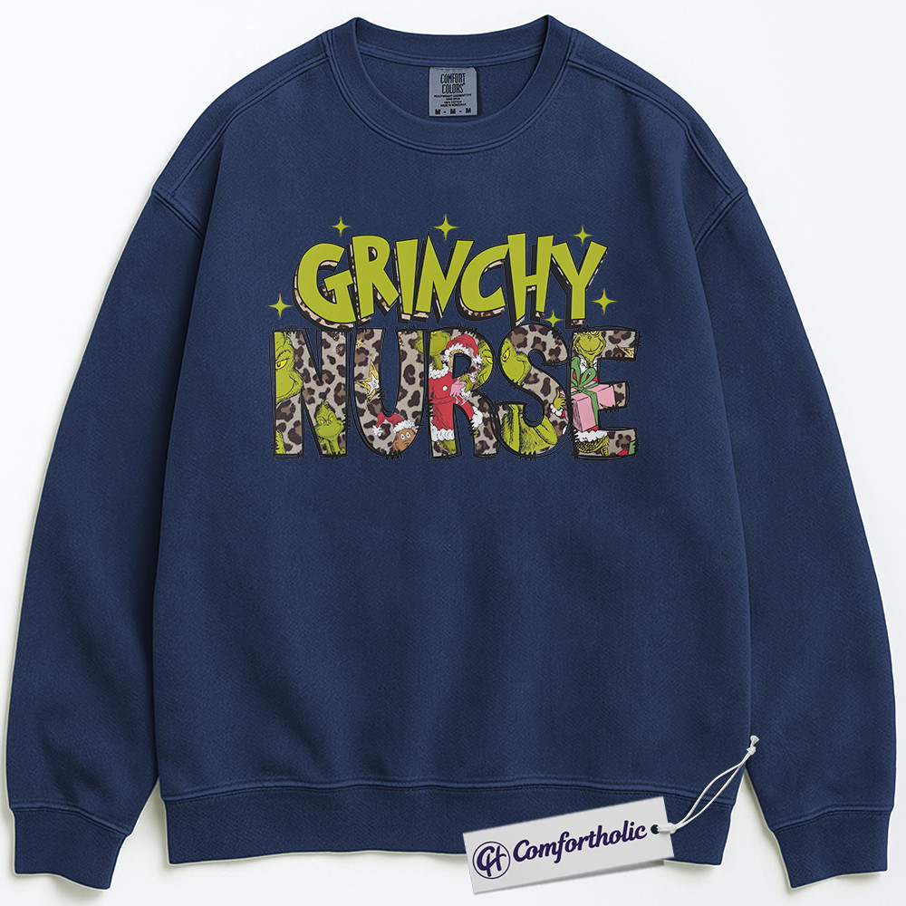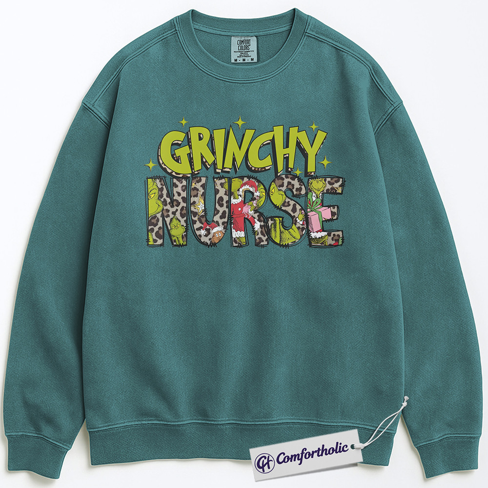 Grinchy Nurse Sweatshirt, Funny Christmas Nurse Pullover, Grinch Themed Medical Worker Crewneck, Holiday Gift for Nurses, Christmas Comfort Colors Sweatshirt