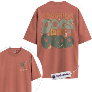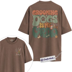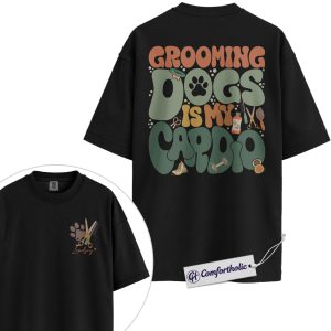 Grooming Dogs Is My Cardio Shirt, Funny Dog Groomer Graphic T-Shirt, Personalized Pet Grooming Tee, Custom Name Gift for Professional Dog Groomers, Comfort Colors Shirt 2-Sided